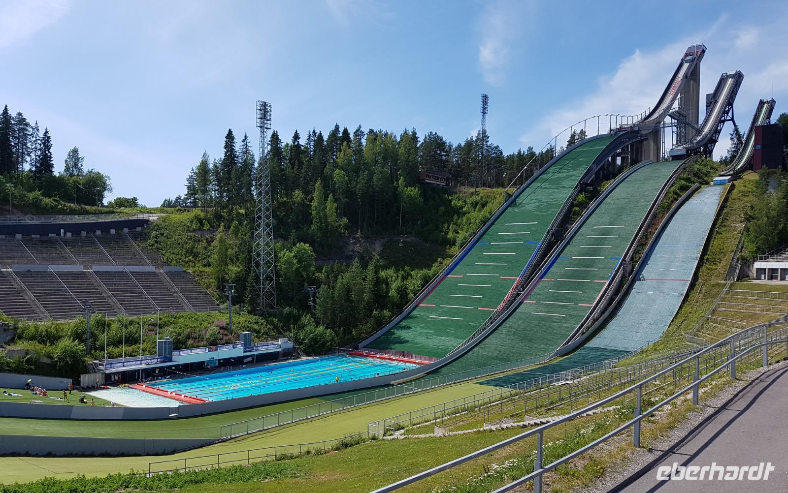 Wir pausieren in Lahti, wo wir uns das riesige Sportareal mit der berühmten Schanzenanlage anschauen. Witzigerweise wird der Auslauf der großen Salpausselänschanze von den sportverrückten Finnen im Sommer als Freibad genutzt.