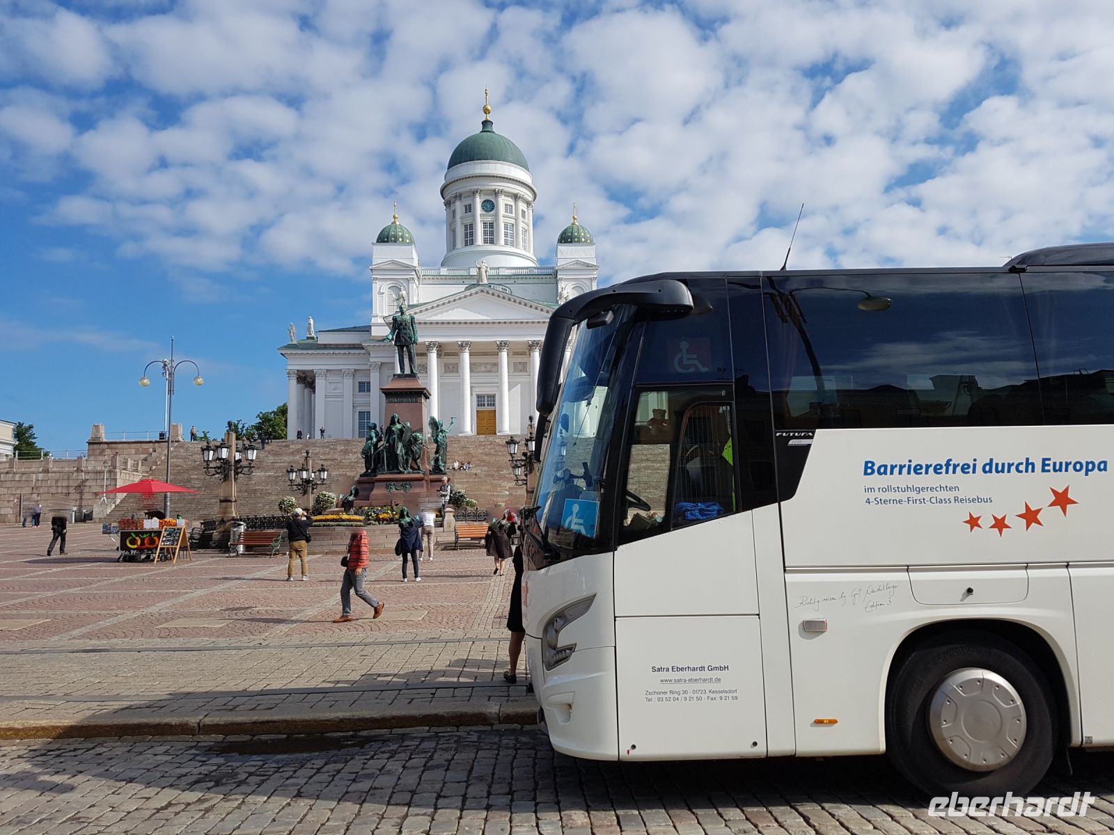 Am Morgen beginnt unsre langersehnte Traumreise nach Finnland mit den ersten Zustiegen in Kesselsdorf. Über den Dresdner Flughafen die Fahrt dann weiter Richtung polnische Grenze; die Reisegruppe des behindertengerechten Busses ist mit 14 Gästen komplett. Vorbei an Görlitz, Breslau und Lodz erreichen wir am Nachmittag Warschau. Von hier aus sind es nochmals gut zwei Fahrstunden bis zu unserem heutigen Etappenziel Bialystok.