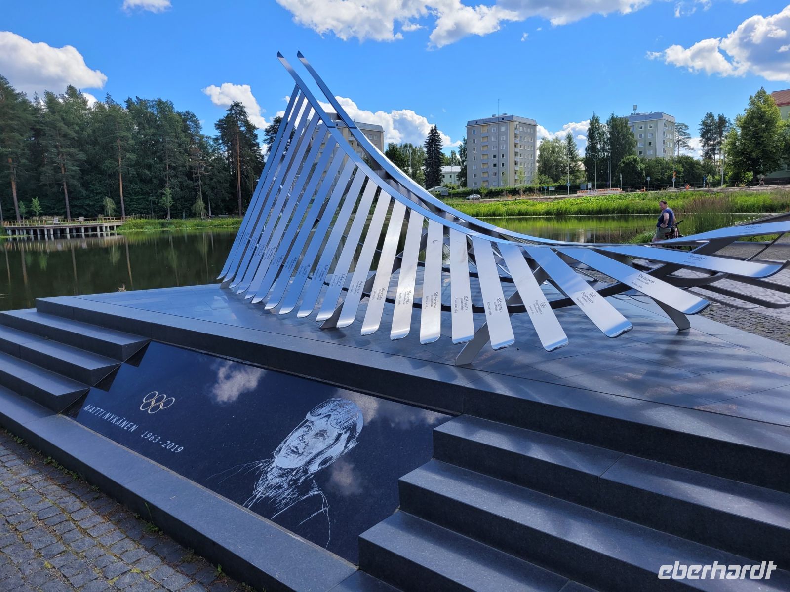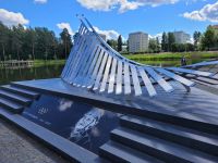 Nach einer erneuten Fahrt durch die finnische Seenlandschaft steht heute eine Stadtführung in Jyväskylä auf dem Programm. Matti Nykännen, dem wohl bekannteste Sohn der Großstadt ist am Stadion ein modernes Denkmal errichtet worden. Dies besuchen wir und erleben in Anschluss am Stadthafen die entspannte Wochenend-Atmosphäre der Finnen; alles ist mit dem eigenen Boot aus den umliegenden Mökkis hierher geströmt, um einem regionalen Popfestival beizuwohnen.