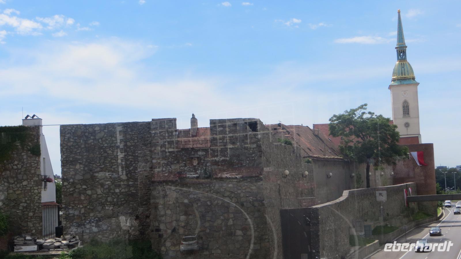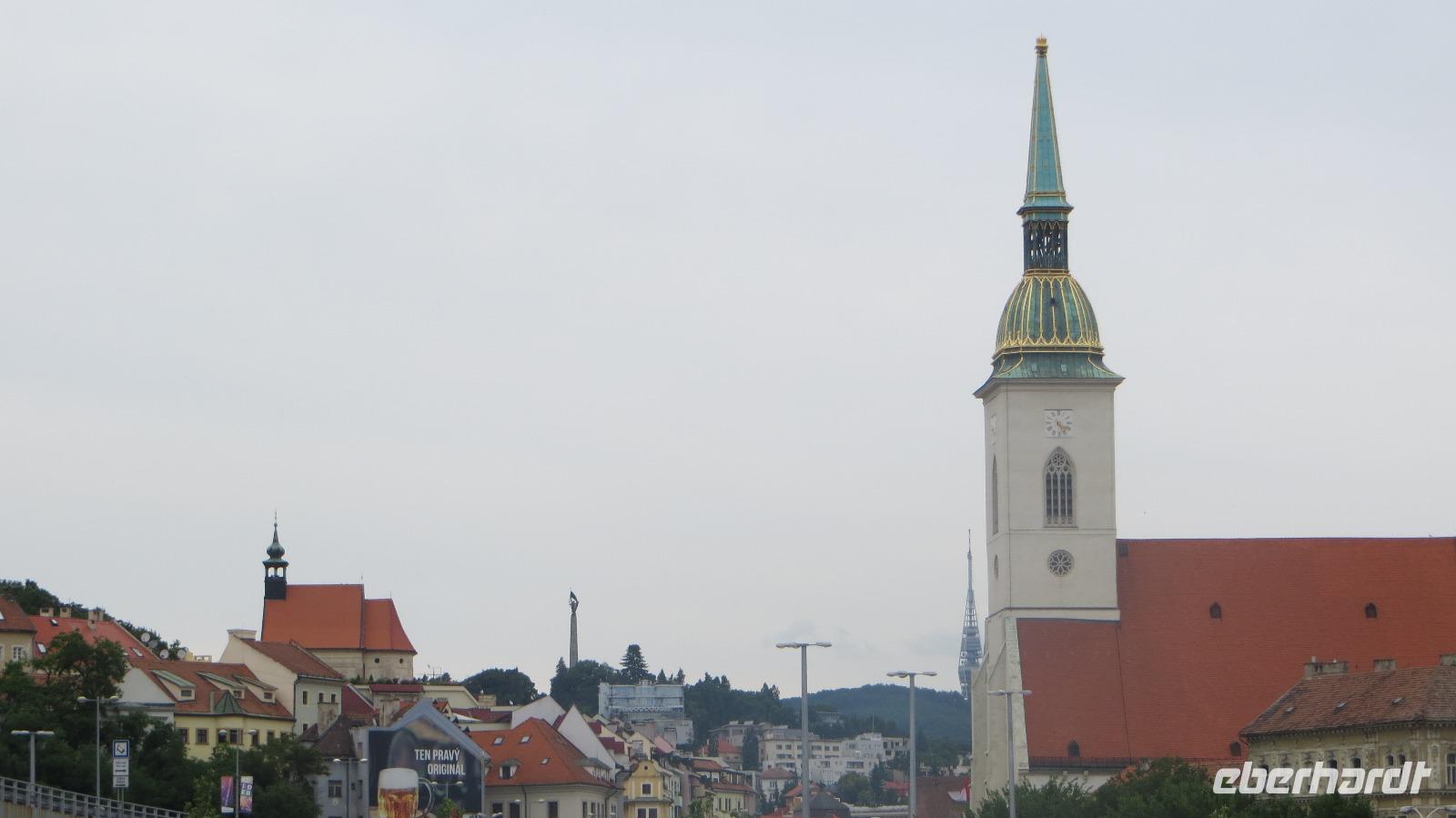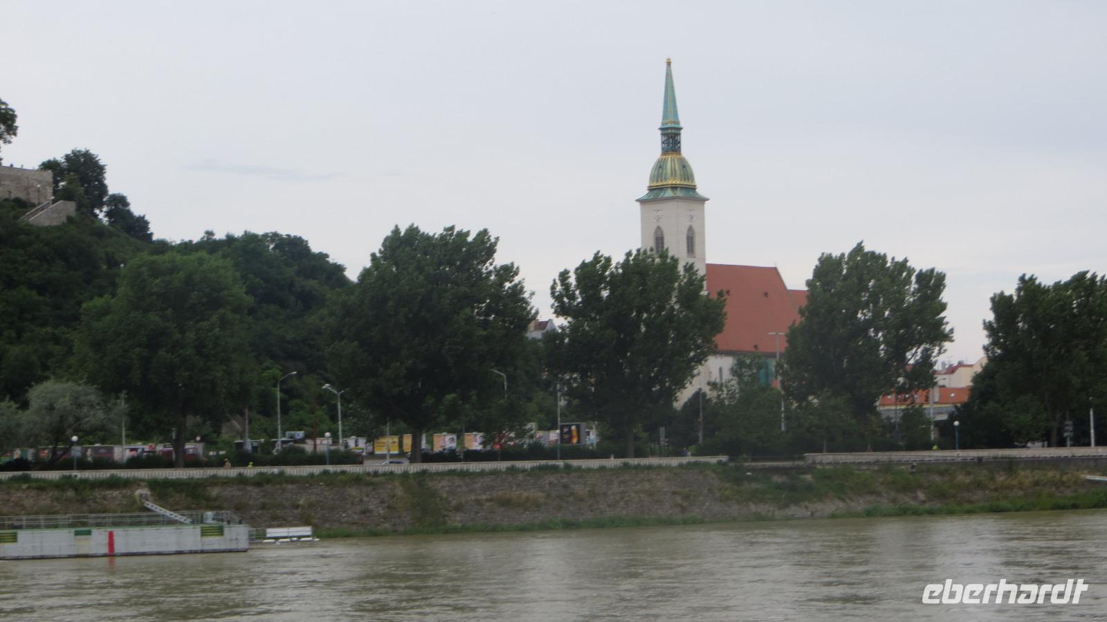 Am Morgen legte unser Schiff in Bratislava an. Wir freuten uns auf die Hauptstadt der Slowakei. Mit einer historischen Straßenbahn entdeckten wir den Ring um die Altstadt. Das Wahrzeichen der Stadt die Burg Preßburg konnten wir bestaunen. Auch das Parlament liegt auf einem Hügel oberhalb der Stadt. Zu den wichtigsten Sehenswürdigkeiten gehört die Kathedrale des Heiligen Martin. Sie war von 1563 - 1830 die Krönungskirche der Ungarischen Könige. Auch Maria Theresia wurde hier zur Ungarischen Königin gekrönt. Die Goldene Krone an der Kirchturmspitze erinnert an diese Zeit. Nun entdeckten wir die Stadt noch zu Fuß. Auf dem Weg zum Rathausplatz konnten wir viele schöne restaurierte Häuser und Prachtvolle Paläste bestaunen. Vorbei am Theater und der Philharmonie erreichten wir wieder das Schiff. Nach dem Mittagessen hatten wir noch Zeit individuell die Stadt zu erkunden. Doch viel weiter als zum Cafe Meyer führte der Weg meistens nicht. Am späten Nachmittag legt die AROSA in Richtung Österreich ab. Die wunderschöne Wachau wartete auf uns.