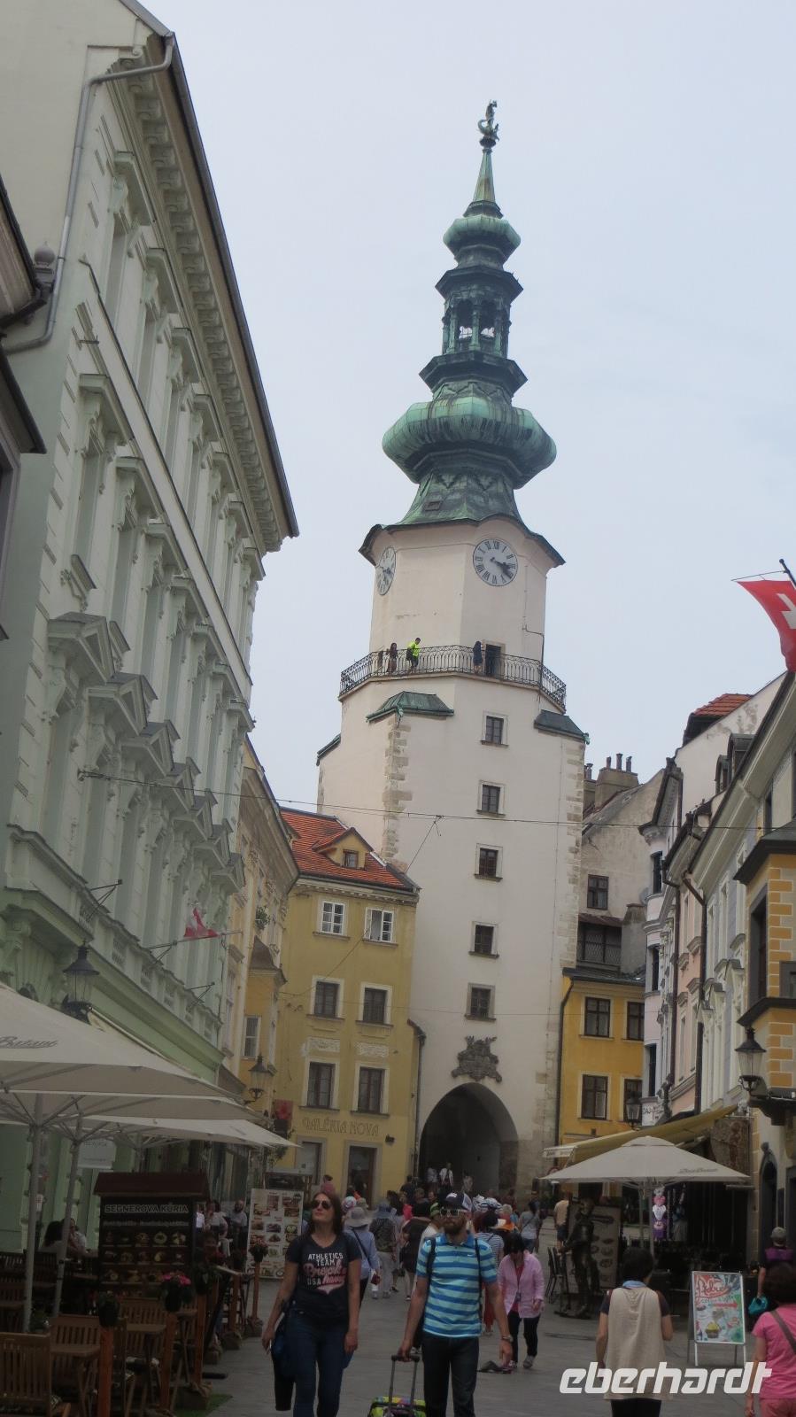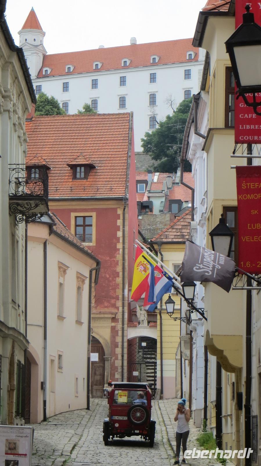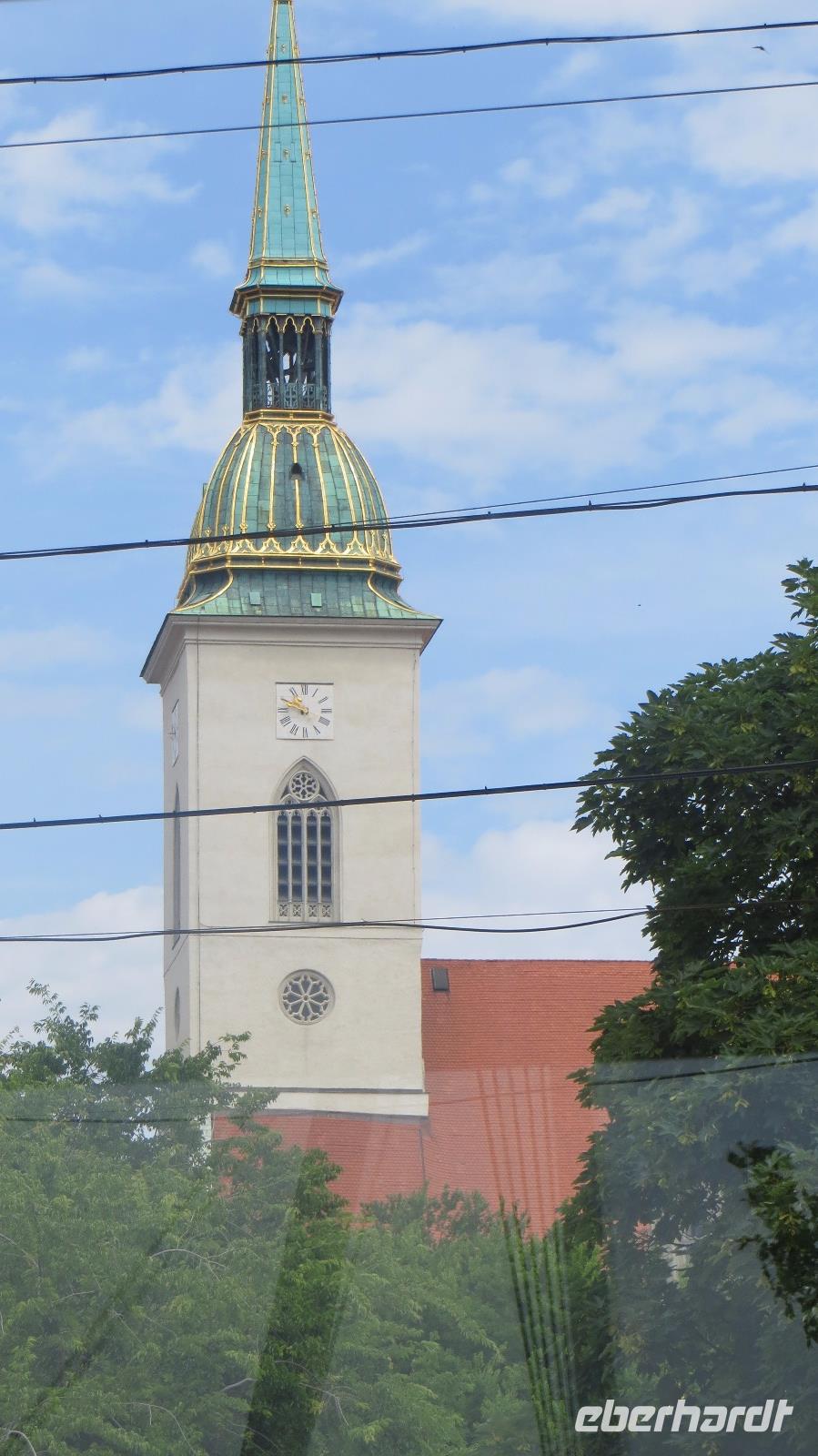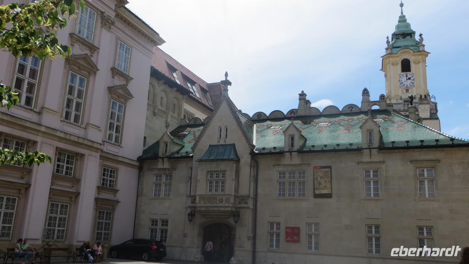 Am Morgen legte unser Schiff in Bratislava an. Wir freuten uns auf die Hauptstadt der Slowakei. Mit einer historischen Straßenbahn entdeckten wir den Ring um die Altstadt. Das Wahrzeichen der Stadt die Burg Preßburg konnten wir bestaunen. Auch das Parlament liegt auf einem Hügel oberhalb der Stadt. Zu den wichtigsten Sehenswürdigkeiten gehört die Kathedrale des Heiligen Martin. Sie war von 1563 - 1830 die Krönungskirche der Ungarischen Könige. Auch Maria Theresia wurde hier zur Ungarischen Königin gekrönt. Die Goldene Krone an der Kirchturmspitze erinnert an diese Zeit. Nun entdeckten wir die Stadt noch zu Fuß. Auf dem Weg zum Rathausplatz konnten wir viele schöne restaurierte Häuser und Prachtvolle Paläste bestaunen. Vorbei am Theater und der Philharmonie erreichten wir wieder das Schiff. Nach dem Mittagessen hatten wir noch Zeit individuell die Stadt zu erkunden. Doch viel weiter als zum Cafe Meyer führte der Weg meistens nicht. Am späten Nachmittag legt die AROSA in Richtung Österreich ab. Die wunderschöne Wachau wartete auf uns.