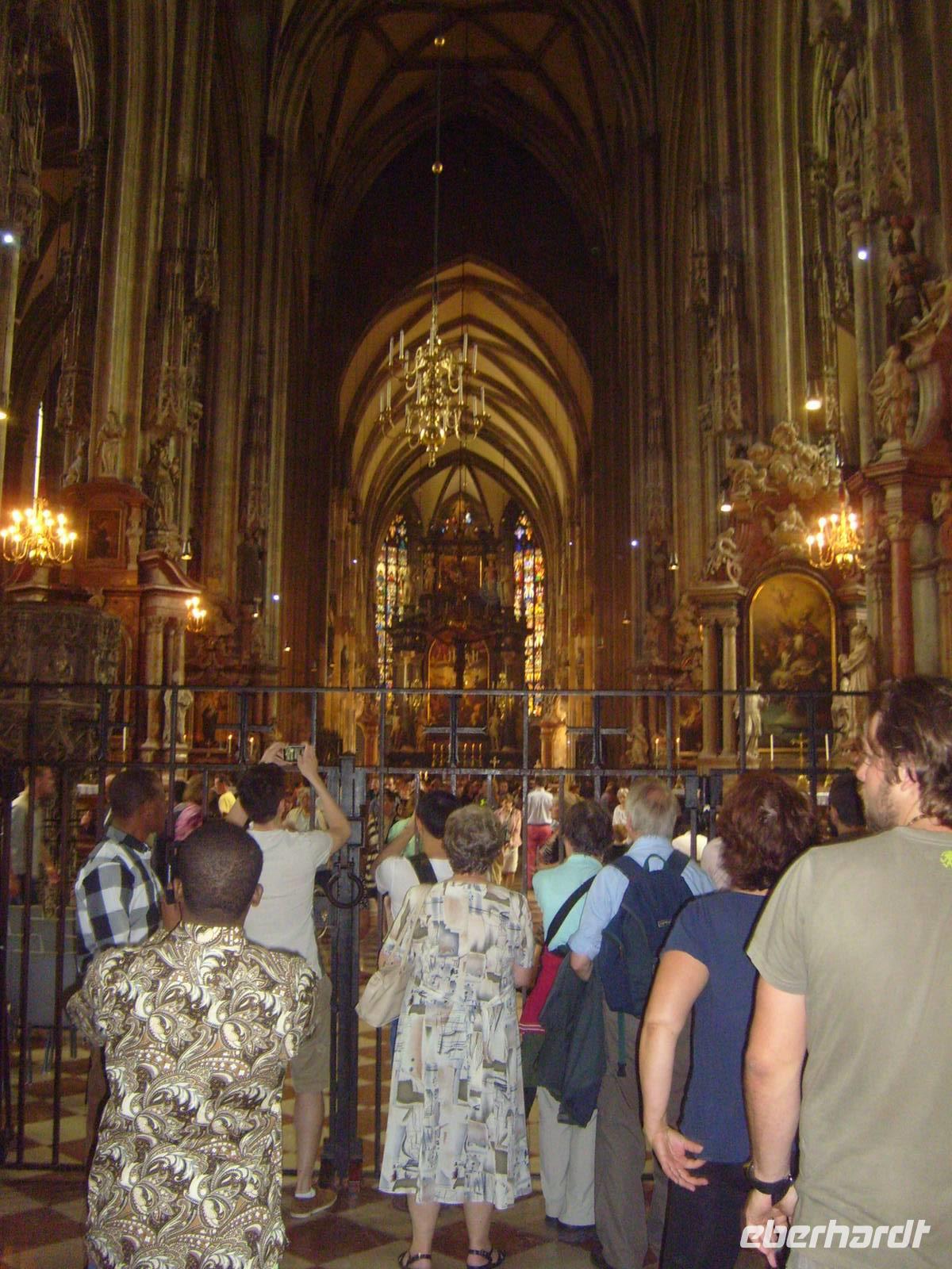 Ende der Busfahrt war der Schwedenplatz. Von dort sind wir zum Stephansdom gelaufen und hatten dann Freizeit. Diese gestaltete jeder Gast auf seine Weise. Entweder Besuch im Dom oder bummeln auf der Kärtnerstraße mit ihren teuren Geschäften. Am erholsamsten ist es aber in einen der zahlreichen Cafés einen Verlängerten, Melange, Einspänner zu genießen. Danach hieß es schon wieder zurück zum Bus und Schiff. Wien Muss man öfters besuchen. Eine so tolle Stadt lässt sich unmöglich an einem Tag erkunden.