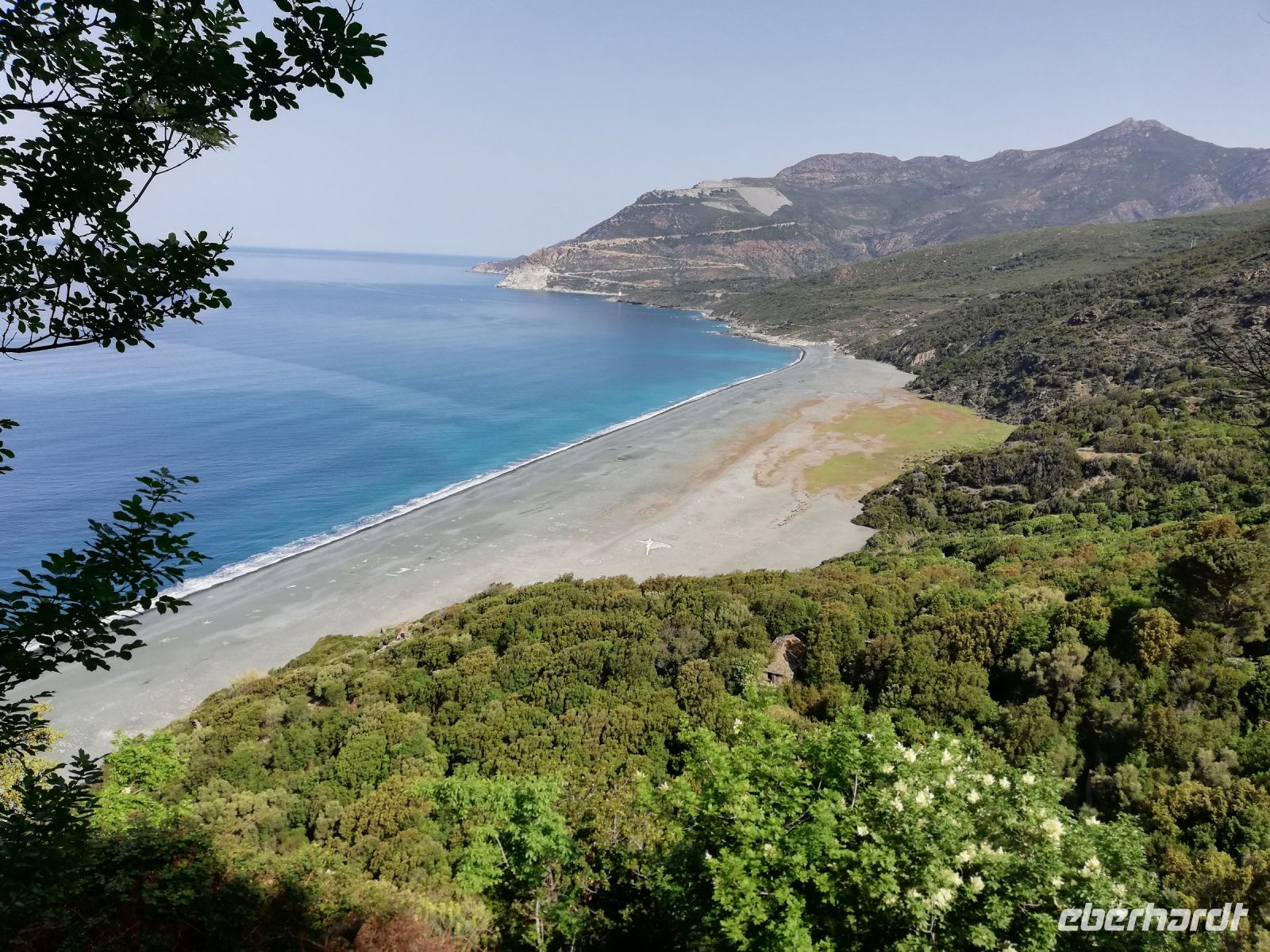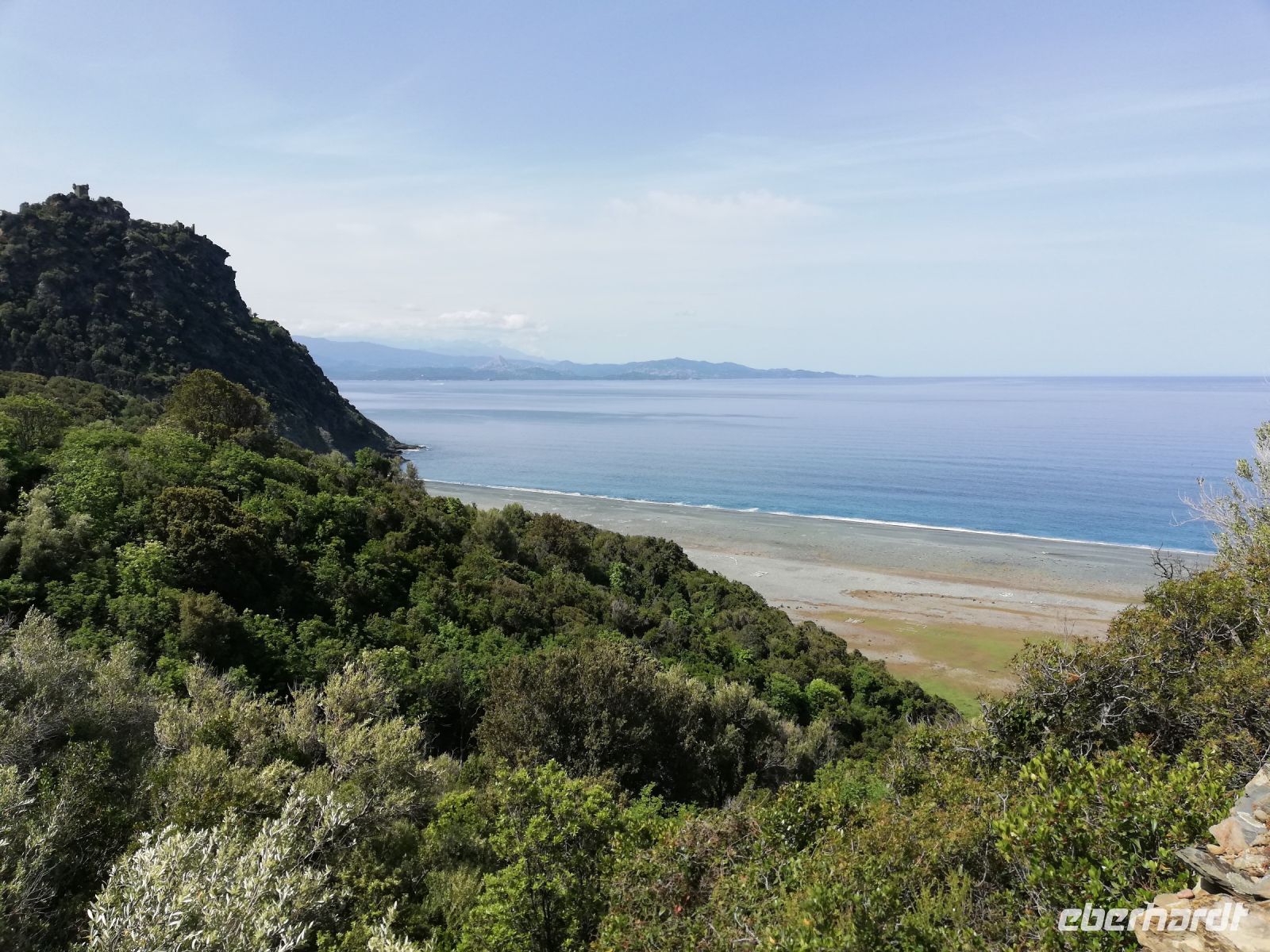 Über Stock und Stein geht es weiter. Auch etwas kraxeln ist mal angesagt. Immer wieder werden wir mit schönen Ausblicken auf den Strand von Nonza belohnt. Schließlich erreichen wir diesen und genießen den frischen Wind und das Meeresrauschen.