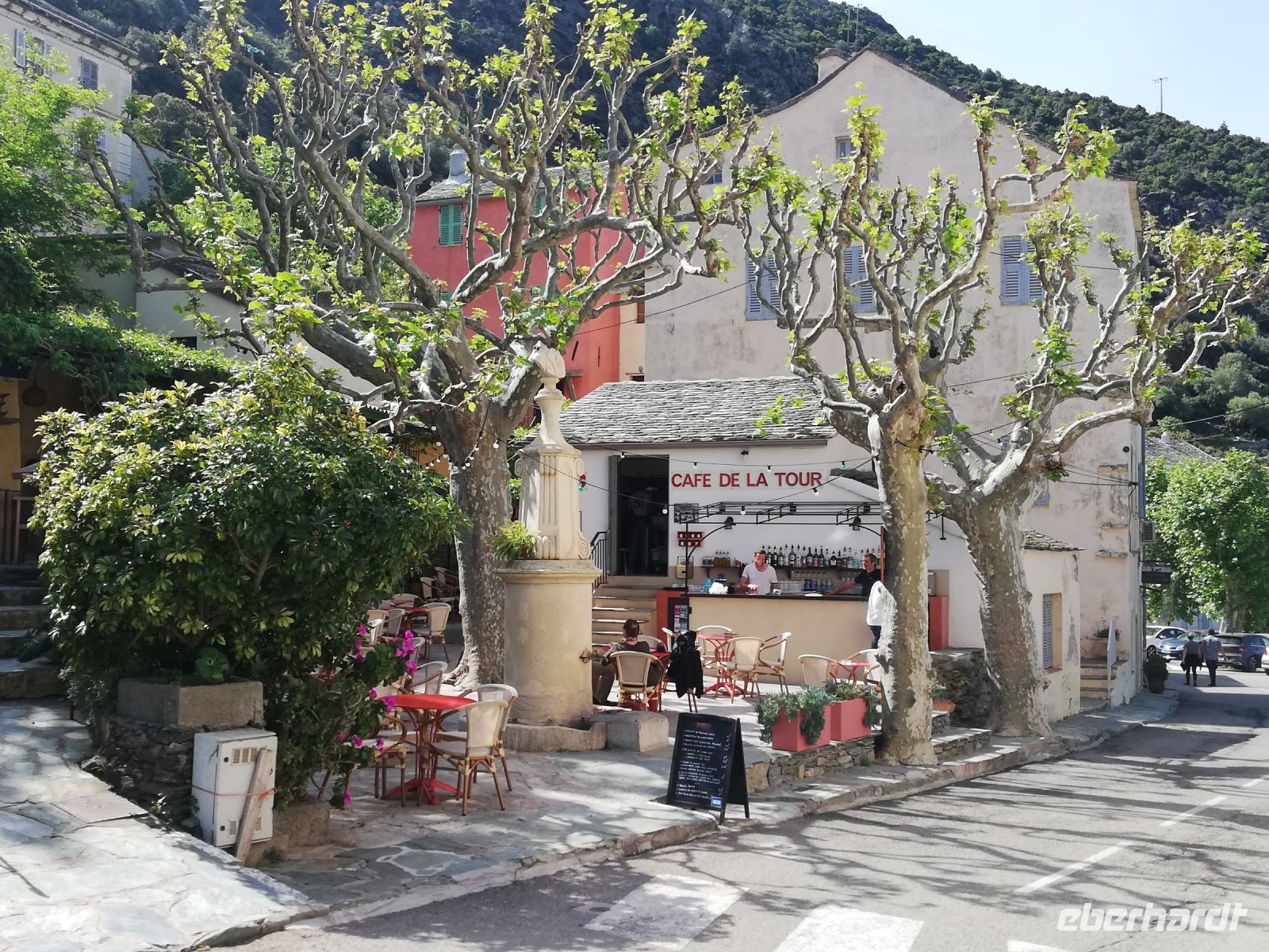 In einer kleinen Bar, unter dem Schatten der Platanen, bleibt Zeit für einen Kaffee oder ein erfrischendes Getränk.