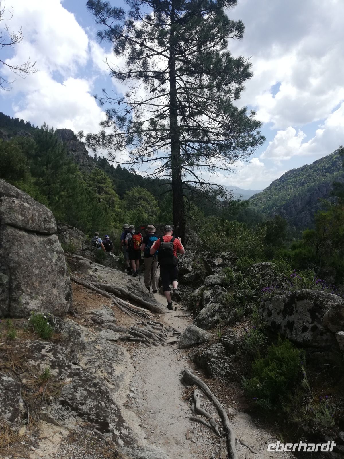 Beim Aussteigen sind die kühleren Temperaturen in höheren Lagen deutlich spürbar. Nun beginnt unsere letzte Wanderung. Eine Waldwanderung zum "Trou de la Bombe", einem bizarr geformten Felsenloch. Wir lauschen dem Wald und dem Gesang unserer Wanderreiseleitung. Sogar ein klitzekleines Stück Weg vom berühmten Weitwanderweg dem GR 20 sind wir gelaufen.