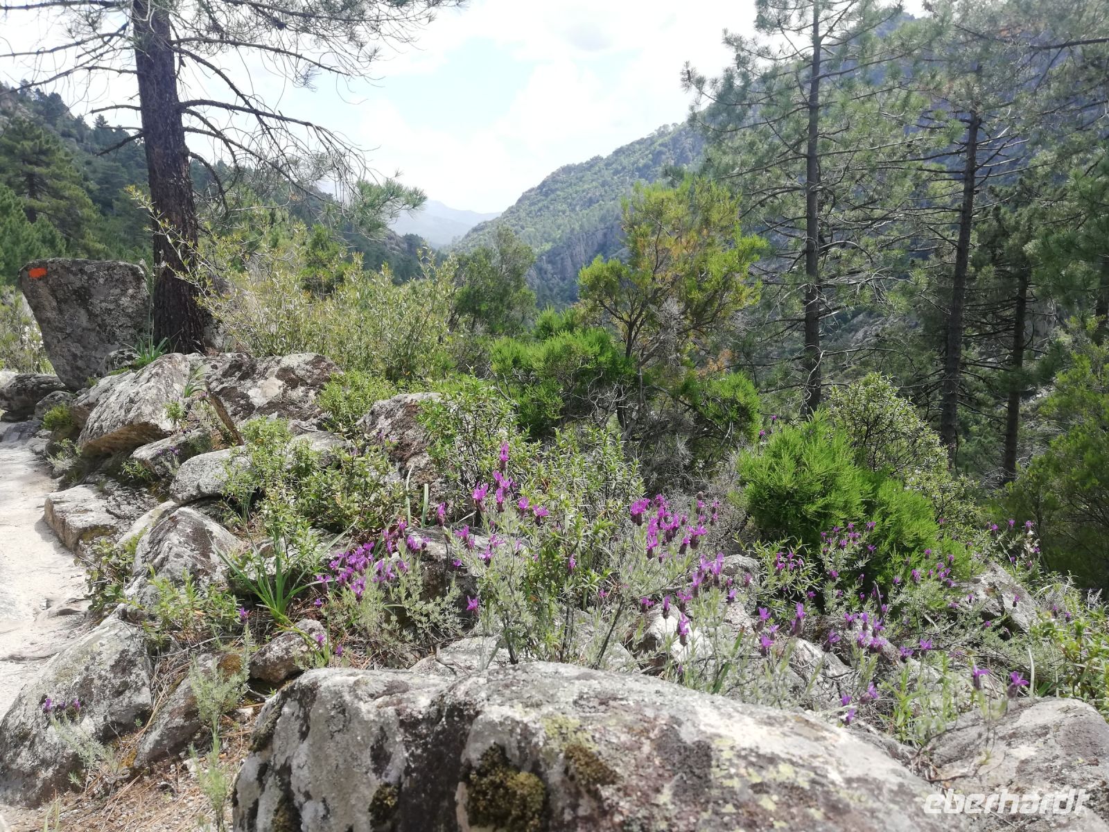 Zunächst jedoch genießen wir die Wanderung durch die Tavignano-Schlucht. Zur Mittagszeit legen wir eine kleine Pause an einem Rastplatz ein. Immer wieder bekommen wir tolle Fotomotive vor die Linsen. Wasserfälle, Vögel, eine Vielfalt von herrlichen Blumen und Gewächsen. Sogar Orchideen haben wir entdeckt.
