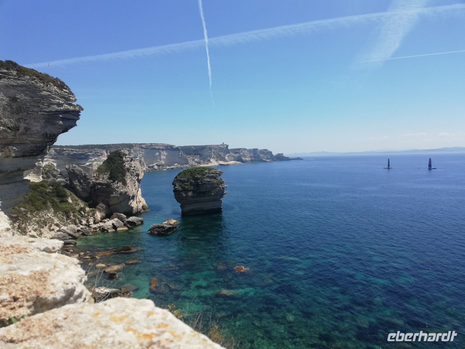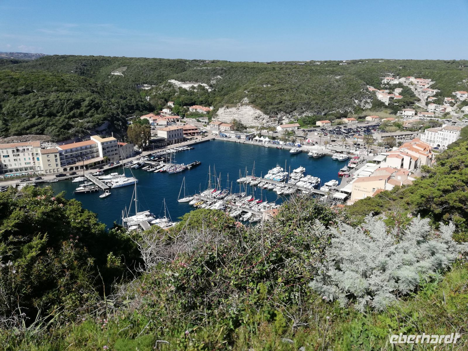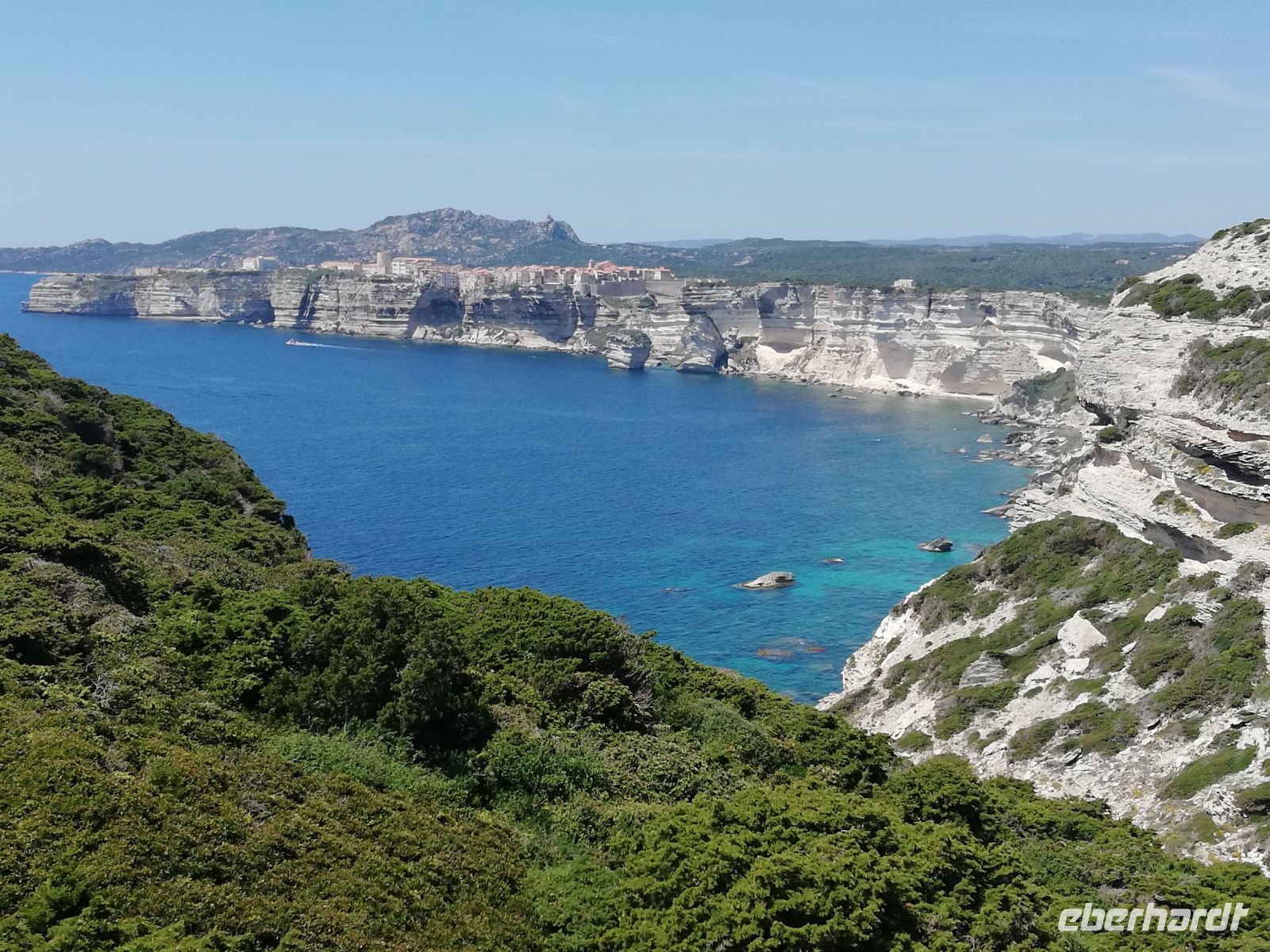 Die Bootstour ist unser erster Programmpunkt des Tages. Wir haben Glück, denn schon um 12:00 Uhr legen wir ab, und erleben die Eindrücke der Stadt vom Meer aus. Die Altstadt von Bonifacio liegt auf einem ca. 80 Meter hohen Kalkfelsen. Wirklich beeindruckend. Mit etwas Verpflegung im Gepäck begeben wir uns auf den eigentlichen Höhepunkt des Tages. Die Panorama-Wanderung entlang der Steilküste zum Leuchtturm.