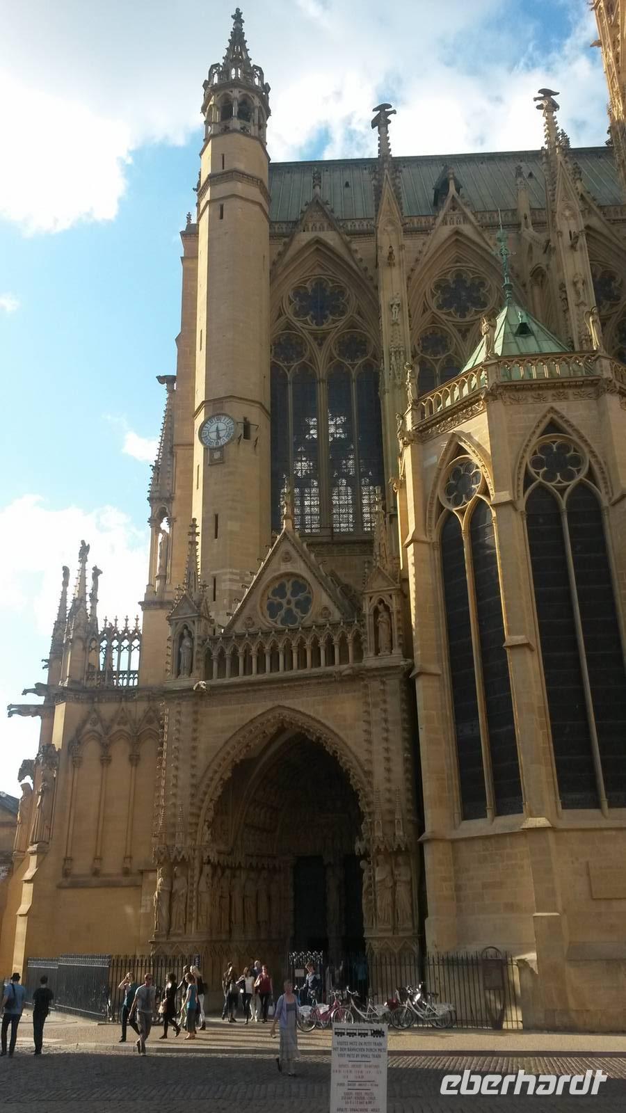 Doch mit 4-5 Stunden Fahrt inklusive Pause nach Metz muss man rechnen. Um die Kathedrale in Metz zu besuchen, sollten wir bis 17 Uhr ankommen. So bleibt Zeit für eine kurze Innenbesichtigung der Kathedrale Saint Etienne mit ihren prachtvollen farbigen Fenstern. Ganz individuell ist dann der Rückweg zum Bus über den Handwerkermarkt oder noch schnell in die Markthalle. Alle Reisenden sind sich einig, Metz war diese Stippvisite wert.Mit einem letzten Abendessen im zentralen Hotel nehmen wir Abschied von der kulinarischen Vielfalt in Frankreich.