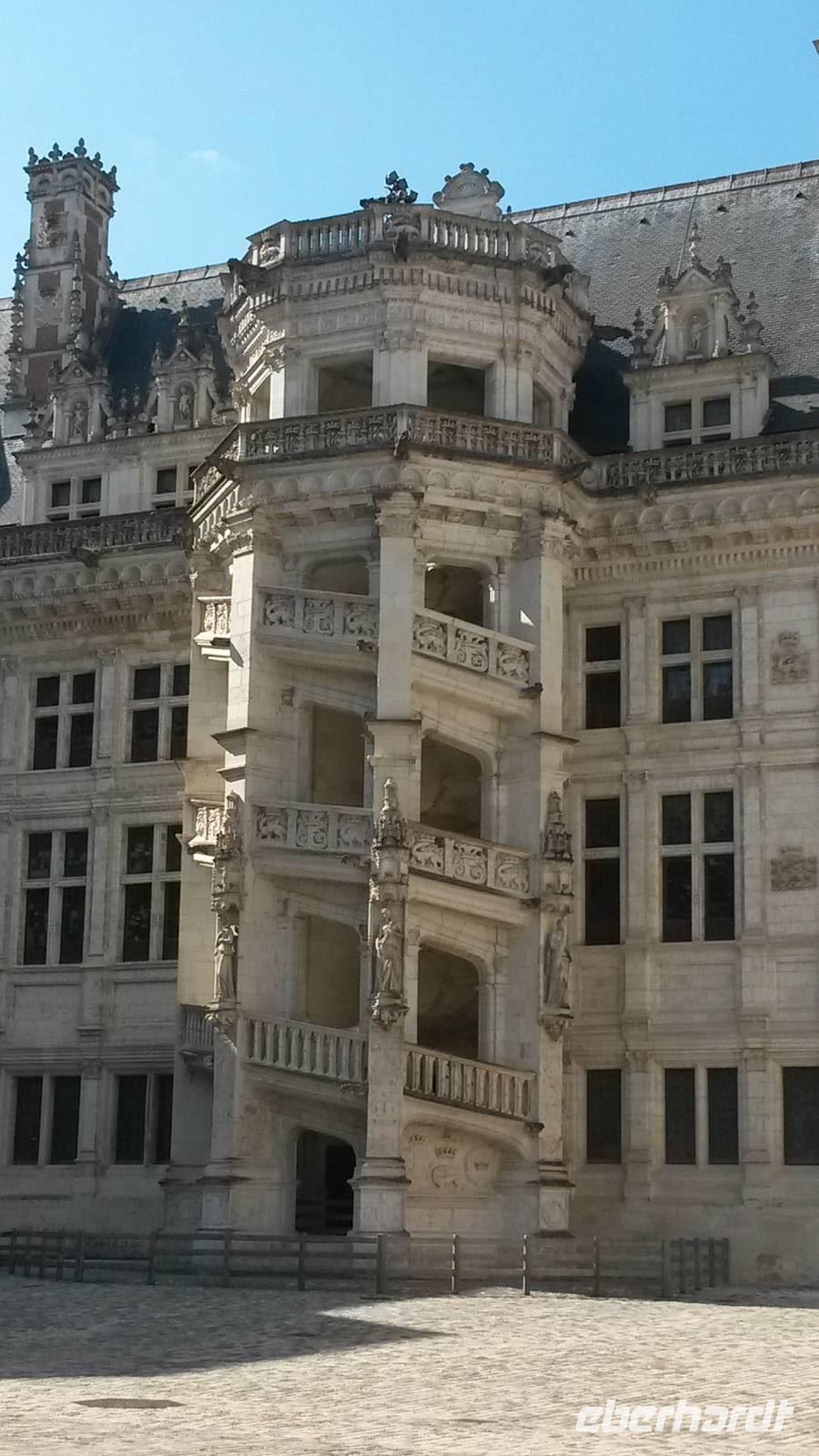 Froh gelaunt trafen sich alle Reisegäste zur Weiterfahrt nach Blois. Von einer Kutsche aus eröffnete sich ein völlig neuer Blick auf das Seinetal und die durch den Fluss geteilte Stadt Blois, die ein Beispiel für den Bau mit Tuffstein ist. Anschließend wurde das mit Spannung erwartete erste Loire Schloss besichtigt. Bei den originellen Ausführungen von unserem örtlichen Reiseleiter Michael wurde allen Zuhören bewusst, wie verschlungen die Geschichte der französischen Könige ist. Das Königsschloss von Blois war auch gleich ein guter Einstieg in die vielfältigen Baustiele im Laufe der Jahrhunderte an der Loire.