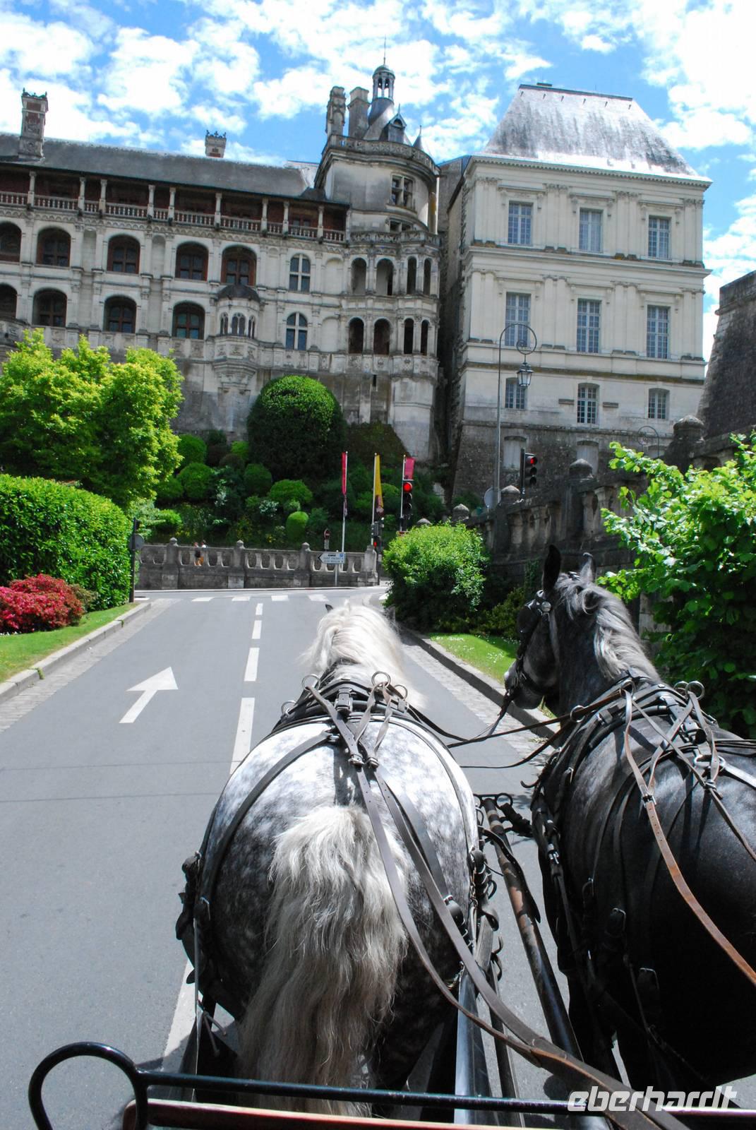 Wir verlassen Paris bei leichtem Nieseln - das Zeichen dafür, dass es Zeit ist, weiter nach Westen zu ziehen. Dank des Feiertags ist der Verkehr auf der périphérique sehr flüssig und wir brauchen nur wenig Zeit um nach Chartres zu gelangen - eigentlich sehr ungewöhnlich, wie es die Rückreise später beweisen wird. -. Nach Reims und Paris bekommen wir dort eine dritte Notre-Dame zusehen: die Kathedrale Notre Dame de Chartres. Mit vielen Details wird uns die Geschichte dieses besonderen Ortes näher gebracht. Übrigens, welcher Turm ist der älteste, der Linke oder der Rechte? Leider bekommen wir aber wegen Bauarbeiten das berühmte Labyrinth der Kathedrale, eine der wenig erhaltenen in Frankreich, nicht zu sehen. Vielleicht ein anderes Mal. Am Nachmittag erhellt sich das Wetter und ermöglicht so eine sehr schöne Kutschfahrt durch die hübsche Stadt Blois bevor wir das Königsschloss besichtigen. Das erste Schloss der Reise, aber noch lange nicht das letzte. Als komplexes Bauwerk aus insgesamt vier Schlössern bestehend und Zeuge entscheidender historischer Ereignisse, ist dieses Schloss ein richtiger Höhepunkt und der Ort unserer ersten Begegnung mit einem König, der uns unsere ganze Reise begleiten wird: Franz I. Am Abend erreichen wir unser Standorthotel im Herzen von Tours, die Hauptstadt der Touraine.