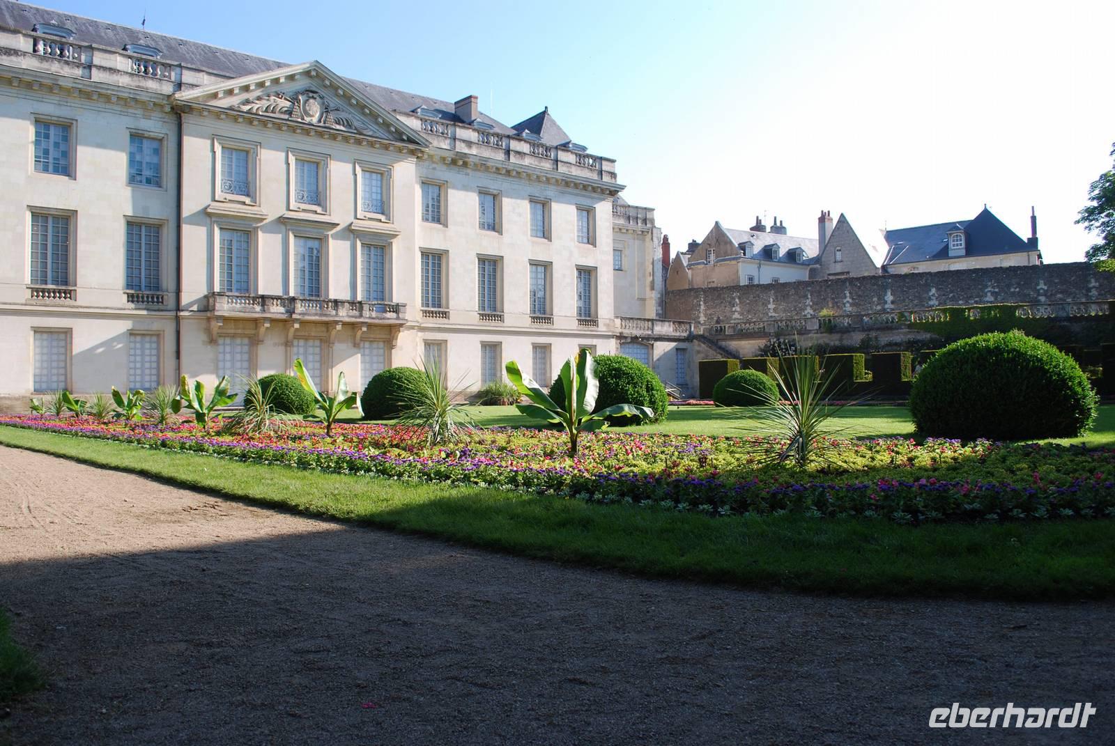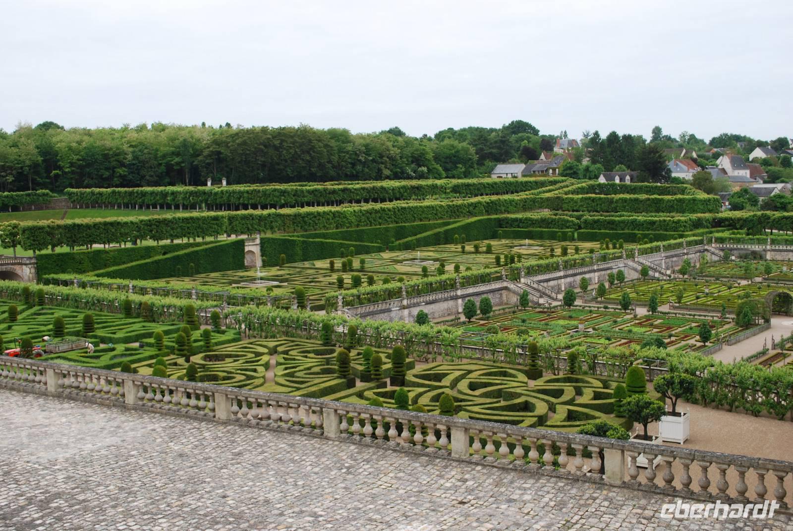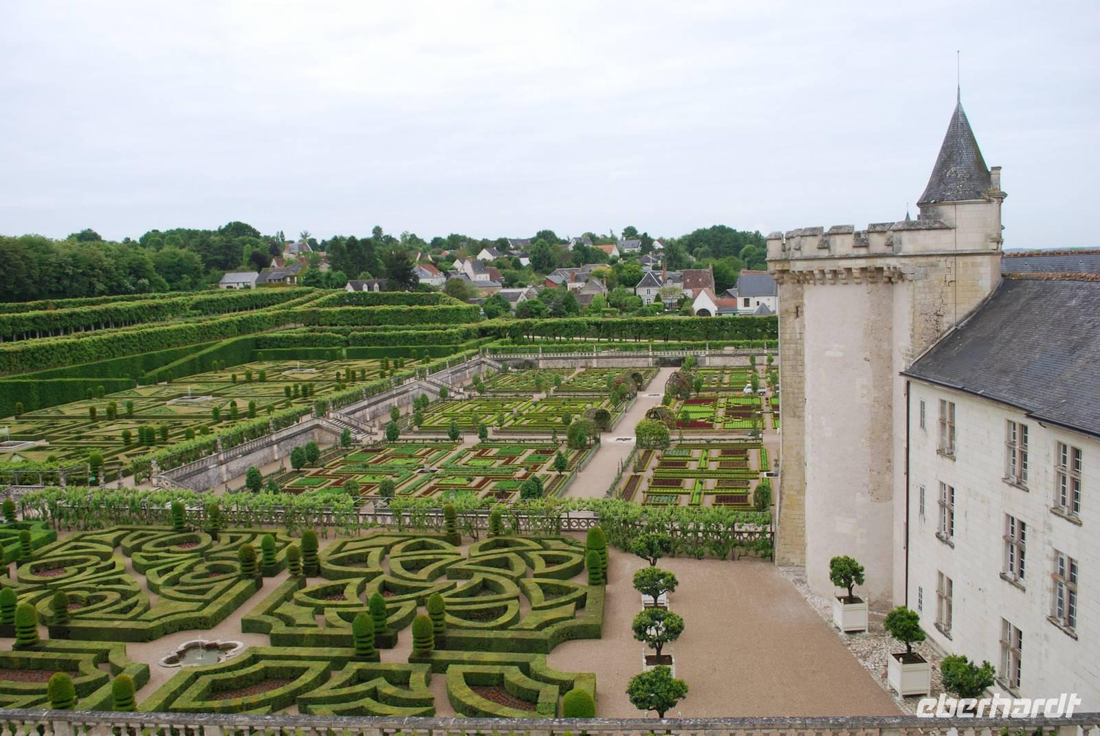 Mit drei Besichtigungen ist unser heutiges Programm gut gefüllt. Wir fangen den Tag mit den Gärten von Villandry an. Wenn man sich nur einen einzigen Garten in der Region anschauen will, dann sollte es dieser sein. Es ist nicht nur ein Garten, sondern es sind neun Gärten am gleichen Ort. Natürlich bekommen wir von Michael ausführliche Informationen über den berühmtesten aller Gärten von Villandry: „les jardins de l'amour", die Gärten der Liebe. Mit viel Humor erklärt er uns die Bedeutung von den unterschiedlichen Formen und Farben die wir in dem Garten zu sehen bekommen. Bevor wir anschließend weiter fahren, bekommen wir noch genügend Zeit, umselbstständig durch die Gärten zu spazieren. Unser zweites Ziel heute war das Renaissanceschloss Villandry. Leider war wegen Bauarbeiten die Fassade des Wasserschlosses nicht zu sehen, dafür haben wir aber Zugang zu dem beeindruckenden Dachboden bekommen. Azay le Rideau war kein königliches Schloss, sondern das Schloss, das sich ein Finanzmann von Franz I. mit dem Geld des Staates bauen lassen hat. Die gleiche Geschichte werden wir auch in Chenonceau hören: die Besitzer der beiden Schlösser waren nämlich Bekannte. Hier wird uns auch das Konzept der Königszimmer erklärt: In jedem nicht königlichem Schloss ist ein solches Zimmer vorhanden und dient zum Empfang des Königs falls er sich entschied, den Schlossherren zu empfangen oder sich in der Region aufzuhalten. Nach einer Mittagspause in Azay le Rideau fahren wir nach Tours zurück, um einen zweistündigen Stadtrundgang zu machen, der am Tour Charlemagne endet - einem Turm der ehemaligen Basilika Saint Martin. Als Abschluss bekommt auch jeder eine Spezialität aus der Region zu kosten: Biscuits mit poire tapée und caramel au beurre salé.