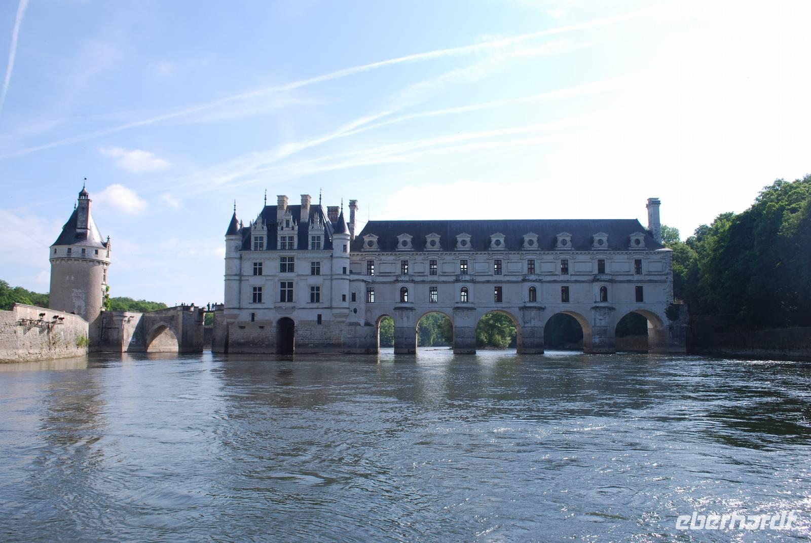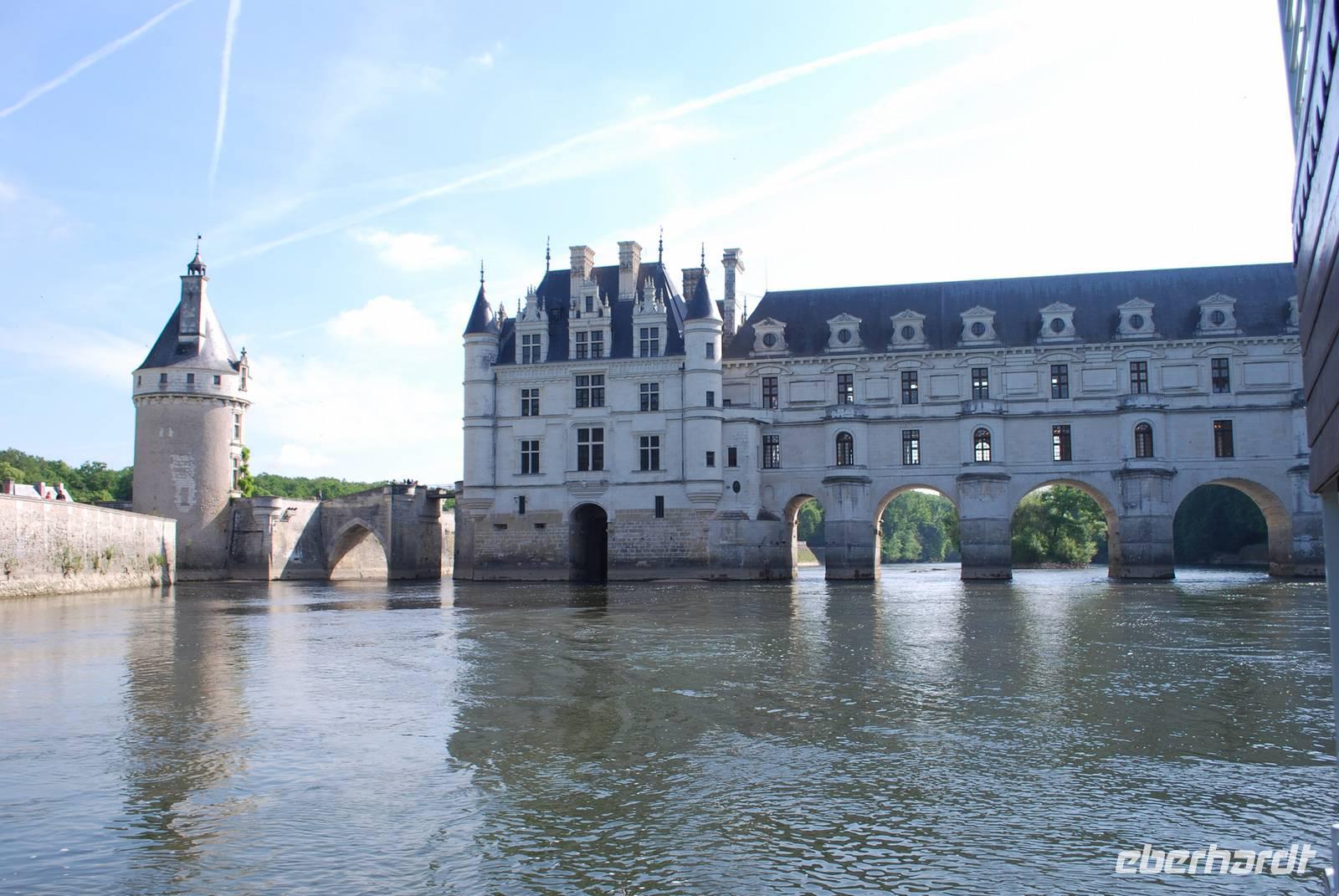 Der heutige Tag beginnt ganz entspannt mit einer Bootsfahrt auf der Cher bis zum Schloss Chenonceau. Da der Pegel sehr niedrig war und das Schiff an einigen Stellen nicht fahren konnte, durften wir auch die Besonderheiten der Schifffahrt in solchen Umständen erleben. Hoffentlich hat auch keiner beim Fahren unter den Bögen des Schlosses seine Wunschäußerung vergessen. Nach einer interessanten Stunde, die uns sehr schöne Eindrücke auf das Schloss Chenonceau gebracht hat und ein paar historische Informationen von Michael, legt das Boot bei der Anlegestelle wieder an. Bevor es zum Schloss weiter geht, bleibt uns noch Zeit übrig, um einen kleinen landestypischen Apéritif an dem Ufer des Chers zu genießen. Erbeeren aus der Touraine, rillons, zwei Sorten Käse (Sainte Maure de Touraine und Tomme de Touraine au Vouvray) und genauso zwei Weinsorten (Chinon und Touraine Sauvignon) sind dabei. Danach sind wir alle bereit für eine Besichtigung des „Chateau des Dames", dem sogenannten Damenschloss. Ob es Katherine Briconnet, Diana von Poitiers, Katharina von Medici oder Louise de Lorraine ist, jede dieser Frauen hat im Schloss ihre Spuren hinterlassen. Bei dem sonnigen Tag ist ein Spaziergang in den Gärten und besonders im Gemüse- und Rosengarten sehr angenehm. Nur wenige Kilometer vom Ort Chenonceaux entfernt, befindet sich unserer nächster Ziel: Le Père Auguste, ein kleines Weingut. Nach einer Führung der Keller mit dem Besitzer kosten wir verschiedene seiner Weine. Da hat er auch an was zu essen gedacht: Ziegenkäse und hausgemachte Rillettes. Un délice!