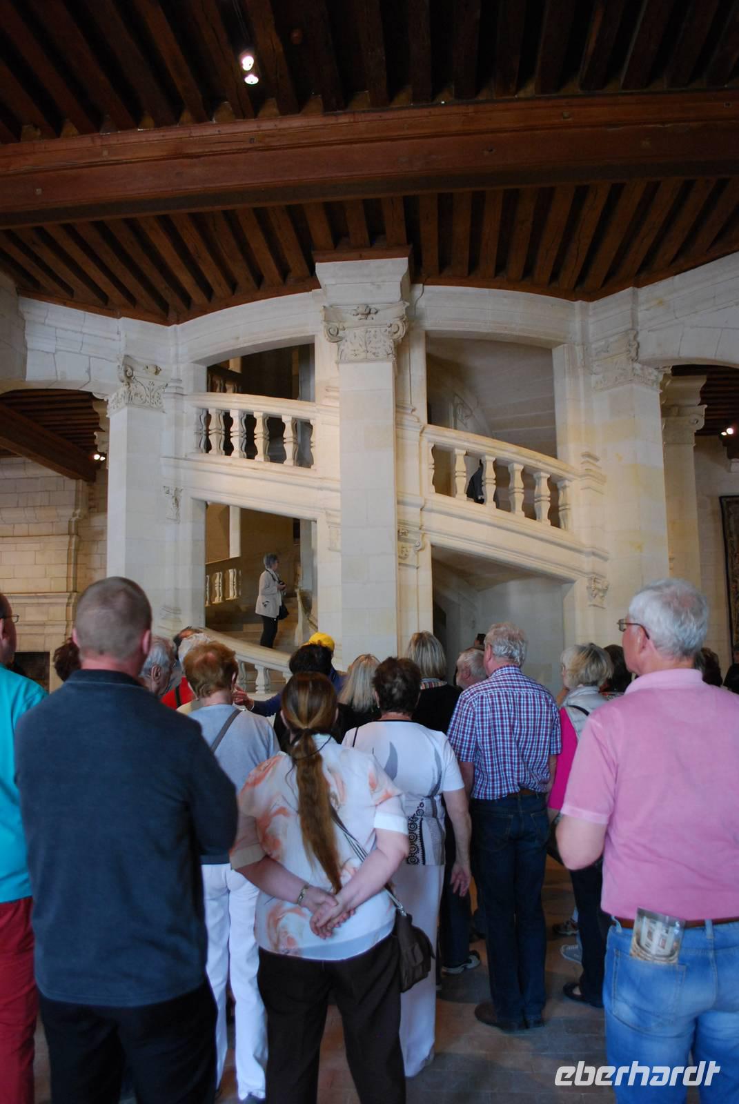 Wir verlassen heute Tours und begeben uns auf dem Weg nach Paris. Auf der Strecke besichtigen wir noch zwei wichtige Schlösser: Cheverny, eines der einzigen Schlösser im klassischen Stil in der Region. Seit seiner Bauzeit ist es immer im Besitz der gleicher Familie geblieben, die das Schloss auch noch bis heute bewohnt. Interessant an dem Schloss sind, neben seiner Inneneinrichtung, die Hundemeute von ca. 100 Hunden für die Hetzjagd und der Bezug zu Tim und Struppi. Für das Schloss Moulinsart hat sich Hergé nämlich von Cheverny inspirieren lassen. Das zweite Schloss des Tages ist Chambord. Mit seinen 440 Zimmern, 77 Treppen und 282 Feuerplätzen ist es ein Ort der Maßlosigkeit und des realisierteren Traums vom König Franz I. Durch die berühmte Doppelwendeltreppe, die man Leonardo Da Vinci zuschreibt, erreichen wir die unterschiedlichen Säle des Schlosses, die uns Michael zeigen will. Danach haben wir noch Freizeit für das Mittagessen. Auf dem Rückweg nach Paris erleben wir zum ersten Mal auf unserer Reise,den leider berühmten Stau auf der périphérique um Paris. Das gehört auch zur Frankreich. Bei der Porte d'Italie verabschiedet sich Michael von uns und wir fahren dann weiter nach Nogent sur Marne für die Nacht.