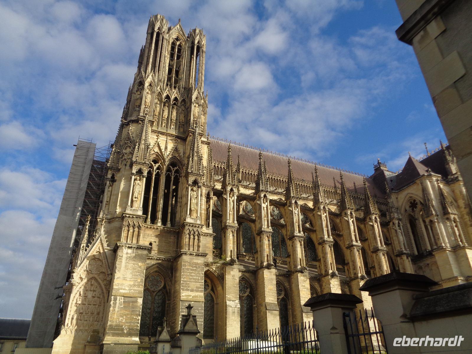 Nach dem Frühstück fahren wir mit gepackten Koffern zur Kathedrale Reims, um sie noch vor Beginn des sonntäglichen Gottesdienstes besichtigen zu können. Im Jahre 1211 erbaut, wurde sie nach einer wechselvollen Geschichte zu einem bedeutenden historischen Monument Frankreichs und gehört seit 1991 zum Weltkulturerbe. Die Kathedrale wurde in 2 Weltkriegen stark von deutschen Truppen beschädigt und wir sind froh, dass die Kathedrale Reims heute auch ein Ort der deutsch-französischen Versöhnung ist.