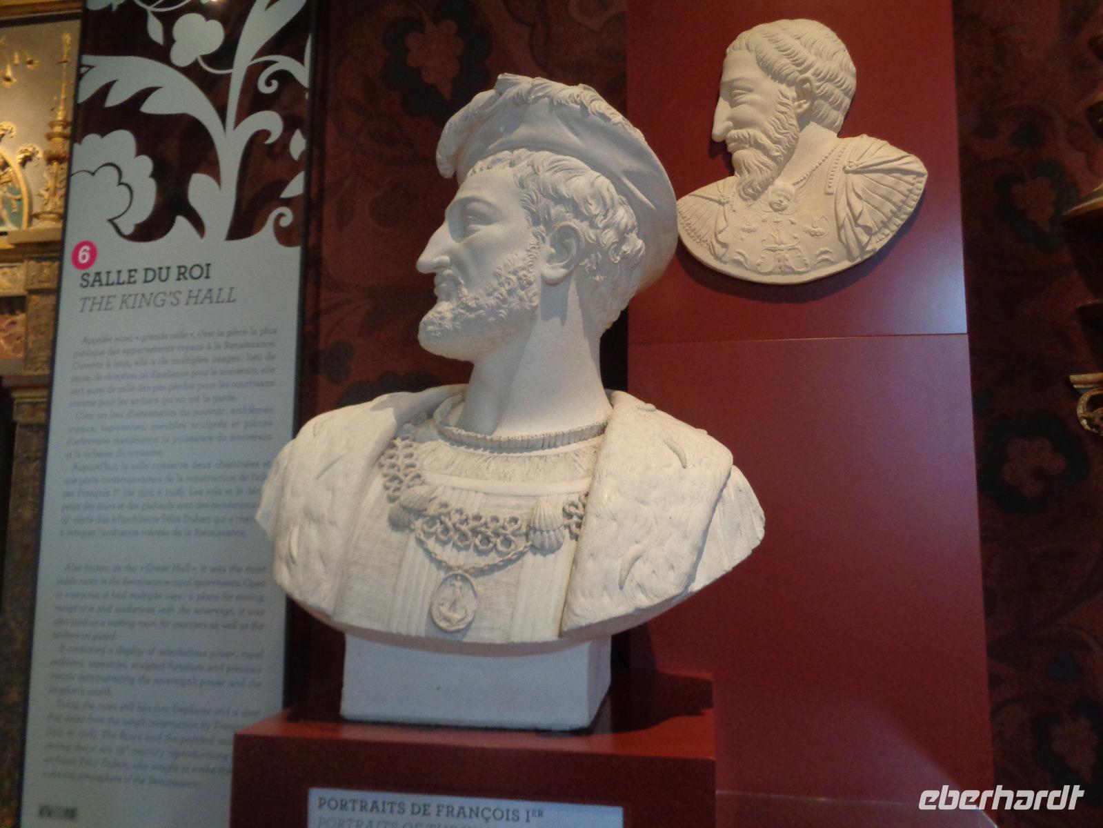 Die Fahrt geht vorbei an Orléans weiter nach Blois. Vor dem Schloss warten 2 Kutschen auf uns, mit denen wir über die Brücke über die wild-romantische Loire und zurück durch die Altstadt fahren. Das Schloss von Blois hat es in sich. Franz I. und Ludwig XII. wohnten hier, Katharina von Medici und ihr mörderischer Sohn Heinrich III. verstarben 1589 hier. Heinrich III. ließ hier den Herzog von Guise und dessen Bruder, den Kardinal von Lothringen, ermorden und wurde infolge selbst Opfer eines Mordes. Im 17. Jahrhundert erhielt der Bruder von Ludwig XIII., Gaston von Orléans, einen Flügel des Schlosses, den er modernisierte. Ludwig verbannte seine Mutter Maria von Medici 1617 hierher.