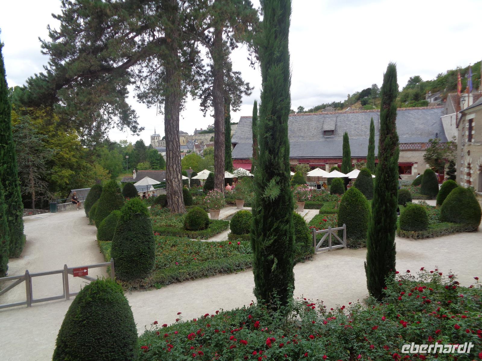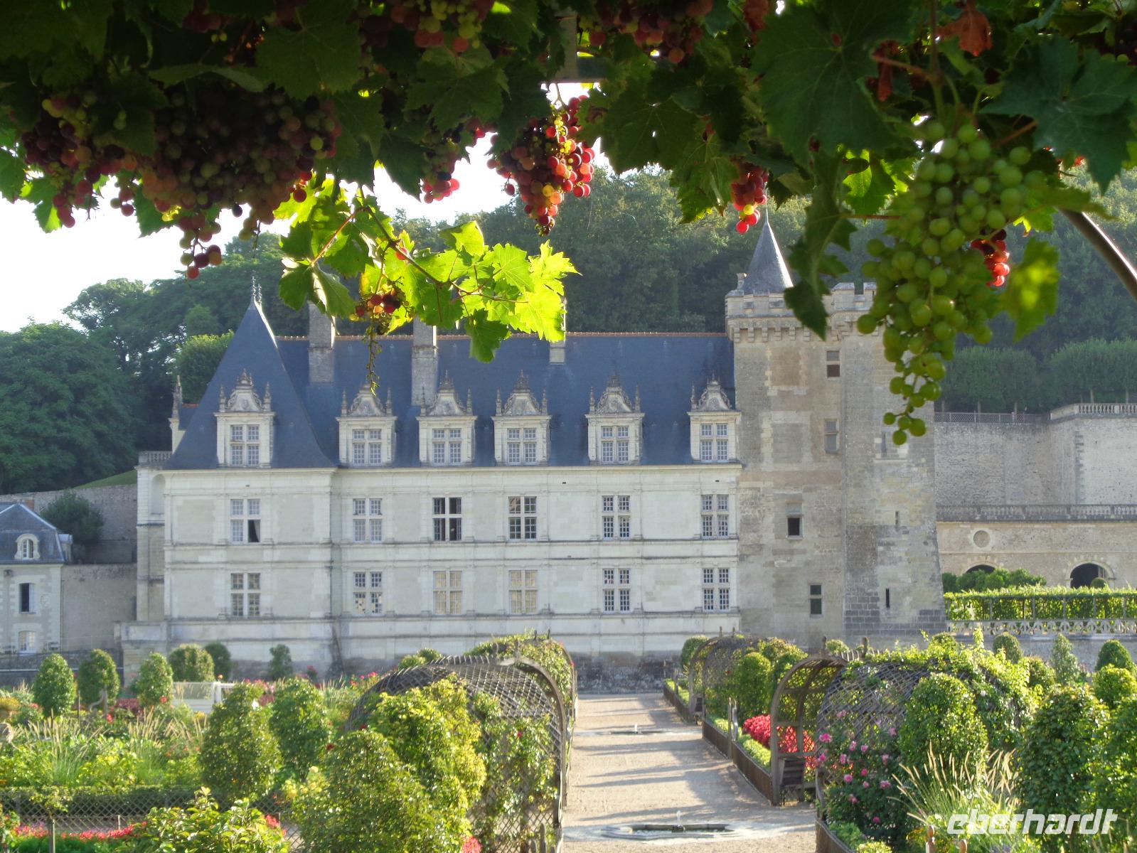 Heute führt uns unser Weg in die zauberhafte Gegend von Villandry. Die Mehrzahl der Gäste möchte nicht nur die Gärten mit den berühmten Kohlköpfen bewundern, sondern auch das dazu gehörige Schloss besichtigen. Aus der Festung von Colombiers aus dem 12. Jahrhundert, die abgerissen wurde, ließ der Finanzminister Breton unter Franz I. ein Schloss im Renaissancestil mit einem großen Garten bauen. Anfang des 18. Jahrhunderts gehörte das Anwesen dem Marquis de Castellane, bevor es in die Hände der Familie Hainguerlot und dann im 20. Jhd. der Familie Carvallo überging. Wir freuen uns darüber, dass Schloss und Gärten seit 1920 öffentlich sind und genießen die romatische Idylle am Cher im Sonnenschein.