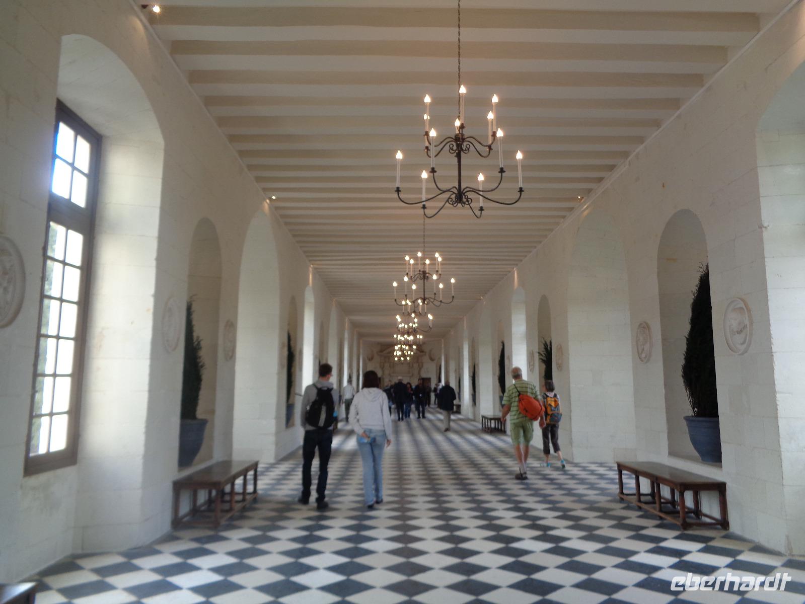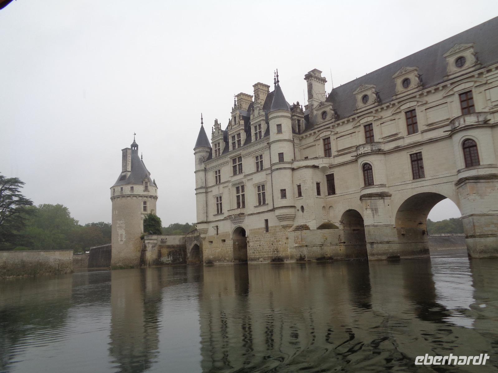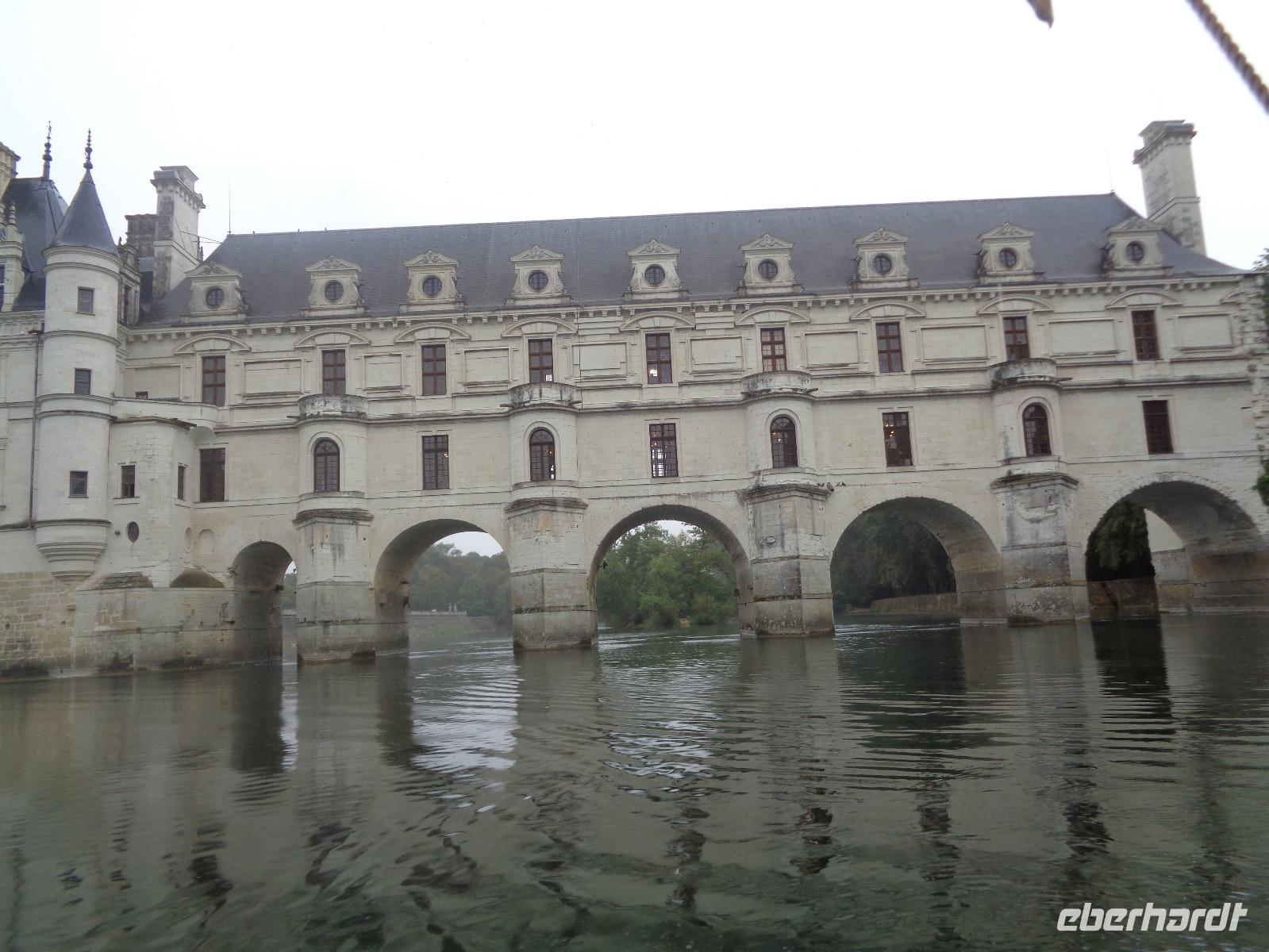 Nach dem Frühstück fahren wir zur Bootsanlegestelle von La Bélandre, um auf dem Cher eine vergnügliche Bootsfahrt zu unternehmen. Der leichte Regen wird unsere Vorfreude nicht trüben, denn das Boot ist überdacht und wir freuen uns auf die Besichtigung des Schlosses Chenonceau. Unter der Brücke der Schlossgalerie verschicken wir unsere Wünsche und kehren zum Bus zurück. Unser Fahrer bringt uns zum Schloss, das Heinrich II. seiner Geliebten Diane de Poitiers geschenkt hatte. Zuvor gehörte es dem königlichen Vertrauten Thomas Bohier, der angeblich Gelder König Franz I. veruntreut hatte. So kam das Schloss in den Besitz der Krone. Diane de Poitiers nahm Umbauten vor und lebte hier. Aber auch die Gattin Heinrich II., Katharina de Medici, wohnte hier. Nach der Ermordung des Königs warf Katharina die Geliebte aus dem Schloss und erweiterte den ursprünglichen Schlossbau um die Galerie. Katharina schenkte Schloss Chenonceau später ihrer Schwiegertochter Louise, die nach der Ermordung ihres Gatten Heinrich III. hier als weiße Witwe lebte. In der Folgezeit waren die Familien Pelouzes, Dupin und Menier weitere Eigentümer des Schlosses. Man bezeichnet Chenonceau auch als Damenschlösser, weil seine Geschicke so oft in den Händen von einflussreichen Damen lagen. Im I. Weltkrieg diente die Schlossgalerie Katherina's als Lazarett und unter dem Vichy-Regime verlief die Demarkationslinie direkt durch das Schloss und bot willkommene Schlupflöcher. Noch heute befindet sich das Schloss im Besitz des Schokoladenfabrikanten Henri Menier.