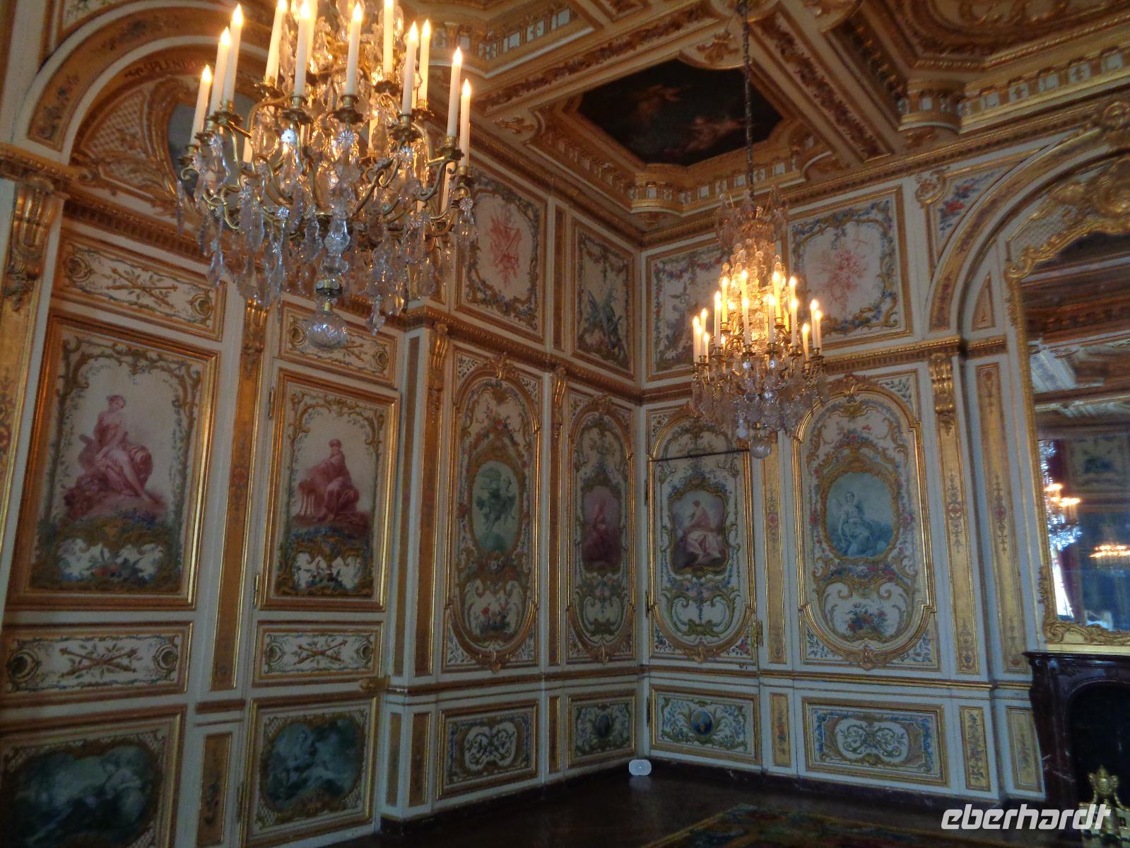 Uns verzücken die prachtvollen Räume und großartigen frischen Blumengestecke, die sensationell ausgestattete Küche und die Gärten der Diane und Katharina, die wir noch in voller Pracht erleben.