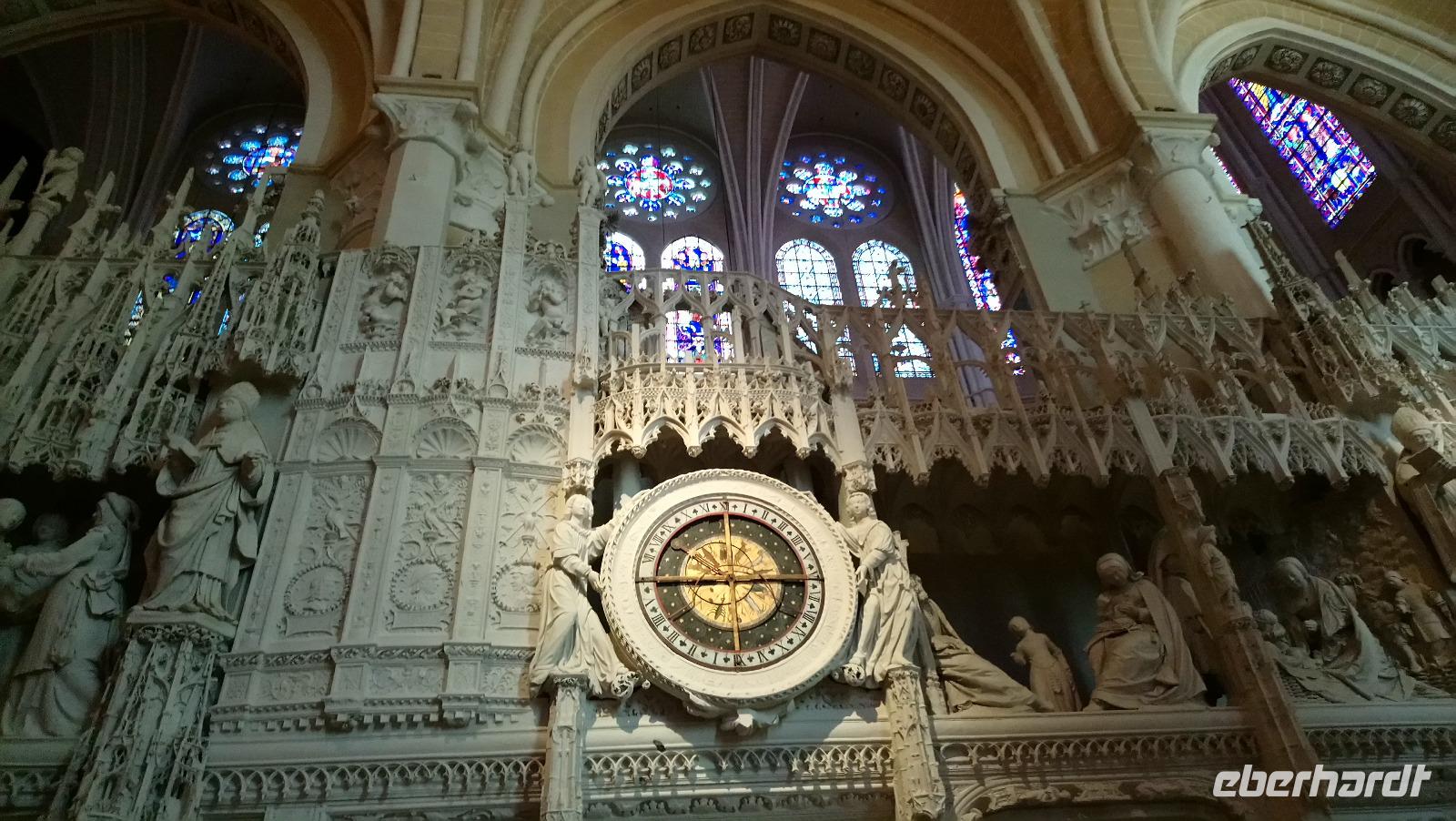 Nach einem ausgiebigen Frühstück starteten wir nach Chartres. Der Besuch der gotischen Kathedrale „Notre Dame" stand als erstes heute auf dem Programm. Michael Schramm erzählte sehr bildhaft über die Geschichte, welche sich in den Skulpturen und Reliefs der Kathedrale wiederspiegelt. In der freien Zeit erfreuten sich die Gäste an der schönen Altstadt von Chartres und genossen erste franzöische Spezialitäten als Mittagsimbiss.