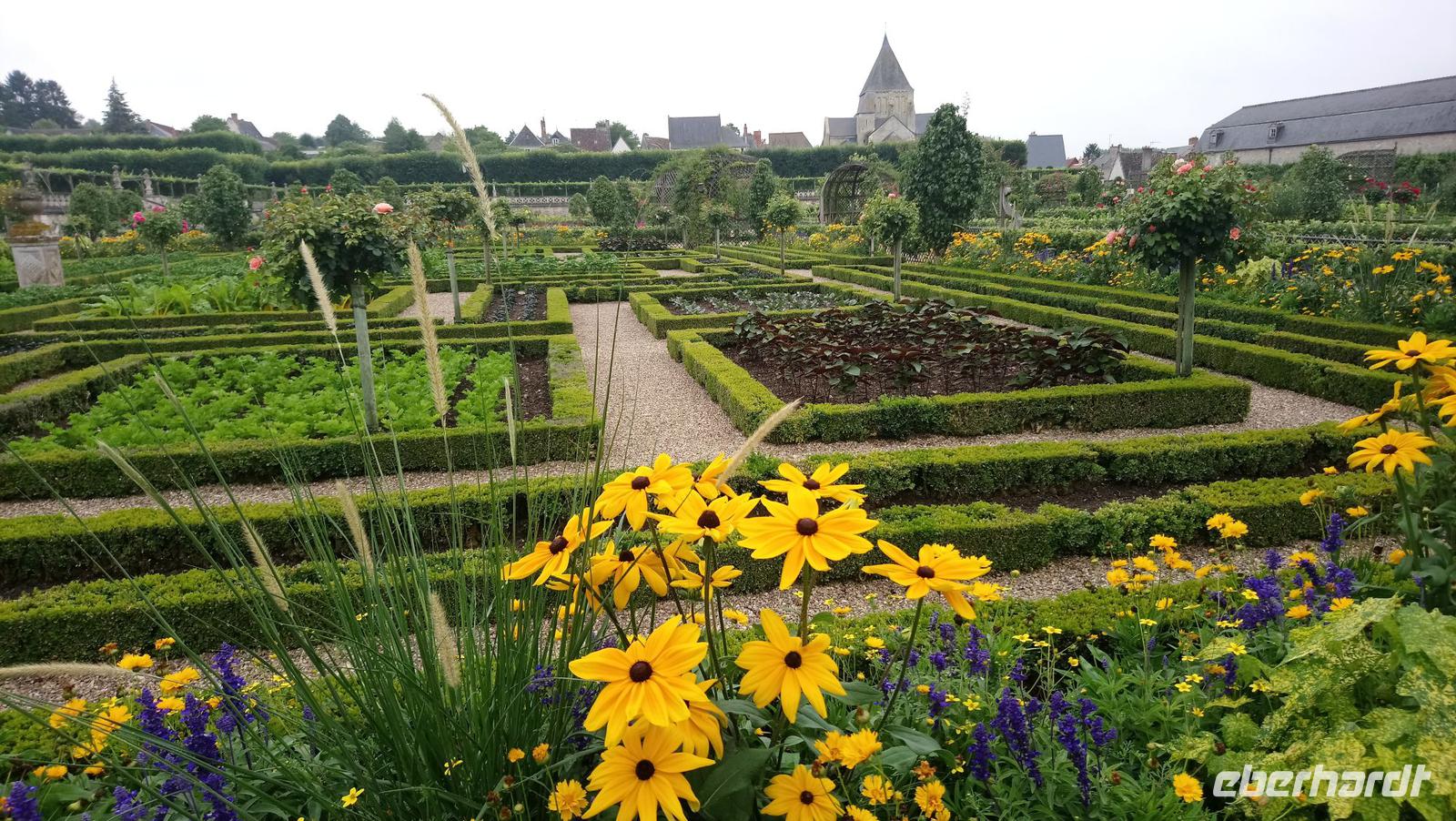 Den frühen Morgen nutzten wir für den Besuch von Villandry. Als erste Besuchergruppe eroberten wir die Gärten und das Schloss. Die Sonnenstrahlen ließen die prachtvollen Gartenanlagen in einem zauberhaften Licht erstrahlen. Gern hätten wir von dem einen oder anderen Gemüse genascht. Die Achtung vor der Leistung der Gärtner gebot uns Zurückhaltung.