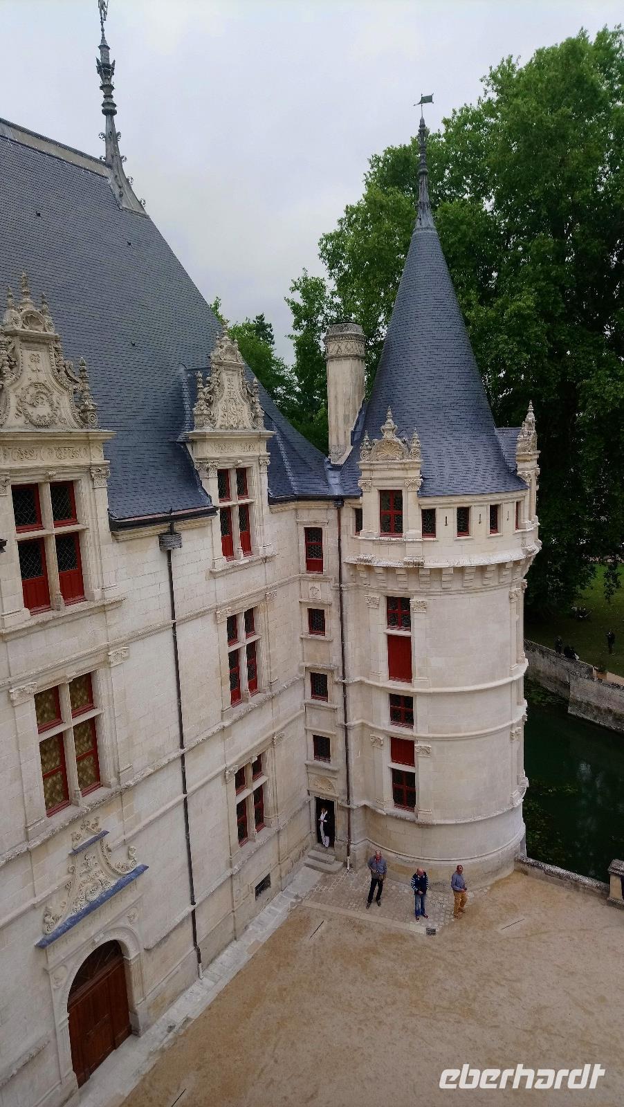 Danach fuhr uns Ingo zum Chateau Azay-le-Rideau. Die Fassade dieses märchenhaften Schlosses am Ufer des Indre ist komplett rekonstruiert. Durch die Räume führt Michael mit großer Kenntniss. Der Dachboden mit seiner beeindruckenden Holzkonstruktion mit über 500 Jahren alten Eichen wird von uns individuell bestaunt. Der Park lädt zum Flanieren ein und im Ort findet man Bistros und Patisserien gegen den "kleinen Hunger".