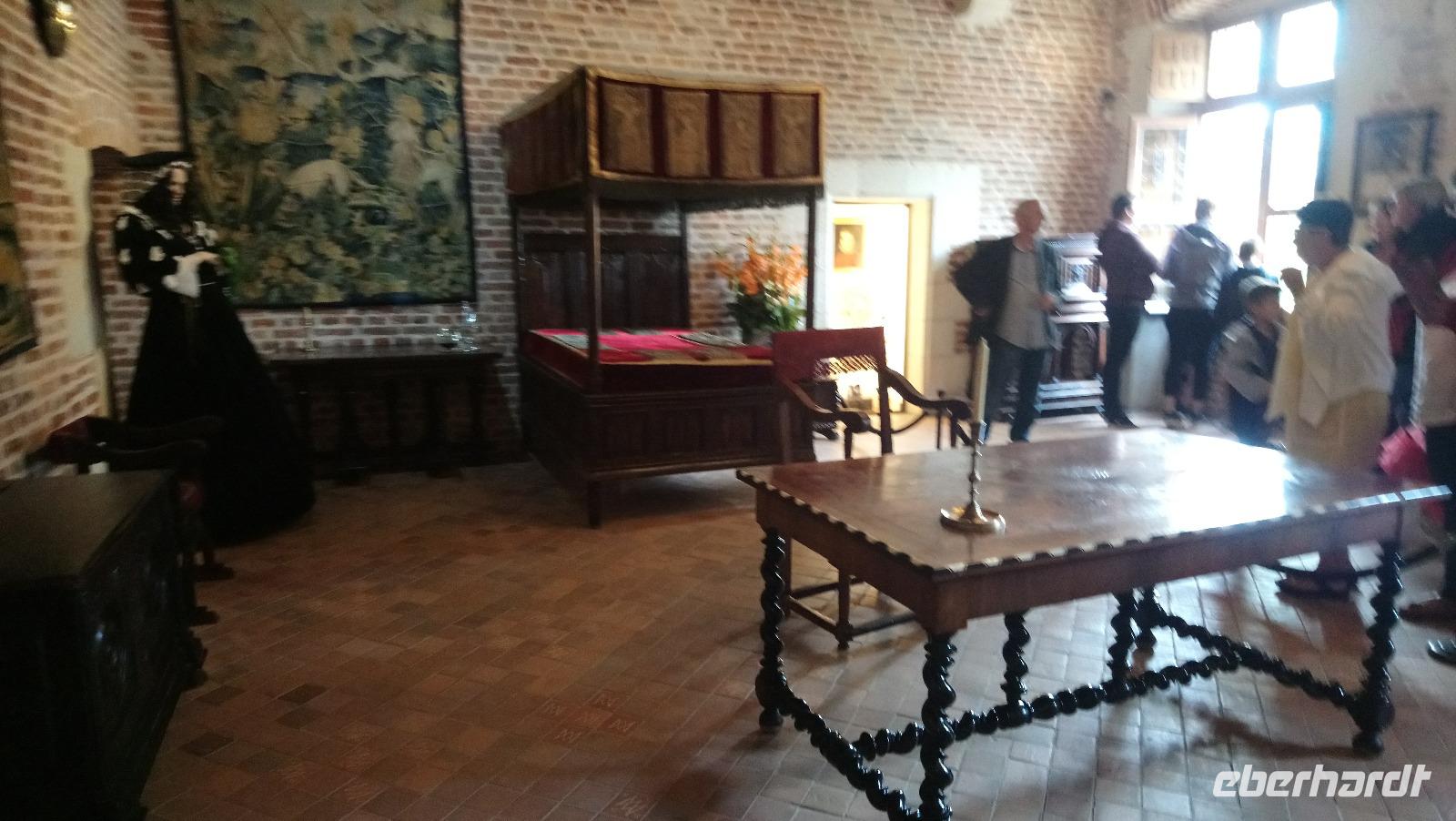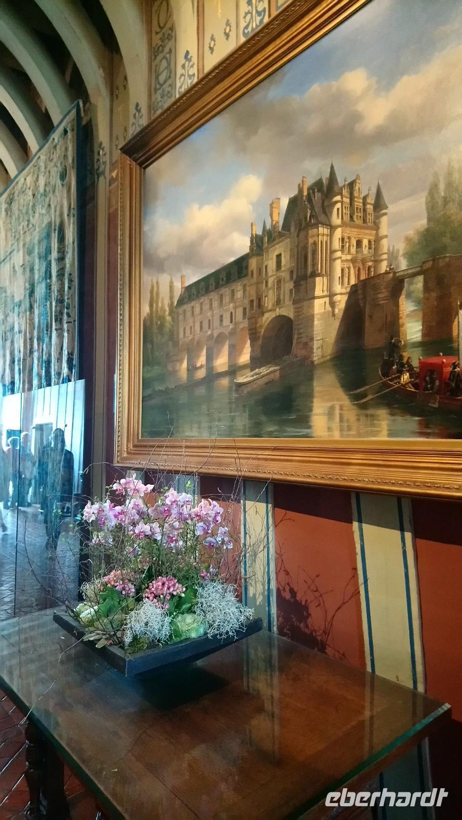 Anschließend führt Michael in seiner brillanten Art durch die Innenräume des Schlosses. Jeder Raum überrascht mit neuem Blumenschmuck. Ein Blick in die historische Küche lässt Lust auf ein Menü aus Königszeiten aufkommen. Auch wenn wir auf Grund des immer starken Besucheransturms die Räume individuell erobern, dass Schloss ist auch für uns eines der imposantesten Gebäude an der Loire.