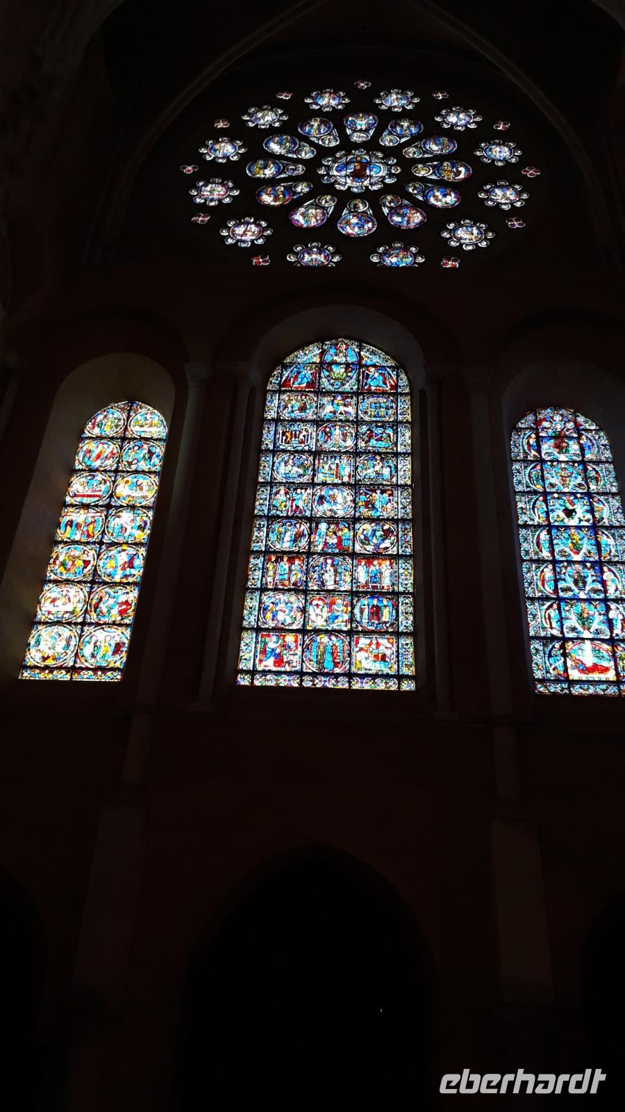 Heute begaben wir uns vor dem sonntäglichen Gottesdienst in die Kathedrale von Reims, in welcher 33 französische Könige gekrönt wurden. Zu dieser morgendlichen Stunde waren wir fast allein in der Kirche, sodass wir deren Ausmaß in Ruhe bestaunen konnten. So konnten wir uns den Innenraum, die Chagallfenster und die neuen Fenster von Imi Knoebel in aller Ruhe ansehehen.Im Anschluss setzten wir uns mit der Geschichte der Volks- und Nationalheldin Johanna von Orleans, im französischen Jeanne d'Arc genannt, auseinander. Diese junge Frau überzeugte Karl VII. von seiner Rechtmäßigkeit als französischer König, dessen Salbung dann in Reims stattfand. Nach einem gemeinsamen Rundgang durch die Stadt konnte jeder für sich die schöne Stadt Reims durchschlendern, bevor es gegen Mittag mit unserem Bus in Richtung Paris weiterging. In Paris trafen wir auf unseren örtlichen Reiseleiter Michael, sowie die Gäste, welche mit dem Flugzeug angereist waren. So starteten wir unseren Aufenthalt in Paris mit einer Stadtrundfahrt. Bei einem kurzen Spaziergang durch den Jardin du Luxemburg konnten sich alle im Anschluss ein wenig die Füße vertreten und unter der Leitung von Michael ging es dann weiter über den Place de la Bastille, am Eiffelturm vorbei und zur Oper. In deren Nähe fand unser heutiges Abendessen statt, bei welchem wir während eines guten Glas Wein die Erlebnisse unseres ersten Reisetages Revue passieren ließen.