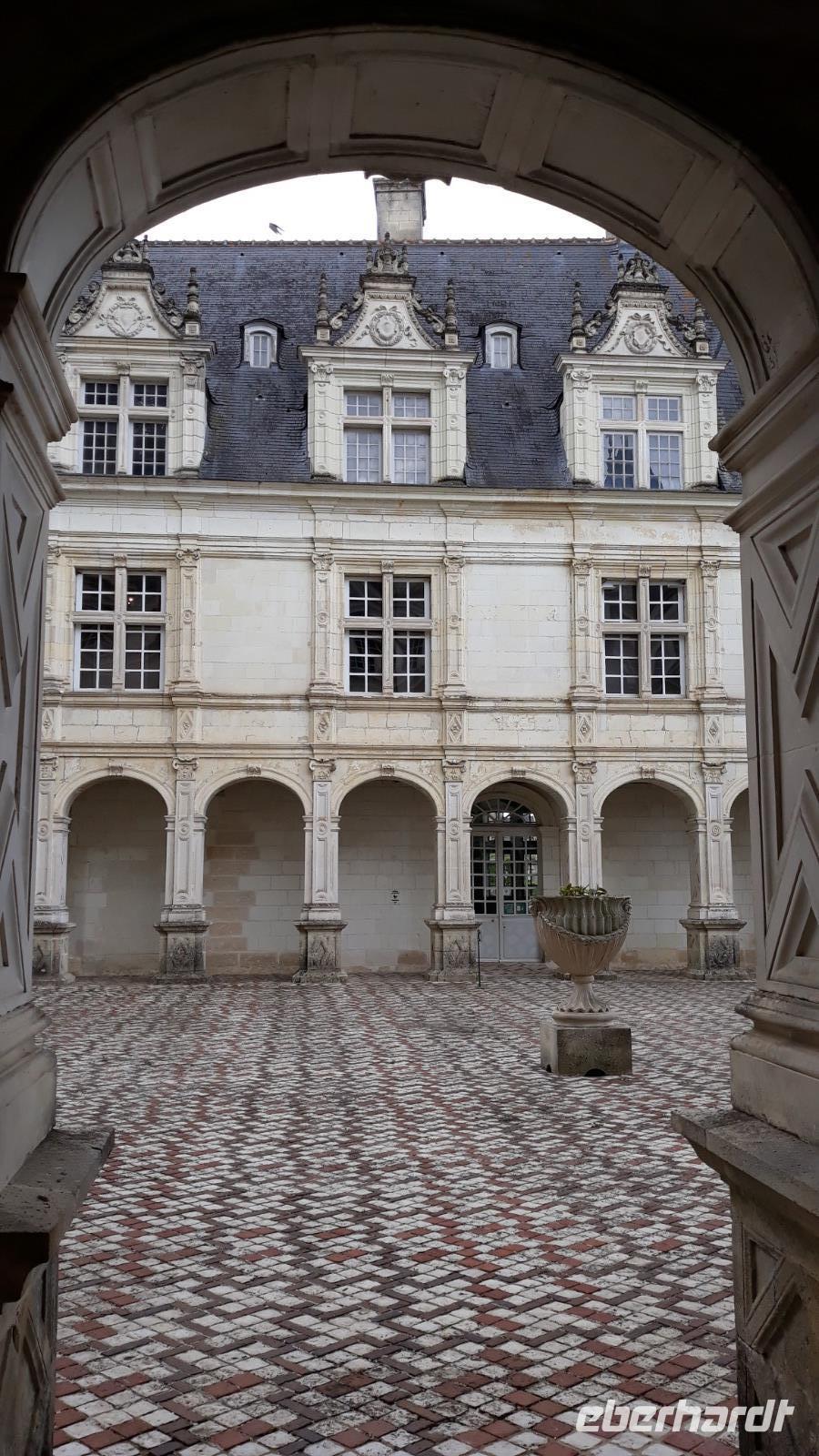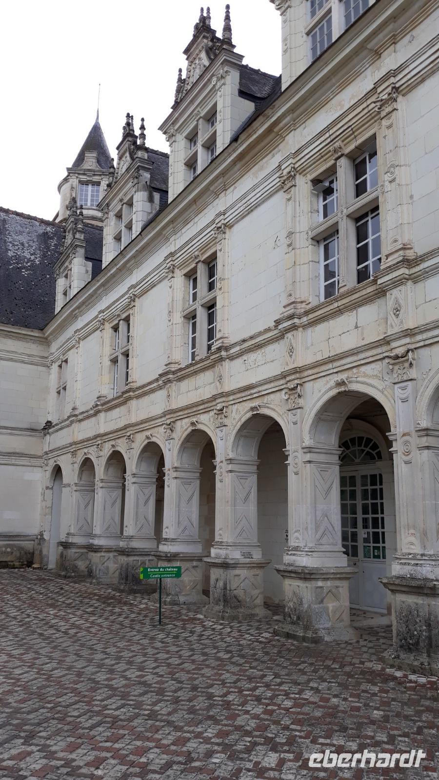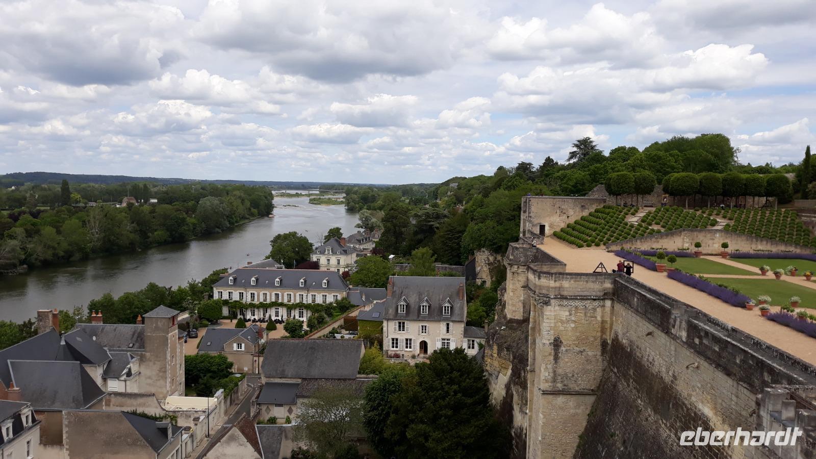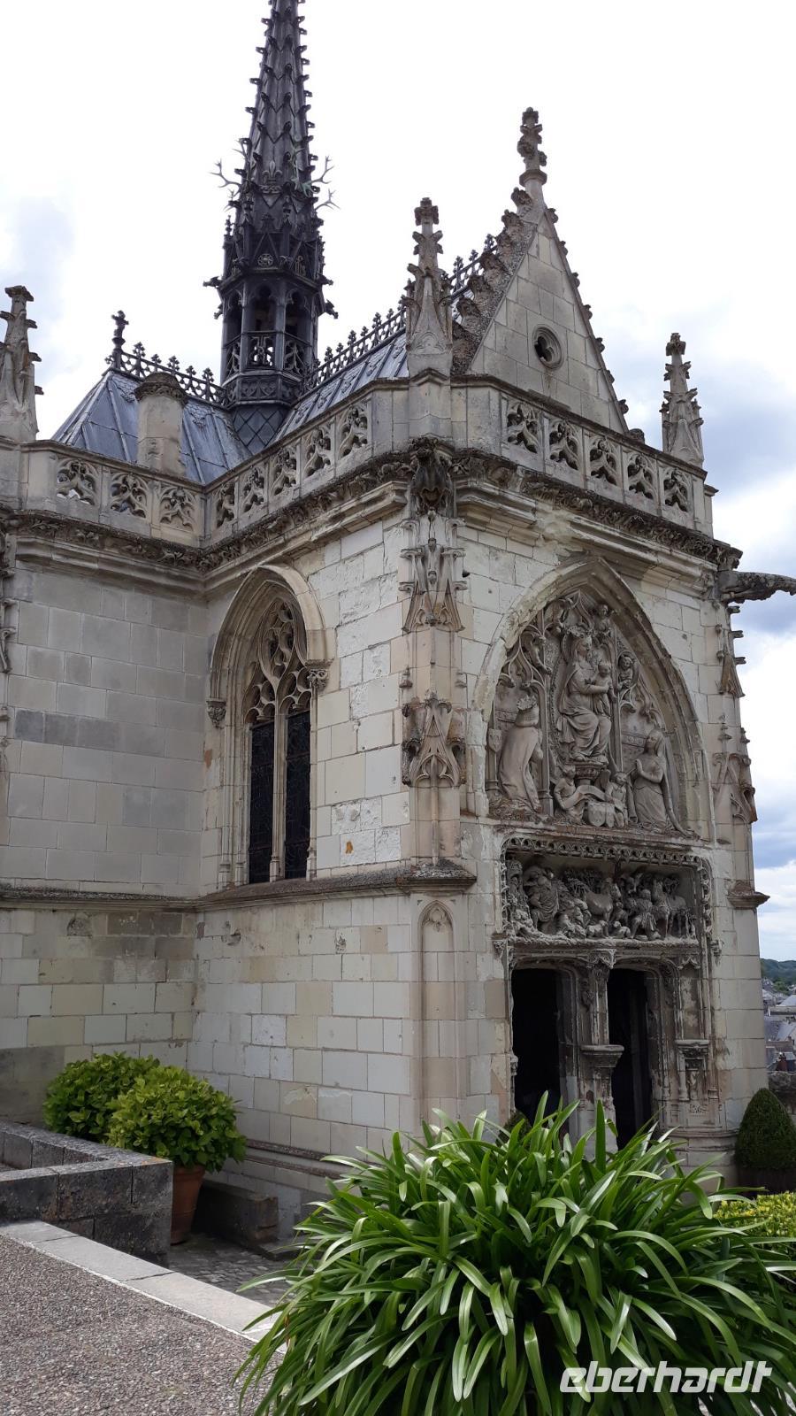 Der Stadtrundgang am nächsten Morgen begann mit strahlendem Sonnenschein und einem Gang über den zufällig stattfindenden Blumenmarkt. Wir wurden mit einer zahlreichen Informationen zur Stadtgeschichte, der Architektur und dem Leben hier in Tours, Hauptstadt der Region, versorgt. Von der ehemaligen Arbeiterstadt mit den großen Fabriken und Industrieanlagen (u.a. Michelin) ist wenig geblieben und die Innenstadt mit seiner Kathedrale, den historischen Häusern und den Boulevards ist durchaus einen Besuch wert. Im Anschluss fuhren wir in das schöne, kleine Städtchen Amboise mit netten Straßencafés und Läden. Zunächst spazierten wir durch die schmalen Gassen hinauf zum Schloss, welches wir durch die detaillierten Schilderungen von Michael kennenlernten. Besonders beeindruckte die aus Tuffstein errichtete kleine Schlosskapelle mit ihren Verzierungen und den für einen Kirchenraum ungewöhnlichen beiden Kaminen. Dass sich irgendwo unter uns im Turm auch die Gebeine Leonardo da Vincis befinden sollen, berührte durchaus. Hier hatte er seine letzten Lebensjahre verbracht und war vor 500 Jahren im hiesigen Schloss verstorben. Im nahegelegene Clos-Lucé, einem kleineren Herrensitz, welchen der König ihm nebst einer Apanage zur Verfügung gestellt hatte. Die berühmte Mona Lisa, die er aus Italien hierher mitgebracht hatte, befindet sich heute im Staatsbesitz im Louvre, denn das weltbekannte Werk hatte er u.a. dem König vermacht.Für diejenigen, die den Garten mit den Nachbauten einiger seiner technischen Entwicklungen und sein Wohnhaus sehen wollten, gab es ausreichend Zeit bevor es Zeit für die Abfahrt zu einem Weinkeller war. Dieser ist tief in den Felsen gehauen und lud uns zum Abendessen ein - typisches Winzeressen mit Rilletes, gut gewürzten weißen Bohnen, Würstchen und knusprigem Bauchfleisch, Käse, Apfeltarte und Kaffee.