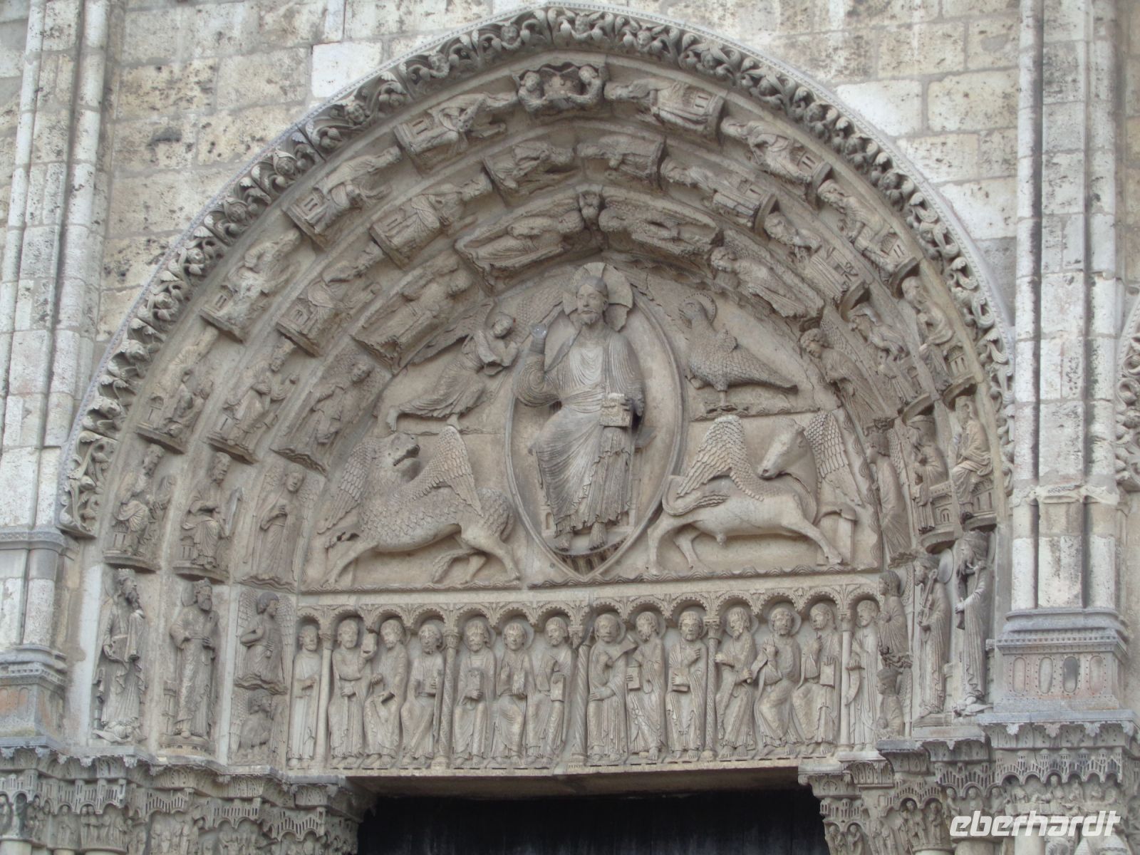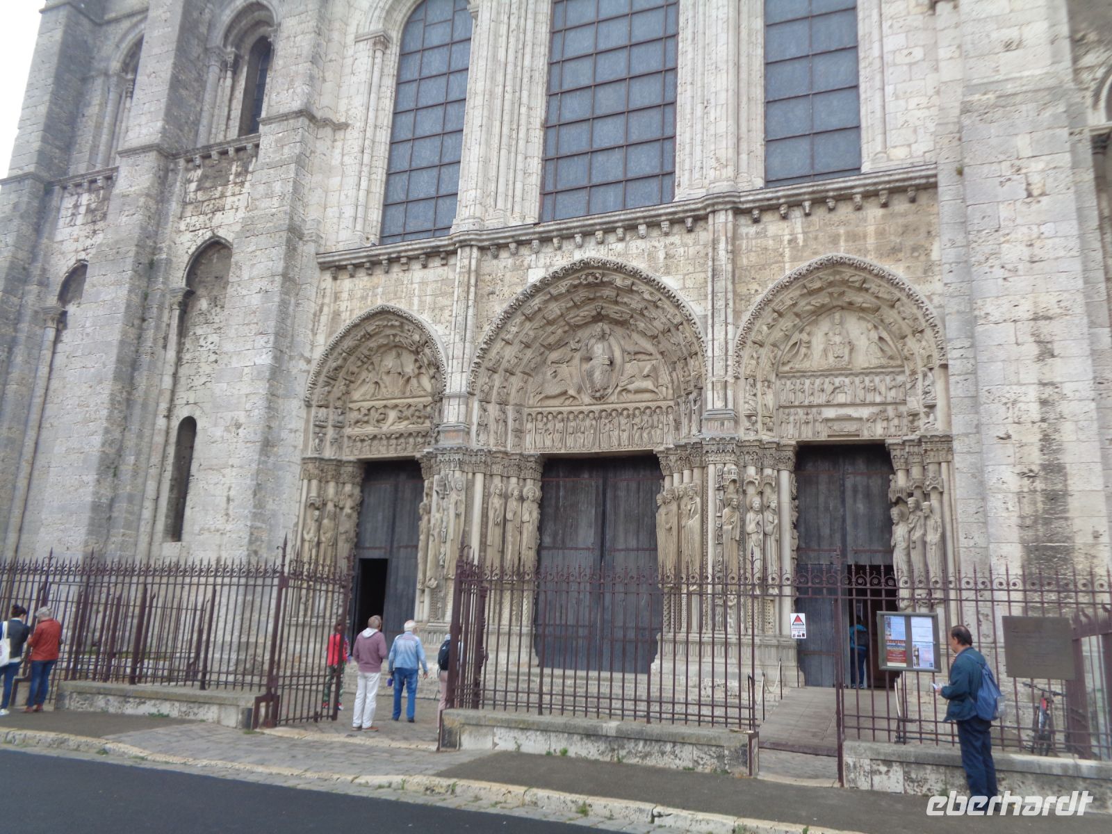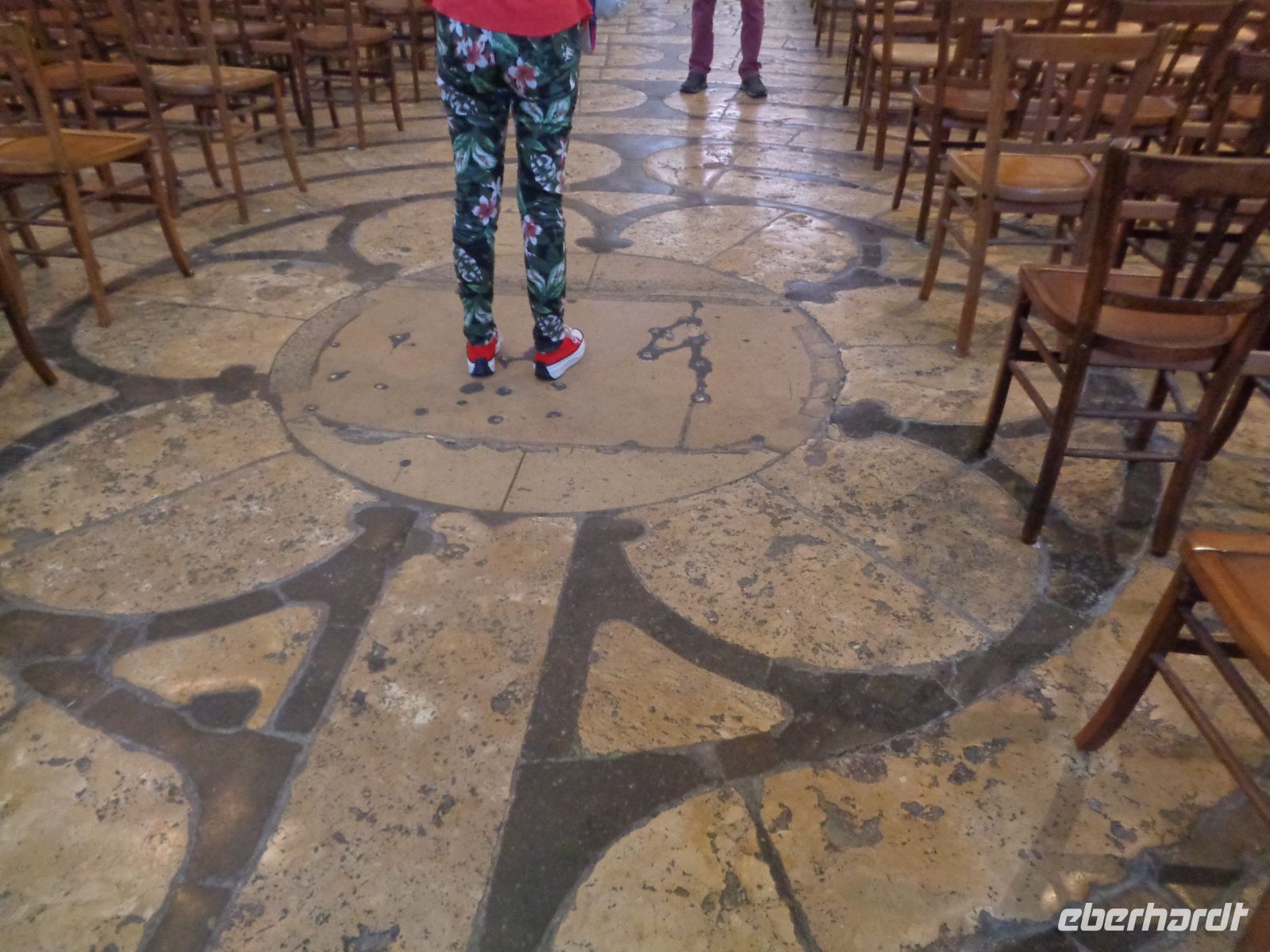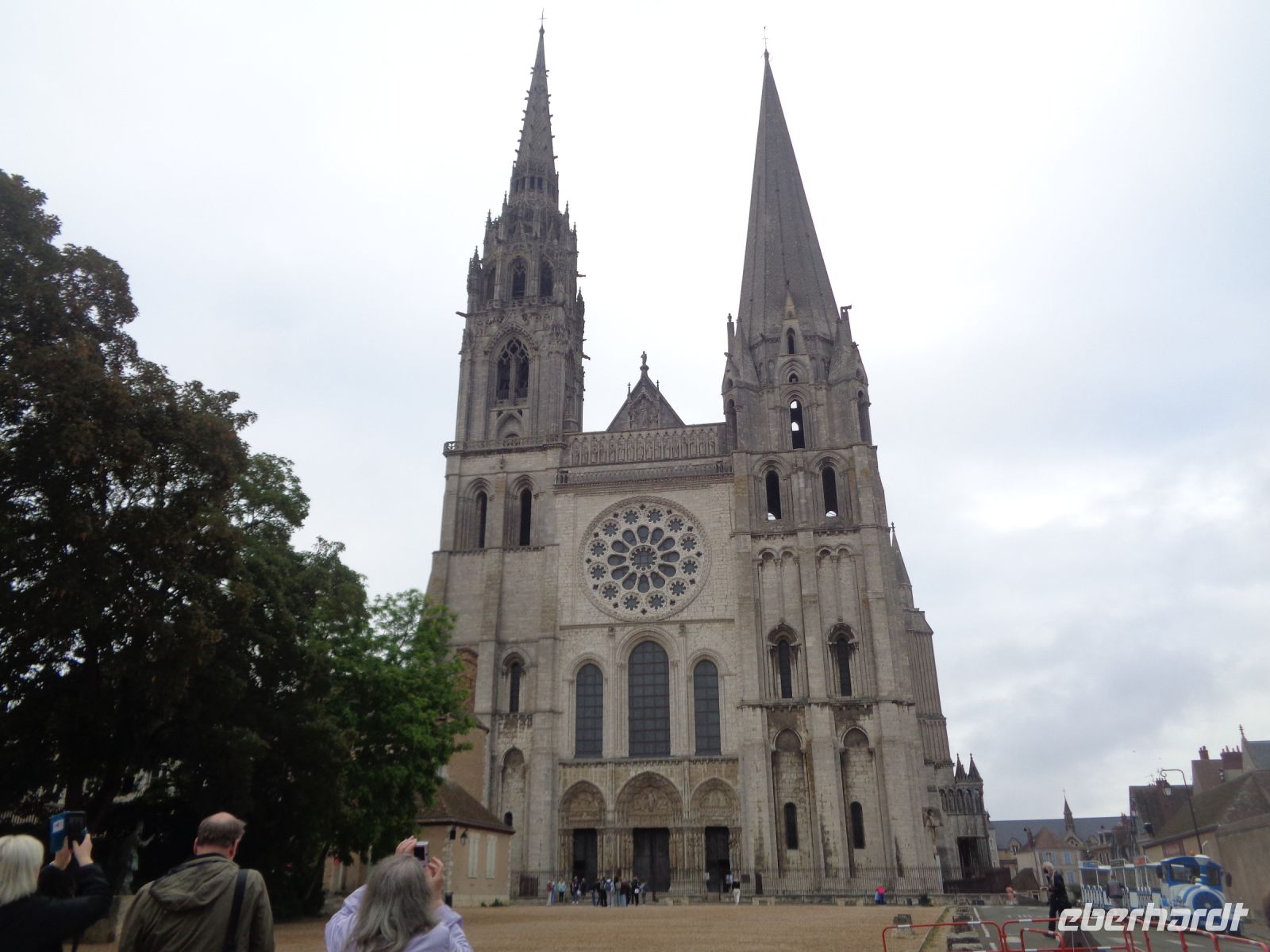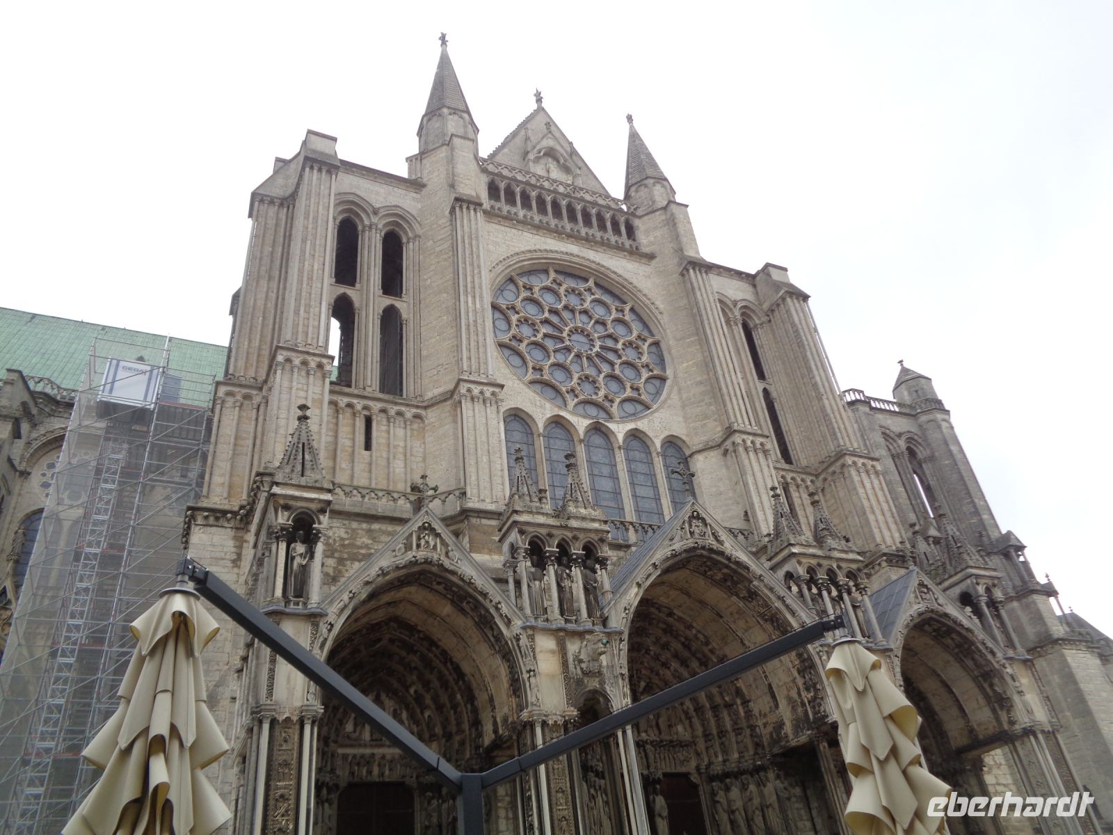 Nach unserem reichhaltigen Frühstück begeben wir uns auf unsere Weiterreise nach Chartres. Die nächste gewaltige Kathedrale wartet auf uns. Nach dem Brand der romanischen Vorgängerkirche wurde an gleicher Stelle 1194 sofort mit dem Neubau begonnen. 1260 wurde sie geweiht und Sitz des Erzbischofs. Wegen der Reliquie, des Gewandes der Jungfrau Maria, das diese bei der Geburt von Jesus Christus getragen haben soll, wurde Chartres Zentrum der Marienverehrung in Europa, zumal das Sancta Chamisia bei einem Brand nahezu unversehrt blieb. Auf dem Labyrinth stehen viele Stühle für den Gottesdienst, aber wir haben es entdeckt. Heute haben wir Michael Schramm, unseren Frankreich-Spezialisten, an unserer Seite, der uns bis zum Ende der Schlösser-Reise begleiten wird. Er vermittelt uns alles Wissenswerte über diese Kathedrale.