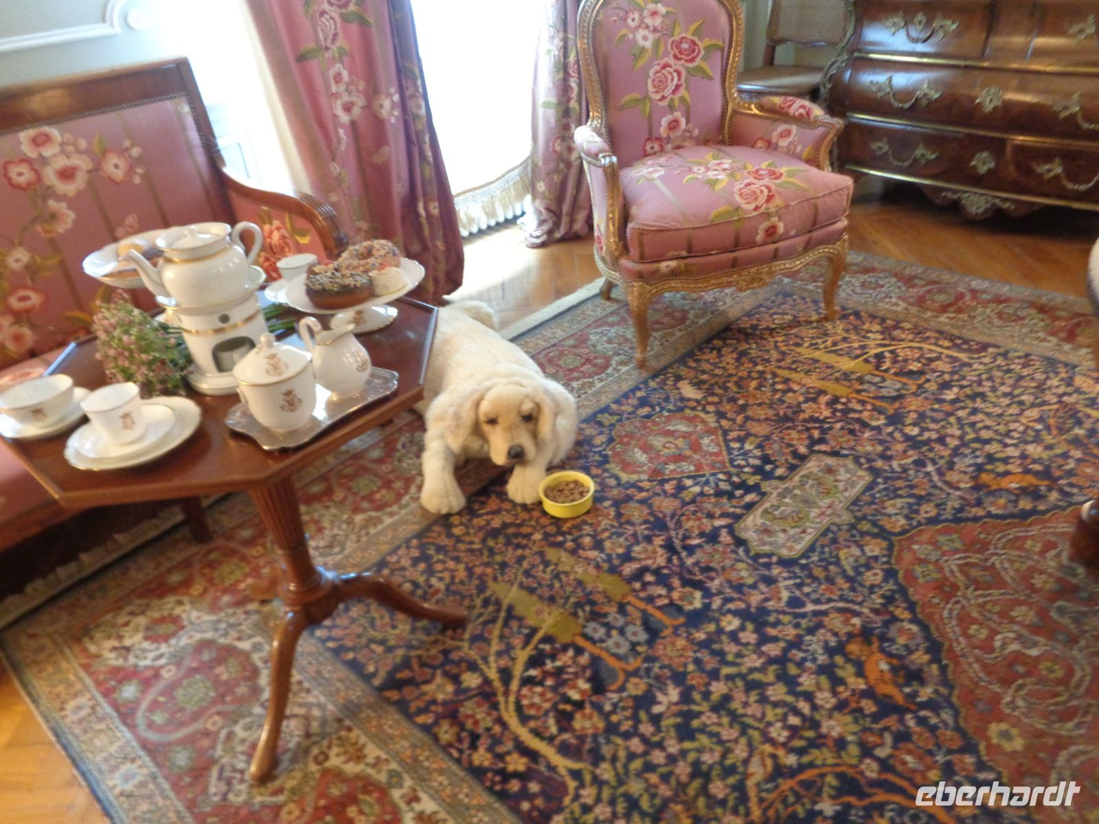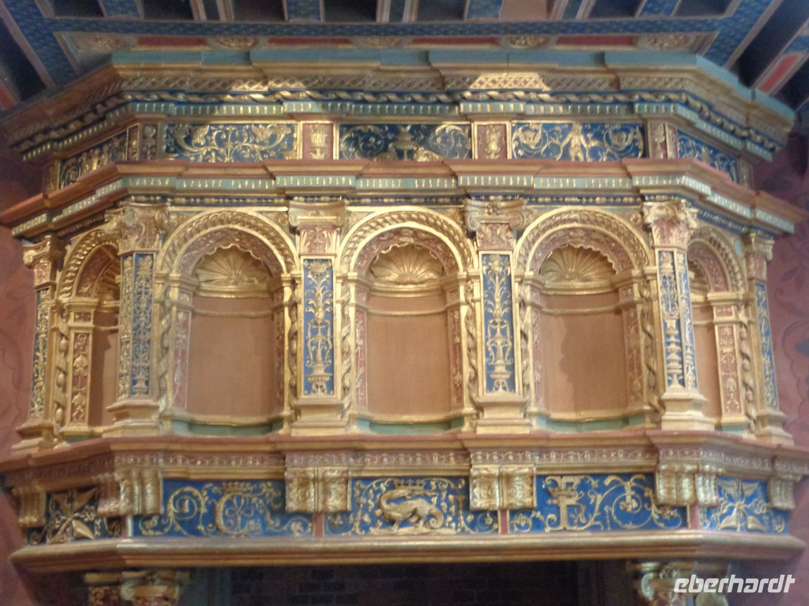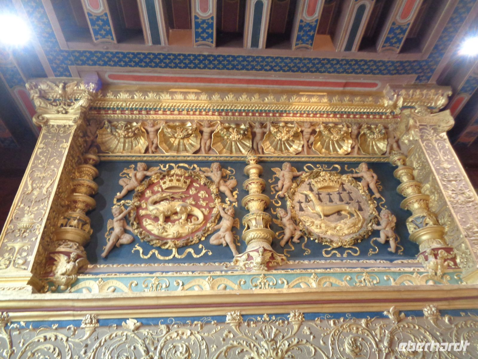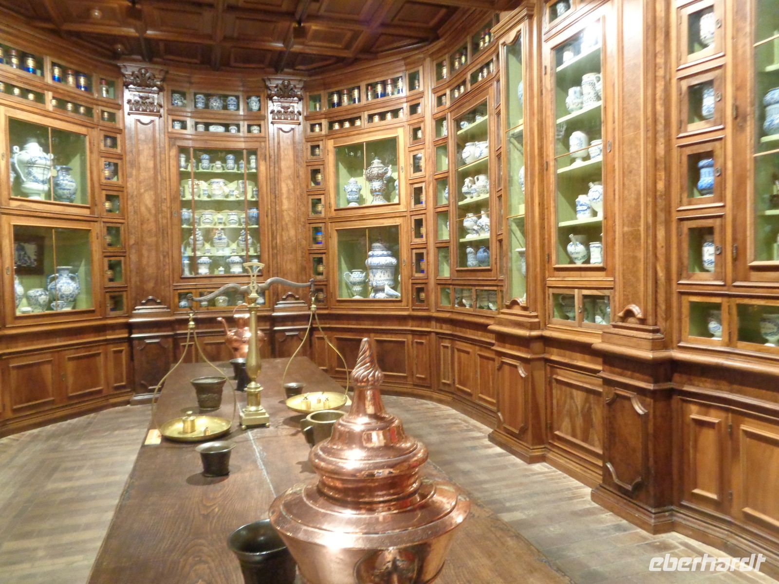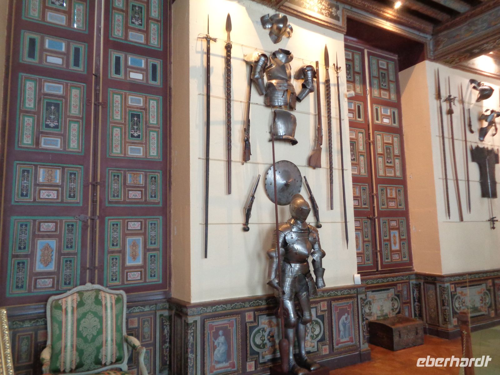 Wir bewundern die sehr gut erhaltene Innenausstattung aus dem 17. Jhd. und die wohnlich und liebevoll eingerichteten Räume ebenso wie die Rüstungen und Jagdwaffen. Danach spazieren wir vorbei an der Orangerie durch den Park bis zu den Hundezwingern und Gärten.