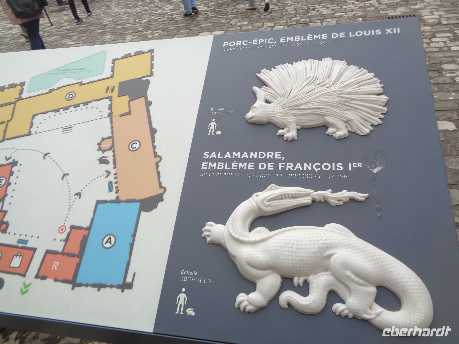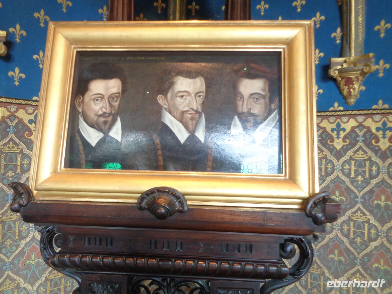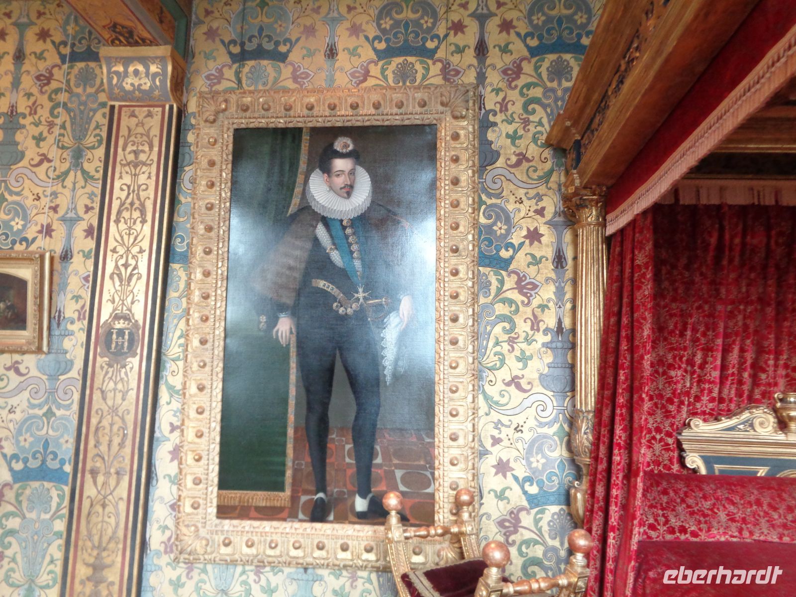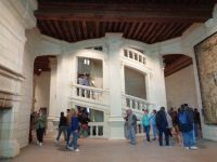 Weiter geht es vorbei an Orléans weiter nach Blois. Vor dem Schloss warten bereits 2 Kutschen auf uns, mit denen es über die Brücke über die romantische Loire geht, die wenig Wasser führt, und wieder zurück durch die Altstadt zum Schlossplatz. Das Schloss von Blois mit seinen 4 Fassaden erinnert an 4 verschiedene Epochen. 7 Könige und 10 Königinnen lebten hier, wie Franz I., Ludwig XII. und Katharina von Medici mit ihrem mörderischen Sohn Heinrich III. Der ließ hier den Herzog von Guise und dessen Bruder, den Kardinal von Lothringen, ermorden und wurde später selbst Opfer eines Mordes. Im 17. Jahrhundert erhielt der Bruder von Ludwig XIII., Gaston von Orléans, einen Flügel des Schlosses, den er modernisierte.