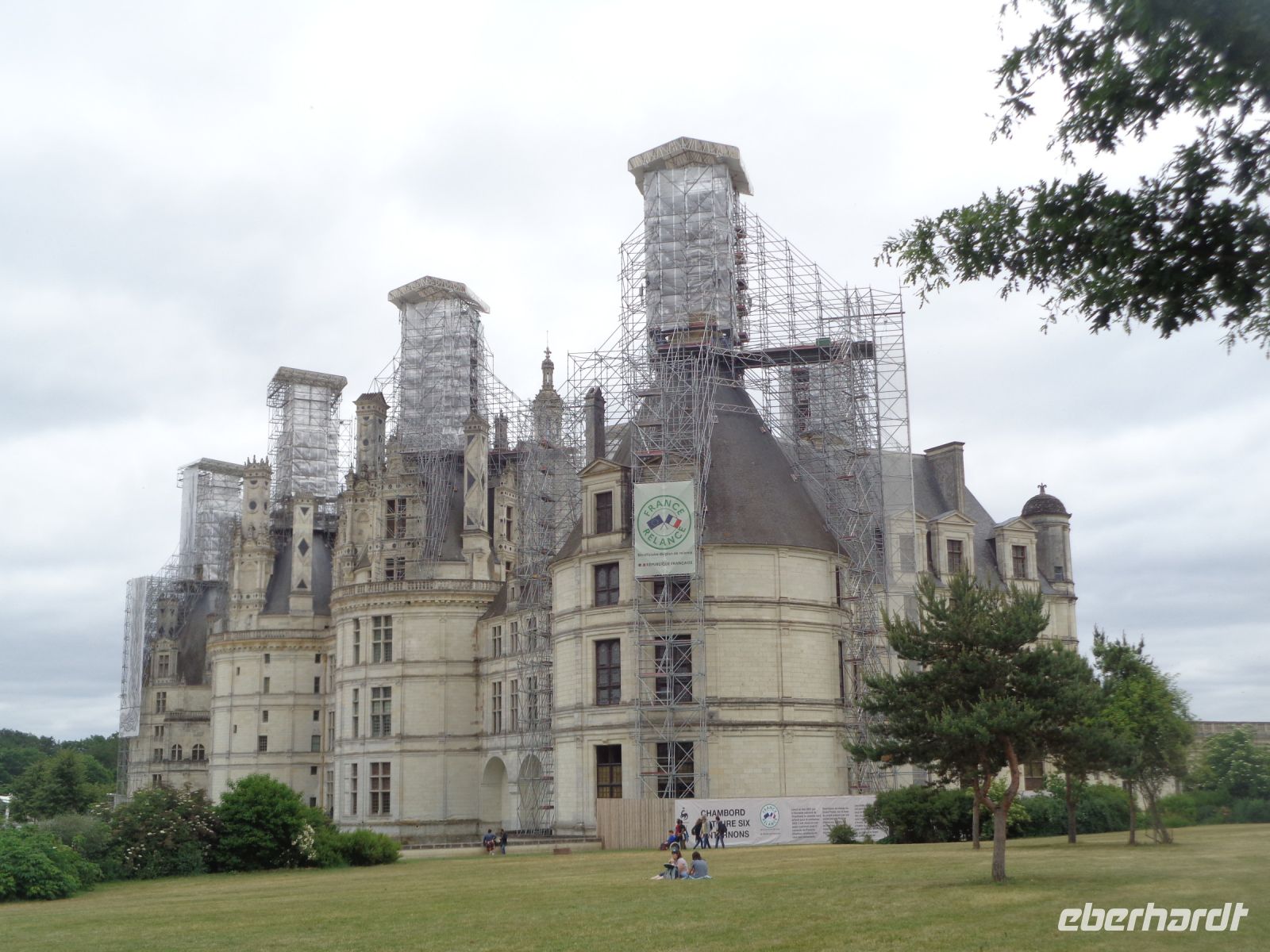 Dieses Schloss ist das großte der Loire-Schlösser. Franz I. widmete sich nach dem Tode Leonardo da Vinci’s im Jahre 1519 dem Neubau in einem großen Jagdgebiet. Der Bau sollte ein meisterhaftes Jagd- und Prunkschloss werden, in dem sich Franz I. gern als Kaiser des Heiligen Römischen Reiches gesehen hätte. Das klappte nicht, aber Kaiser Karl V. war einmal im Schloss zu Gast und rühmte die künstlerische Gestaltung.