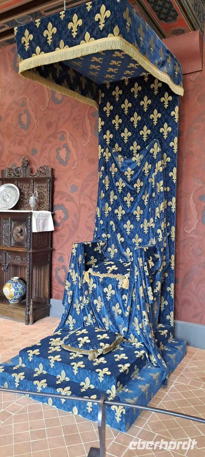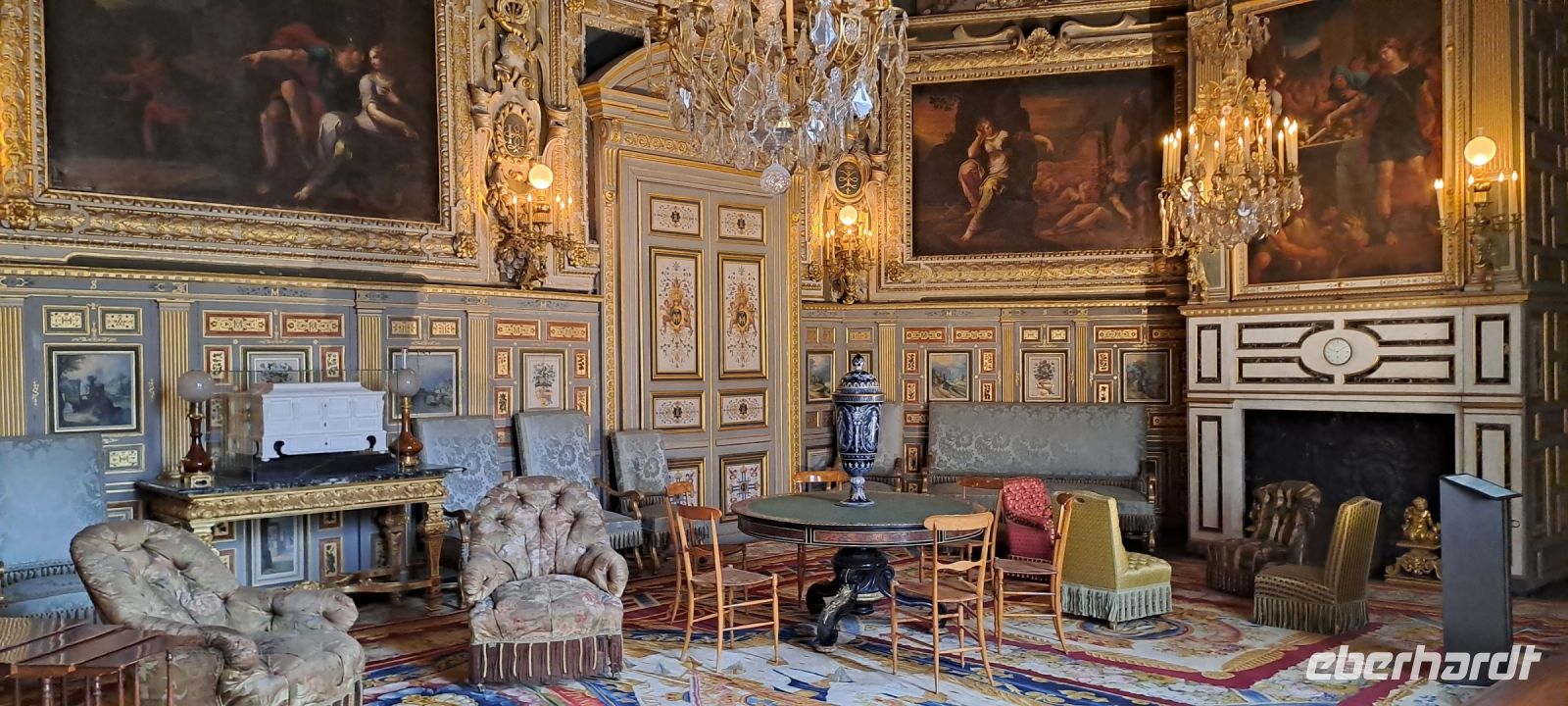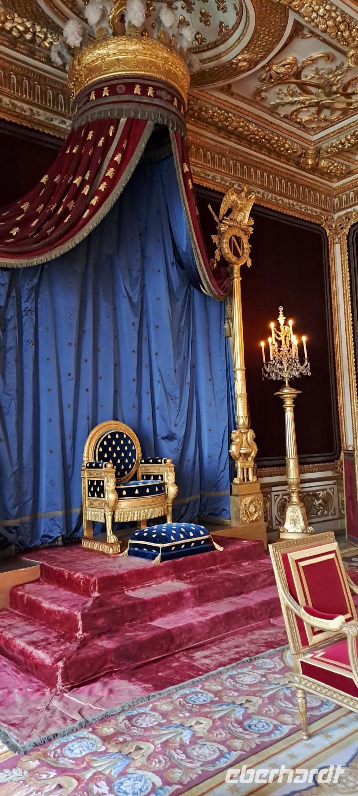 Der heutige Tag versprach viel Sonne, aber auch sehr hohe Temperaturen. Wir fuhren zunächst zum Schloss Cheverny, eines der weniger besuchten Schlösser. Dieses Schloss ist vor allem aufgrund seiner Jagdhunde bekannt. Heidi zeigte uns wieder die Schätze der Innenausstattung. So bewunderten wir das prähistorische Geweih eines vermutlich riesigen sibirischen Elchs und besuchten anschließend die liebevoll ausgestatteten Privatgemächer. Besonders beeindruckt hat uns der reich bestückte Waffensaal sowie das pompöse Gemach des Königs mit der kostbaren Kassettendecke. Nach dem weiteren Rundgang im Obergeschoss konnten wir das Schloss und den Garten noch individuell besichtigen. Auch die liebevoll gestalteten Außenanlagen mit Orangerie- Zier- und Gemüsegarten gefielen uns sehr. Ein Besuch beim Hundezwinger durfte natürlich nicht fehlen. Noch immer leben ca. 100 französische Jagdhunde auf dem Schloss. Heute lagen sie eher faul in der Sonne. Anschließend ging es für uns mit dem Bus weiter nach Chambord. Welch atemberaubende Pracht. Ein Meisterwerk der Renaissance wartete auf uns. Das zu Ehren von Franz I. errichtete Schloss beeindruckt mit seiner Größe. Allein der Zaun, welcher das Schloss umgibt, ist in etwa so lang wie die Stadtautobahn von Paris. Dementsprechend beliebt ist das Schloss bei den Besuchern, die in Scharen strömen, sich in dem großen Schloss aber gut verteilen. Wir testeten gemeinsam die Doppelwendeltreppe und sahen viele weitere Zimmer, unter anderem das Schlafzimmer der Königin, das Paradezimmer und viele weitere großartig ausgestattete Zimmer. Von den Terrassen aus hatten wir wunderbare Rundum Aussichten auf die umliegenden Gärten. Anschließend blieb noch viel Zeit, um im Park zu flanieren. Das schönste Panorama vom Schloss erhält man aus großzügiger Entfernung. In der großen Hitze war es heute für uns etwas anstrengend, aber es hat sich auf jeden Fall gelohnt und es blieb noch Zeit für eine kühle Erfrischung im Schatten. Zurück im gekühlten Bus konnten wir uns alle ausgiebig erholen, denn es ging weiter nach Fontainebleau. Unsere liebe Heidi, die uns in wunderbar entspannter Art alle Schlösser in dieser Woche erläutert hat, mussten wir nun verabschieden. Sie fuhr mit dem Zug zurück in Ihre Heimat Paris. Wir erreichten unser ländliches Hotel in Fontainebleau später in den Nachmittagsstunden und bezogen unsere klimatisierten Zimmer. Im Hotel gab es einen Pool, in dem sich noch einige Kinder austobten. Unser Abendessen nahmen wir auf der idyllischen Terrasse des Hotels, mitten im Grünen, ein. Wir stießen ein letztes Mal als komplette Gruppe auf den wunderschönen Tag an, denn morgen sollten uns die drei Fluggäste bereits in Richtung Heimat verlassen.