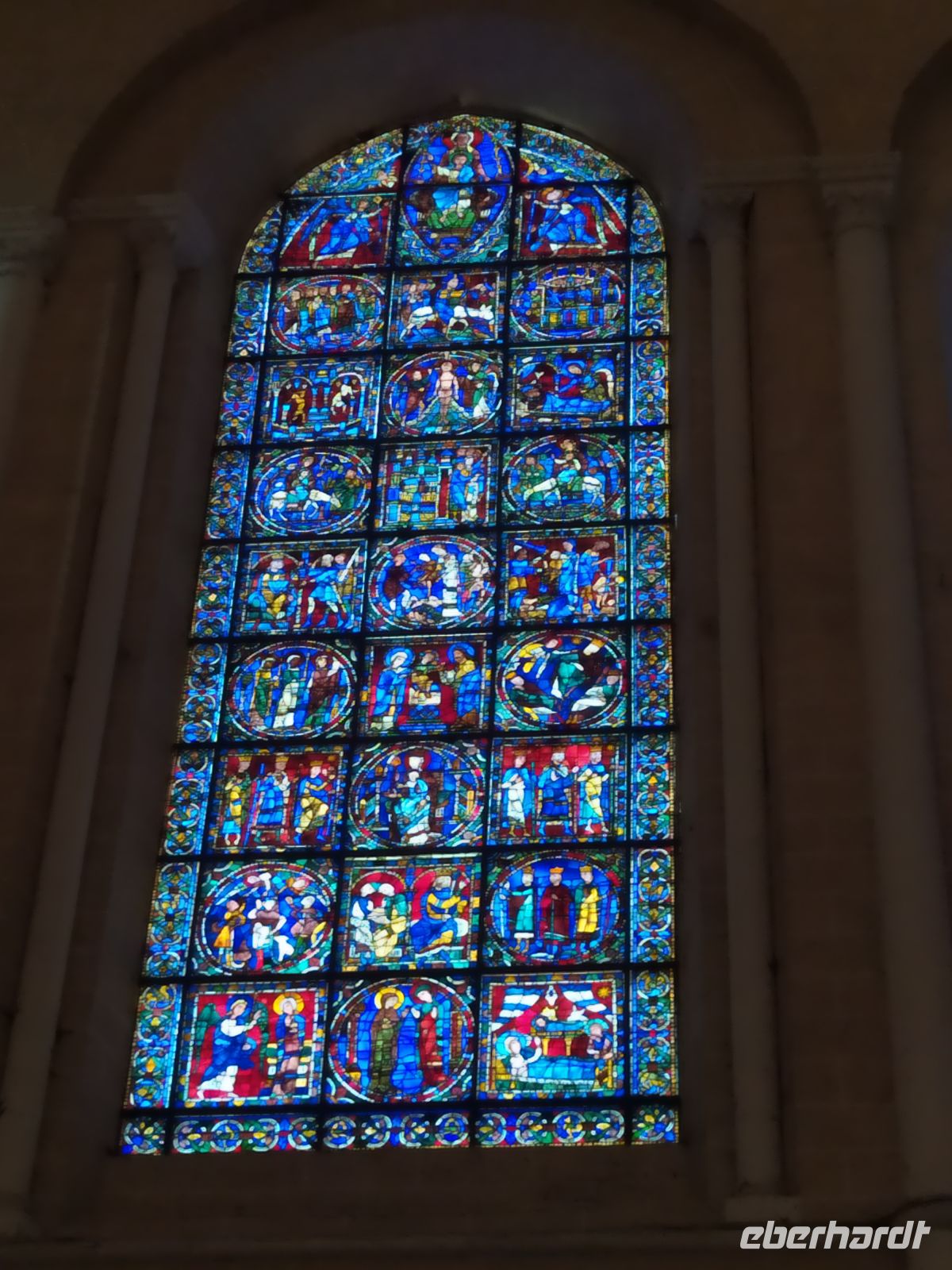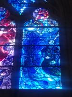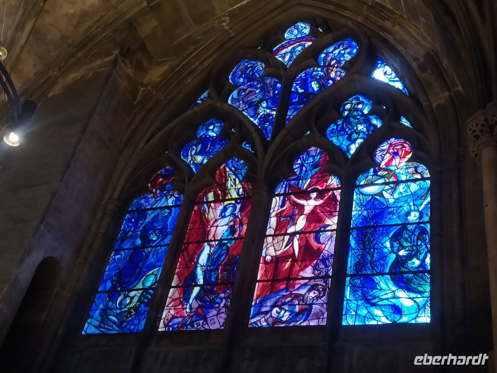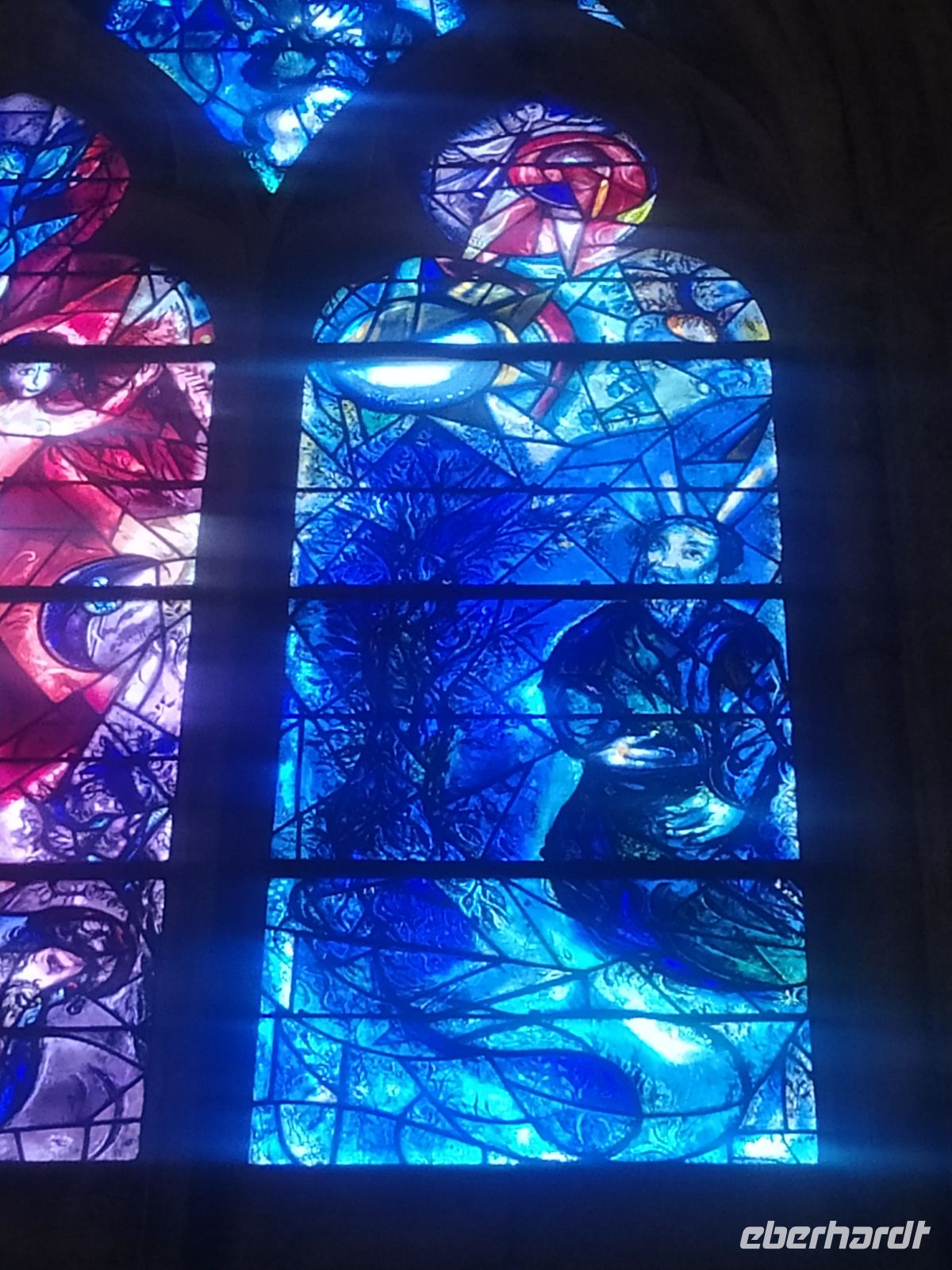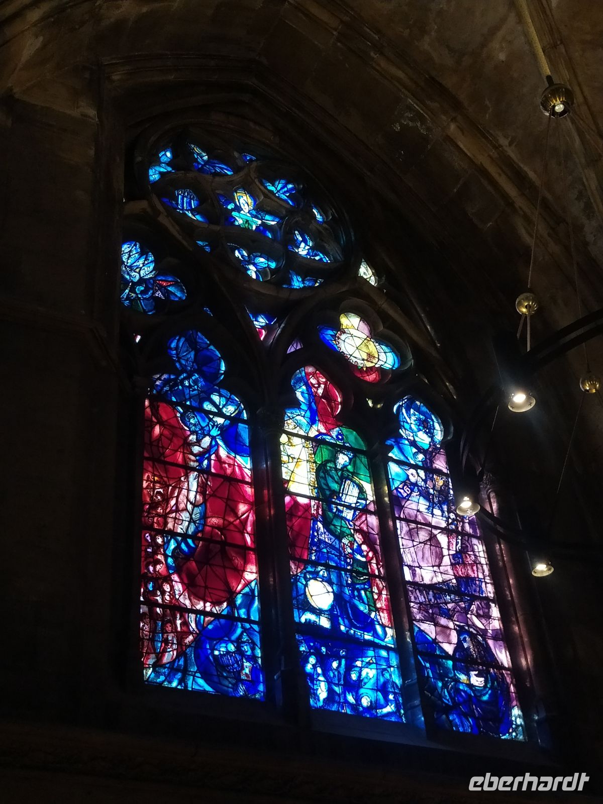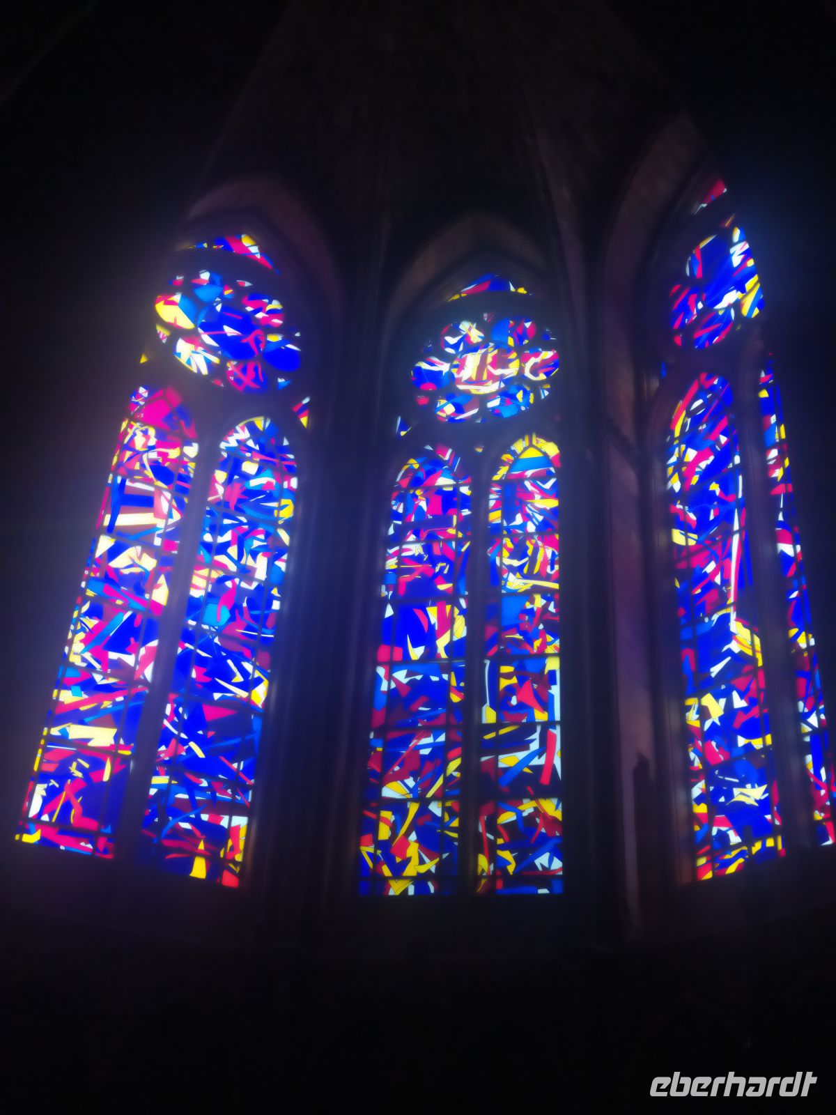 Im Inneren erwartete uns ein wahres Farbenspektakel: Das Sonnenlicht tauchte die Kathedrale durch ihre kunstvoll erhaltenen mittelalterlichen Glasfenster in ein faszinierendes Spiel aus leuchtendem Rot, mystischem Violett und dem legendären „Chartres-Blau“ – ein magischer Moment, der viele von uns tief berührte. Bei einem kleinen Rundgang entdeckten wir die Geheimnisse dieses besonderen Ortes, der Geschichte, Glaube und Kunst in vollendeter Harmonie vereint.