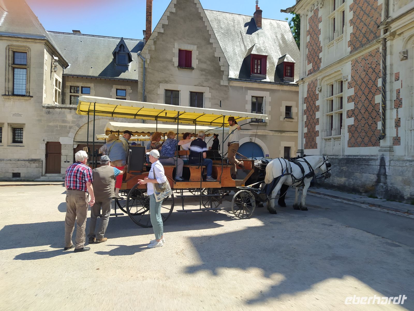 Am frühen Nachmittag ging es weiter in die geschichtsträchtige Stadt Blois, malerisch an der Loire gelegen. Eine gemütliche Kutschfahrt entlang des Flusses und vorbei am prachtvollen Renaissance-Schloss versetzte uns zurück in die Zeit der französischen Könige. Bei der anschließenden Besichtigung des Château de Blois zeigte uns Martin die eindrucksvolle Schlossfassade, in der sich Gotik, Renaissance und Klassizismus wie in einem architektonischen Geschichtsbuch vereinen. Besonders beeindruckend: der achteckige Treppenturm – ein wahrer Blickfang und Paradebeispiel für die Kunstfertigkeit der Renaissance.