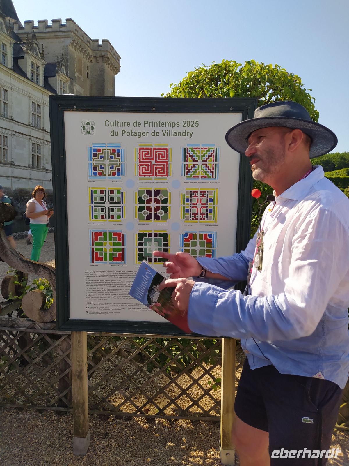 Ein Tag voller Farben, Düfte und französischer Lebensart begann mit einem echten Höhepunkt: der Besuch der prachtvollen Gärten von Schloss Villandry. Unter der kundigen Führung unseres Reiseleiters Martin tauchten wir ein in ein grünes Paradies der Renaissance. Die kunstvoll auf drei Ebenen angelegten Gartenanlagen – ein Meisterwerk italienischer Gartenbaukunst – versetzten uns in Staunen! Vom eleganten Wassergarten auf der obersten Terrasse bis hin zum farbenfrohen Ziergarten mit seinen ornamentalen Beeten – alles wirkte wie gemalt. Ein besonderes Highlight war der Küchengarten, der mit kunstvoll arrangierten Beeten aus rotem Kohl, Salat, Roter Bete und duftenden Kräutern nicht nur durch seine Vielfalt, sondern auch durch seine Kreativität begeisterte!