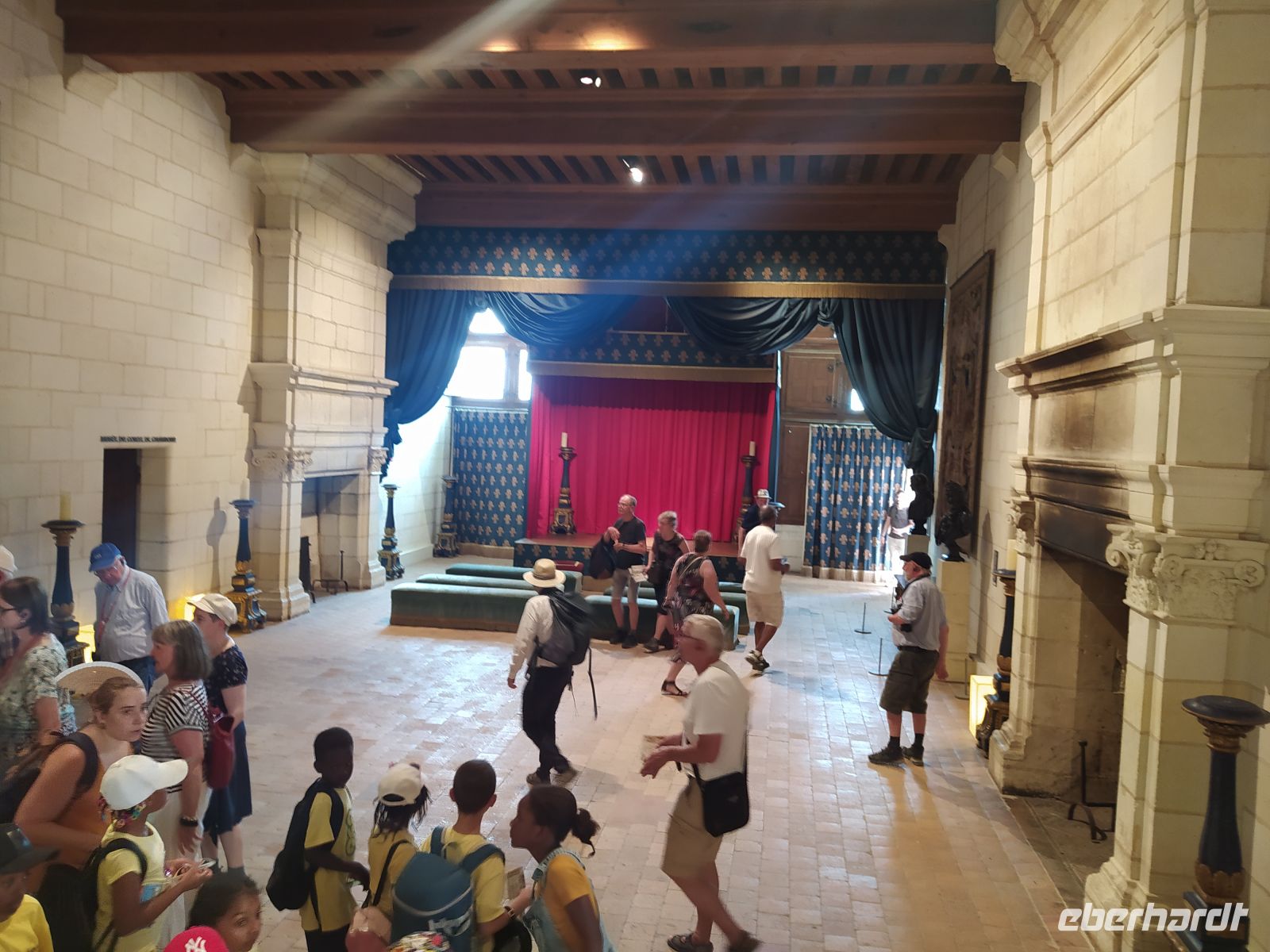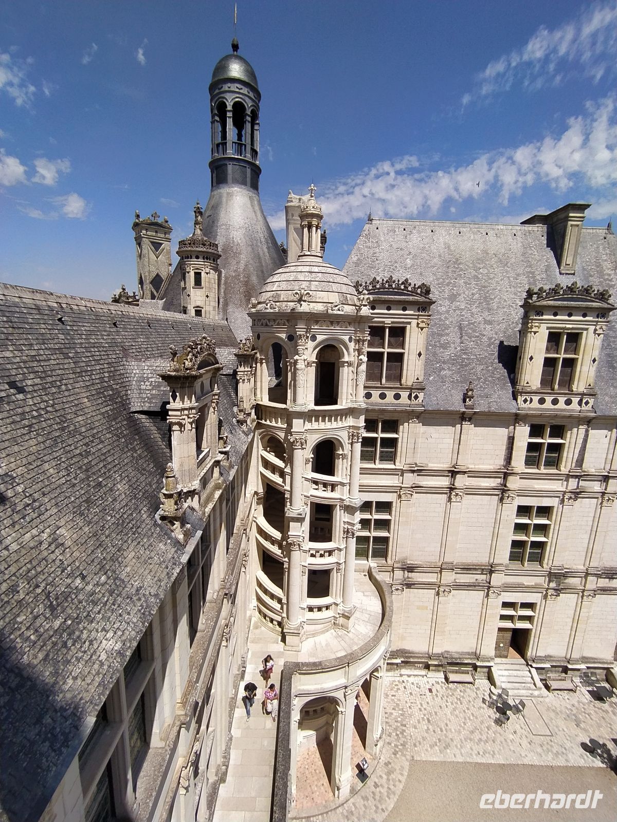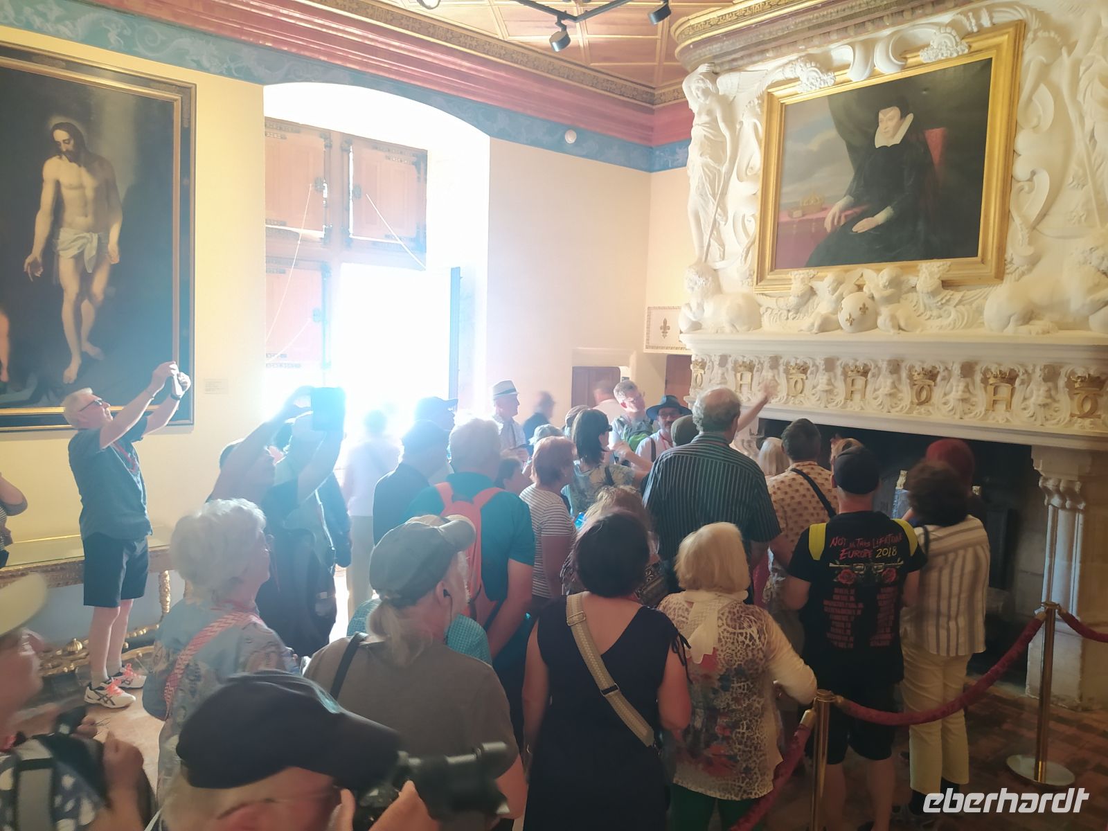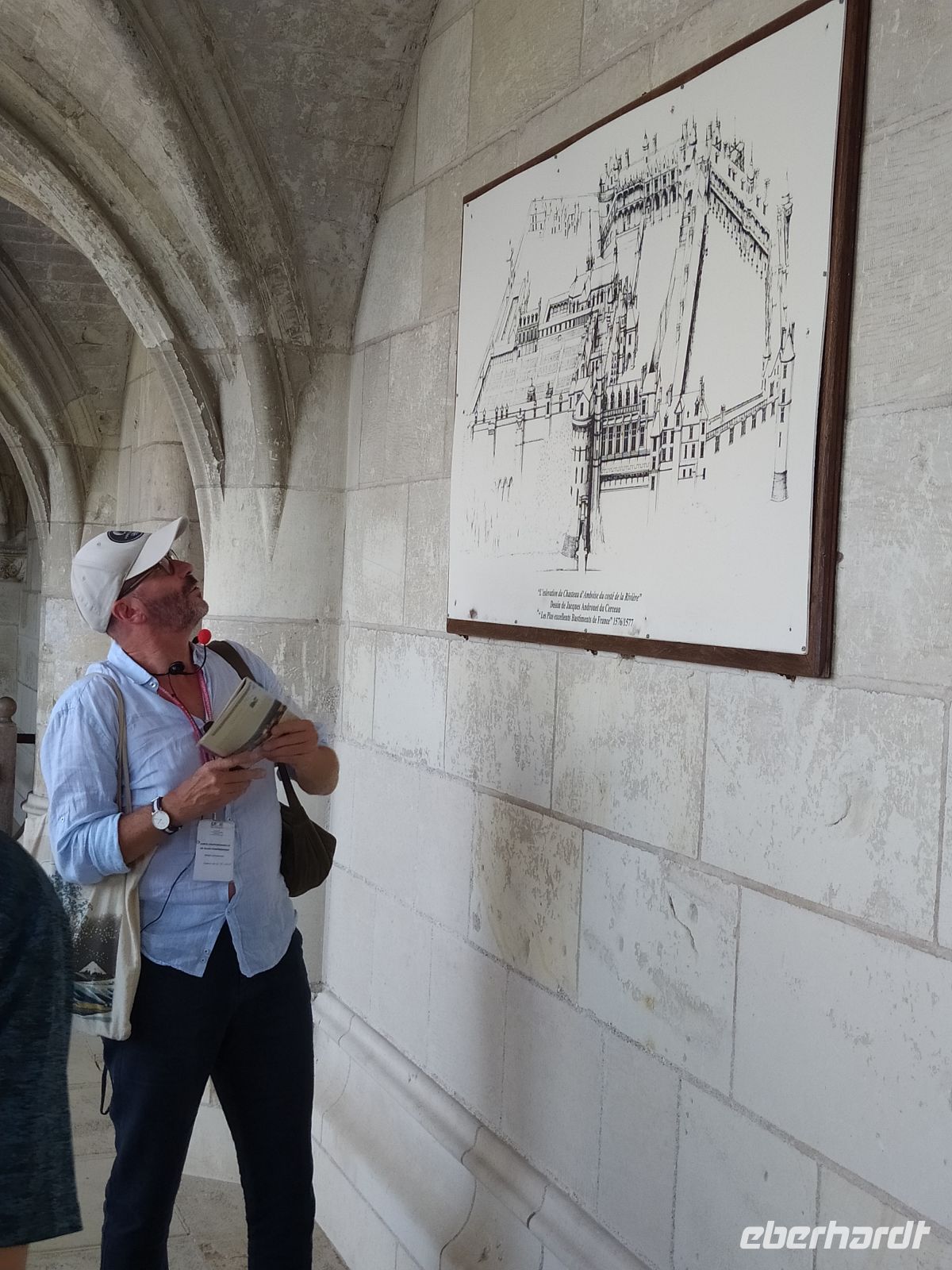 Am späten Vormittag folgte ein echtes Kronjuwel unserer Reise: Chambord – das größte und wohl imposanteste aller Loire-Schlösser. Schon von weitem beeindruckte das majestätische Bauwerk mit seinen zahllosen Türmen, Kaminen und der unvergleichlichen Dachlandschaft, die wie eine Märchenkulisse über den Baumwipfeln thront! Ursprünglich als Jagdschloss für König Franz I. errichtet, ist Chambord bis heute ein Monument königlicher Selbstdarstellung und technischer Meisterschaft. Bei der spannenden Schlossführung mit Martin betraten wir unter anderem die historischen Gemächer Ludwigs XIV. und bewunderten die weltberühmte doppelläufige Wendeltreppe, die vermutlich auf Entwürfe Leonardo da Vincis zurückgeht. Symbolik und Macht sprachen aus jedem Stein – besonders das immer wiederkehrende Wappentier, der Salamander, und das kunstvoll inszenierte „F“ für François, das sich zum Sinnbild Frankreichs selbst erhebt!