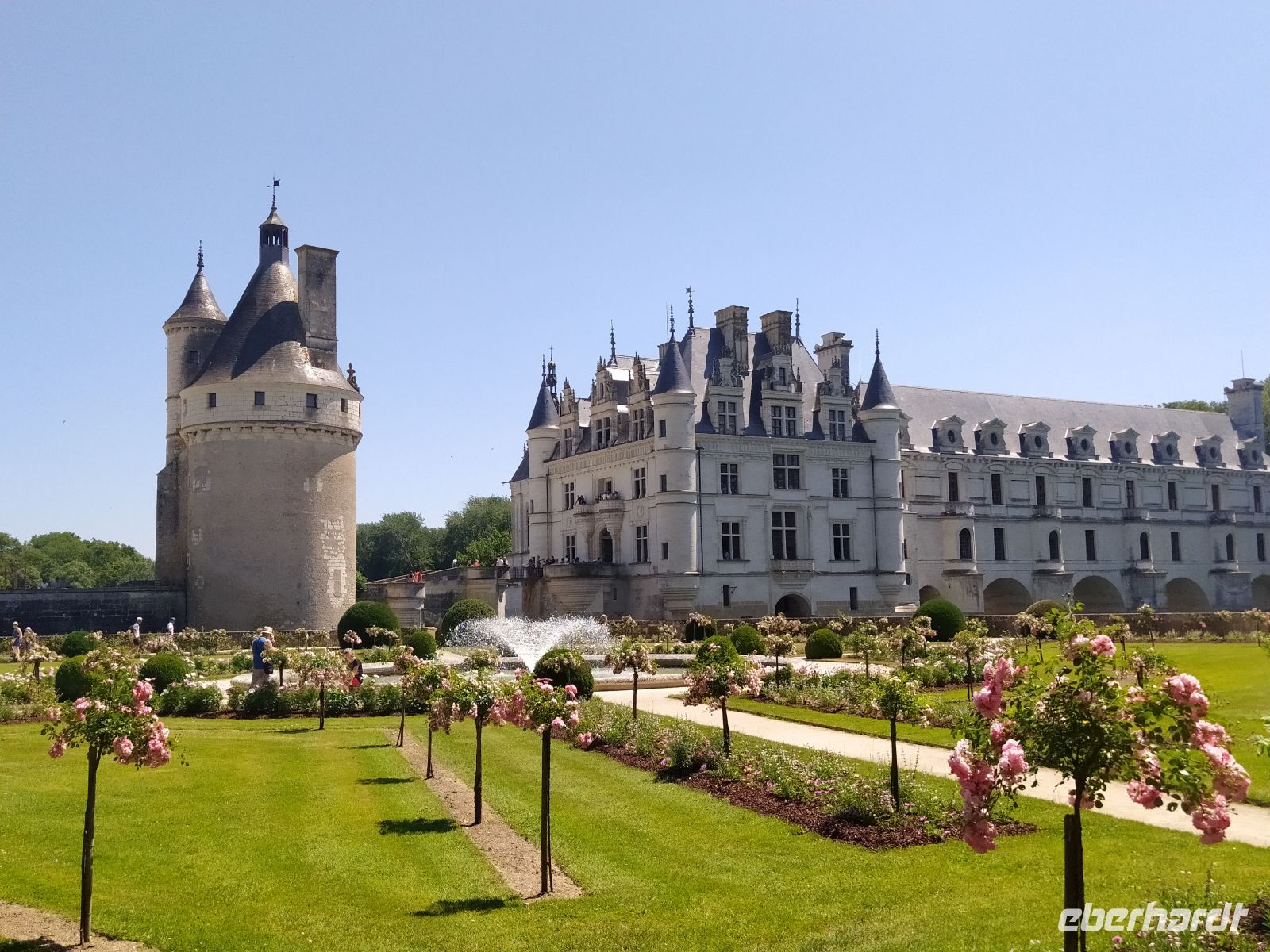 Schon aus der Ferne war der erste Anblick von Chenonceau schlicht atemberaubend: wie ein elegantes Traumbild erhebt sich das Schloss direkt über dem Fluss, getragen von einer einzigartigen, bogenförmigen Brückenkonstruktion – ein Bauwerk auf dem Wasser, das Geschichte und Poesie vereint! Kein Wunder, dass Chenonceau den Beinamen „Schloss der Damen“ trägt: es waren starke Frauen wie Diane de Poitiers, die Mätresse von König Franz I., und Königin Katharina von Medici, die dem Schloss seinen Glanz verliehen. Später verwandelte die kunstsinnige Charlotte Dupin das Anwesen im 18. Jahrhundert in einen Salon für Philosophen und Literaten.