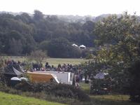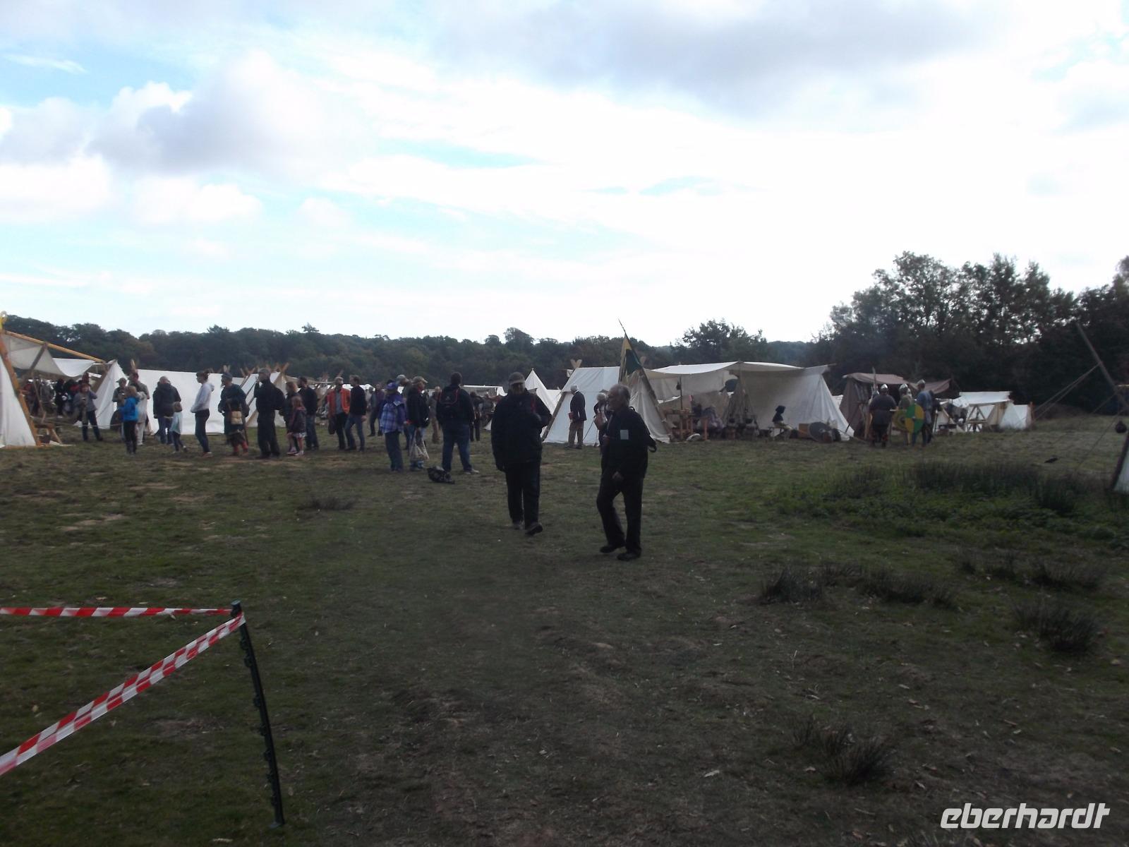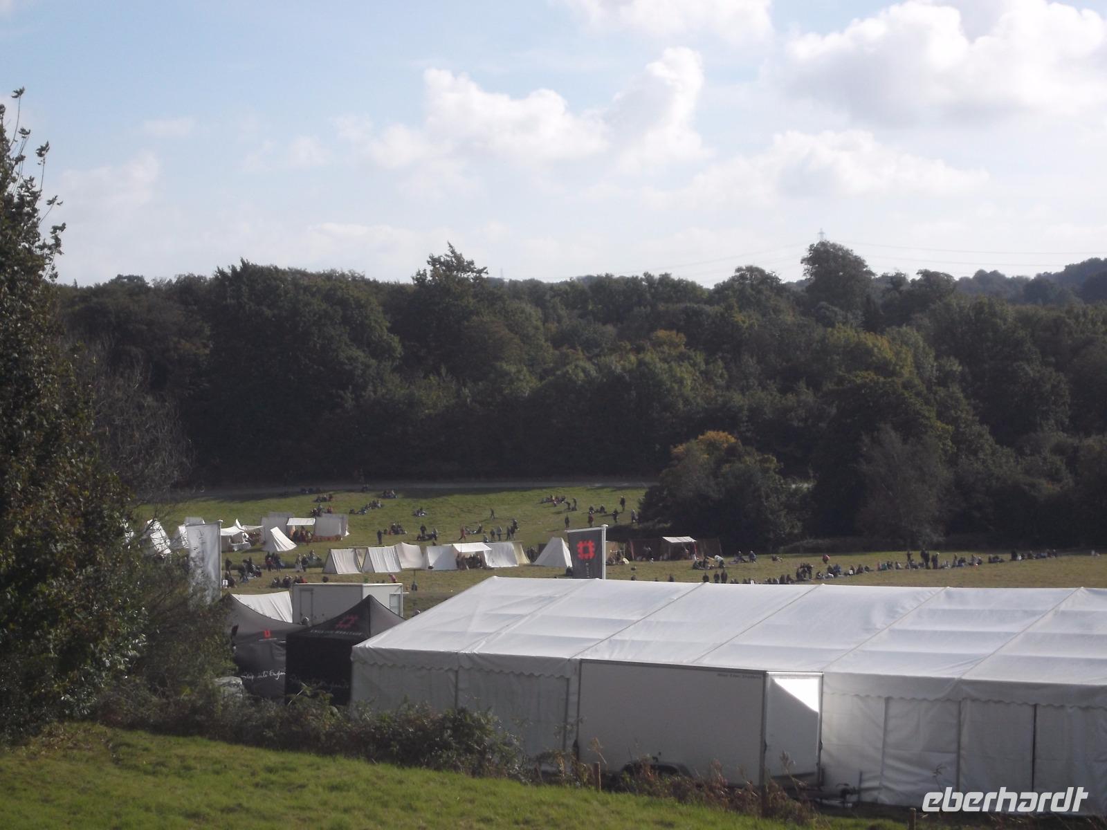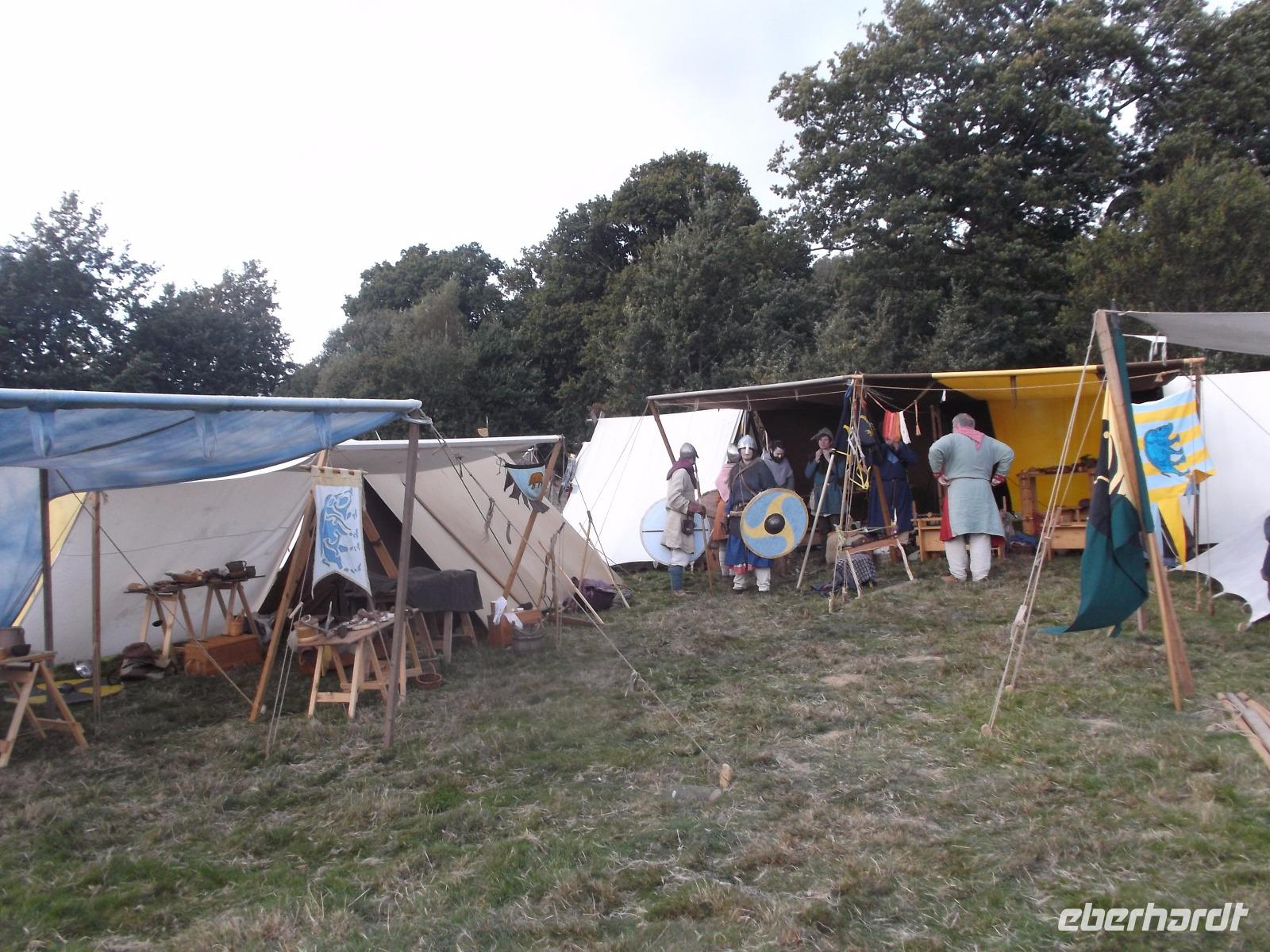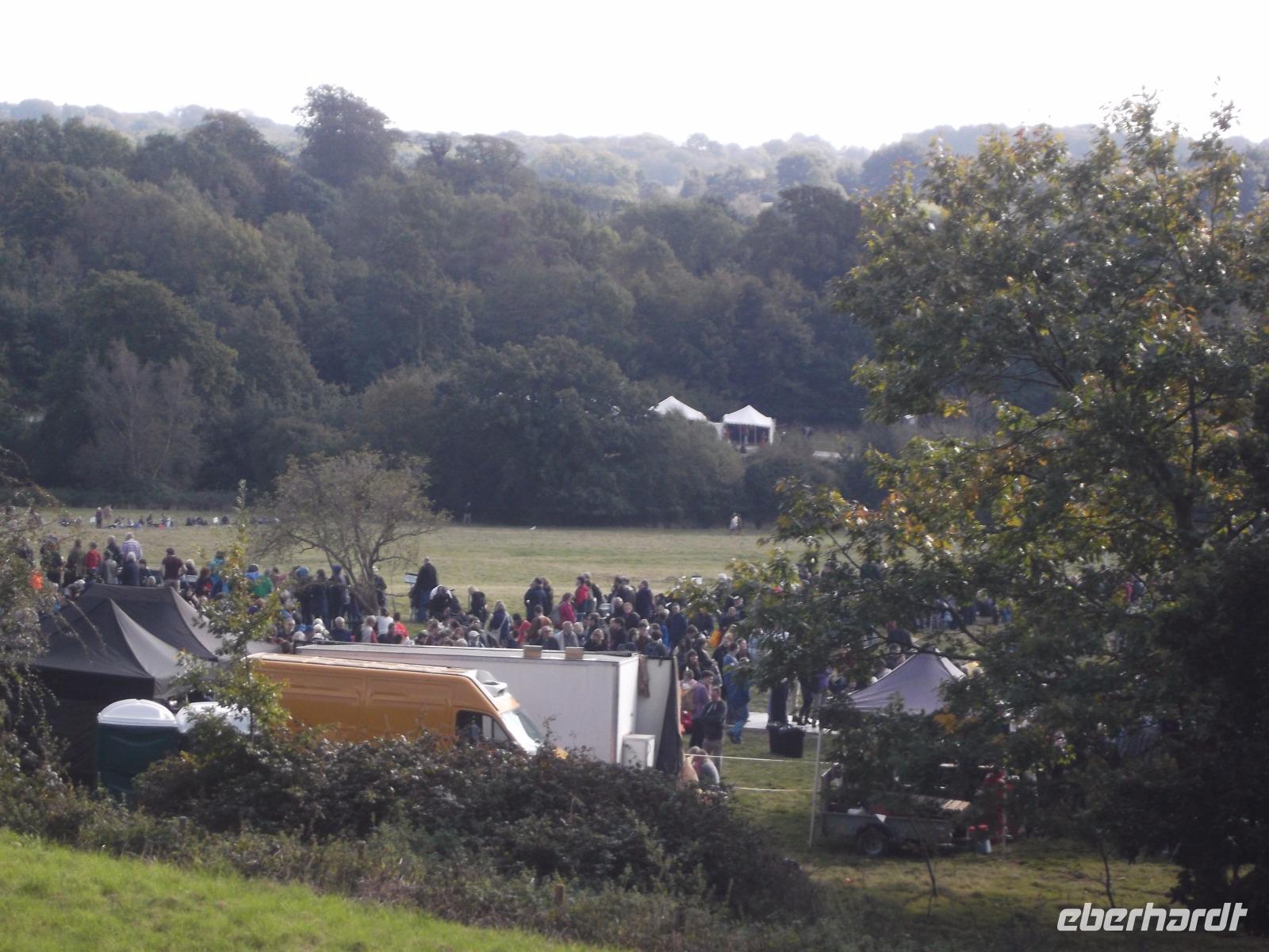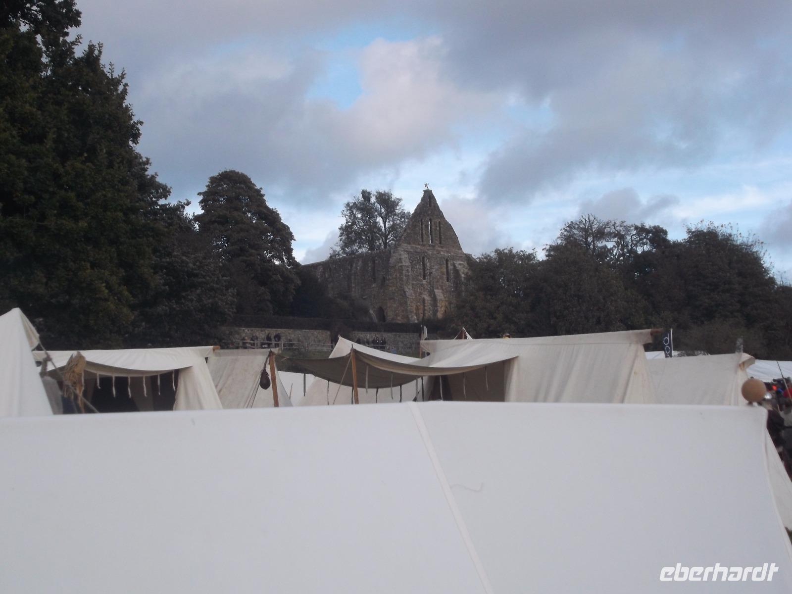 Als wir Battle, den nach dieser Schlacht benannten Ort mit seiner dominierenden Abtei, erreichten, waren bereits größere Menschenmengen und viele mittelalterlich kostümierte Leute in dem sonst beschaulichen Ort unterwegs. Gut, dass wir unsere Eintrittskarten ins Schlacht- und Festgelände vorbestellt hatten, denn an der Tageskasse wäre alles ausverkauft gewesen. Nach kurzem gemeinsamen Gang in die Abtei hatte jeder von uns Gelegenheit, die alten Gemäuer von Battle Abbey und das davor aufgebaute große historische „Kriegslager" zu erkunden, in dem sich bereits hunderte Mitwirkende in ihren möglichst originalgetreuen Kostümen präsentierten. Ein großes Gelände im Vorfeld der Abteigebäude war bereits geräumt und für die bevorstehende „Schlacht" vorbereitet worden.
