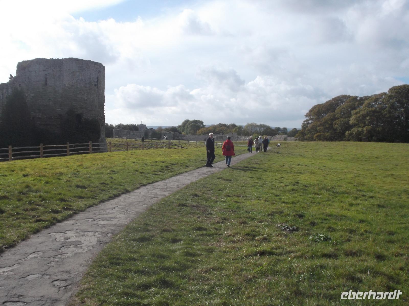 Die Truppen des angelsächsischen Königs Harold II., die vor wenigen Wochen bereits eine Schlacht gegen Harolds Bruder und seinen Verbündeten, den norwegischen König hatten schlagen und gewinnen müssen, stellten sich nun dem in England gelandeten Normannenherzog Wilhelm, der mit seinem Heer seinen Anspruch auf den englischen Thron durchsetzen wollte, entgegen. Wir konnten zusehen, wie mehrere normannische Angriffe vom angelsächsischen Schildwall abgewiesen wurden, selbst einer Attacke der gefürchteten normannischen Reiterei hielten die Verteidiger stand. Dann jedoch ließen sich mehr und mehr der Angelsachsen dazu verleiten, den Schildwall wegen des vermeintlichen Rückzugs der Normannen zu verlassen und durch dessen langsame Auflösung konnte der mit immer neuen Attacken nachsetzende Wilhelm den Sieg erringen. Was am 14 Oktober 1066 zur normannischen Eroberung Englands führte und wesentlich den Lauf europäischer Geschichte beeinflusste, stellte sich uns als gut eingeübtes, buntes Schauspiel dar und begeisterte die heutigen Zuschauer. Und da es erst nach der „Schlacht" zu regnen begann, verbbrachten wir einen sehr angenehmen, unterhaltsamen Nachmittag - gleich zu Anfang war der erste große Höhepunkt und „Aufhänger" der Reise höchst erfolgreich abgelaufen. Zur vereinbarten Zeit trafen wir uns am Bus und fuhren zu unserem Hotel im an der Südküste gelegenen Badeort Eastbourne.