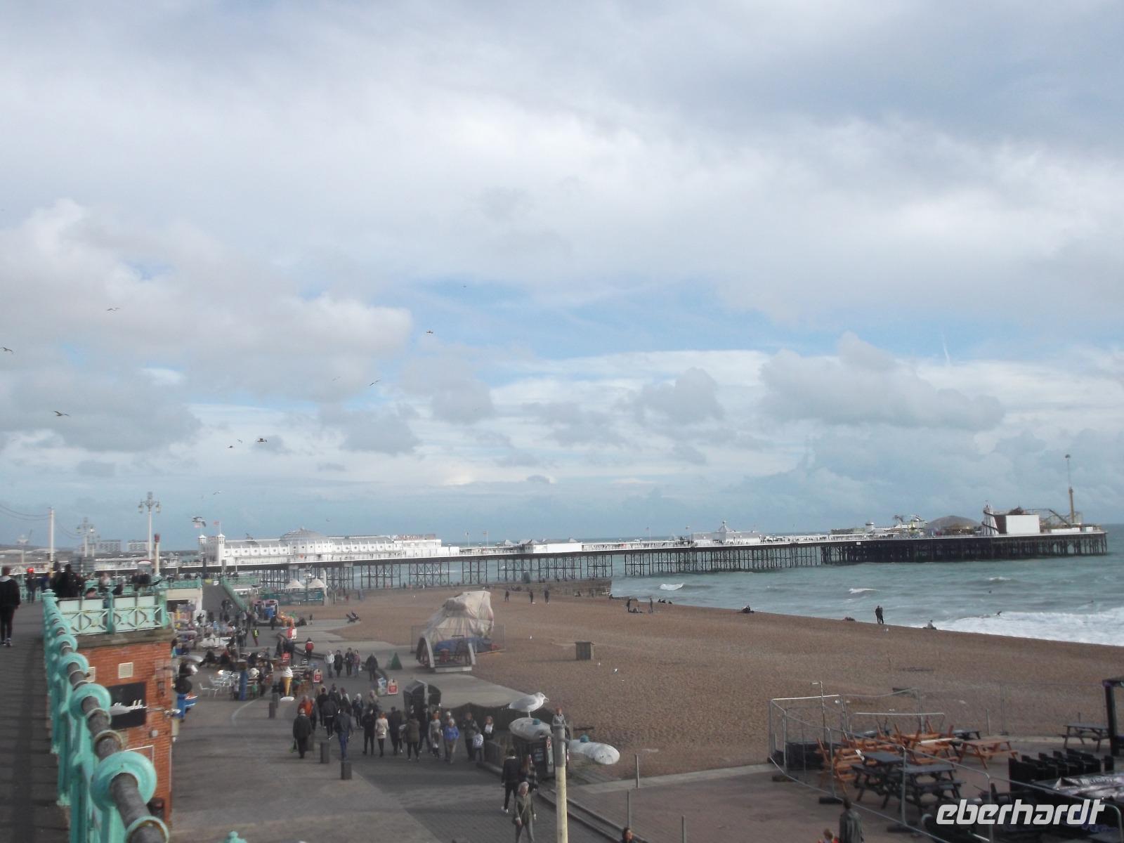 Von Herstmonceux Castle aus fuhren wir ins nahegelegene Städtchen Pevensey, das vor 900 Jahren noch an der Küste lag, an der die Flotte Wilhelm des Eroberers gelandet war. Hier gab es einst ein festes römisches Kastell, auf dessen Resten später die Normannen eine Burg errichteten. Wir hatten hier etwas Zeit, bevor es weiterging in Richtung unseres heutigen Übernachtungsortes Bognor Regis. Unterwegs aber hatten wir noch genug Zeit für einen längeren Stopp im wohl bekanntesten britischen Seebad Brighton. Die Stadt ist bekannt für Parties, Nachtleben und für ihr „Pleasure Pier" - eine Seebrücke mit unzähligen Spielautomaten, Kiosken und Rummel-aktivitäten. Zudem gibt es hier den berühmten „Royal Pavillion", der als das exotischste Schloß Englands gilt. Erbaut vom Architekten John Nash im 19. Jh. für den damaligen Prince of Wales waren seine Vorbilder die Mogulpaläste in Indien.