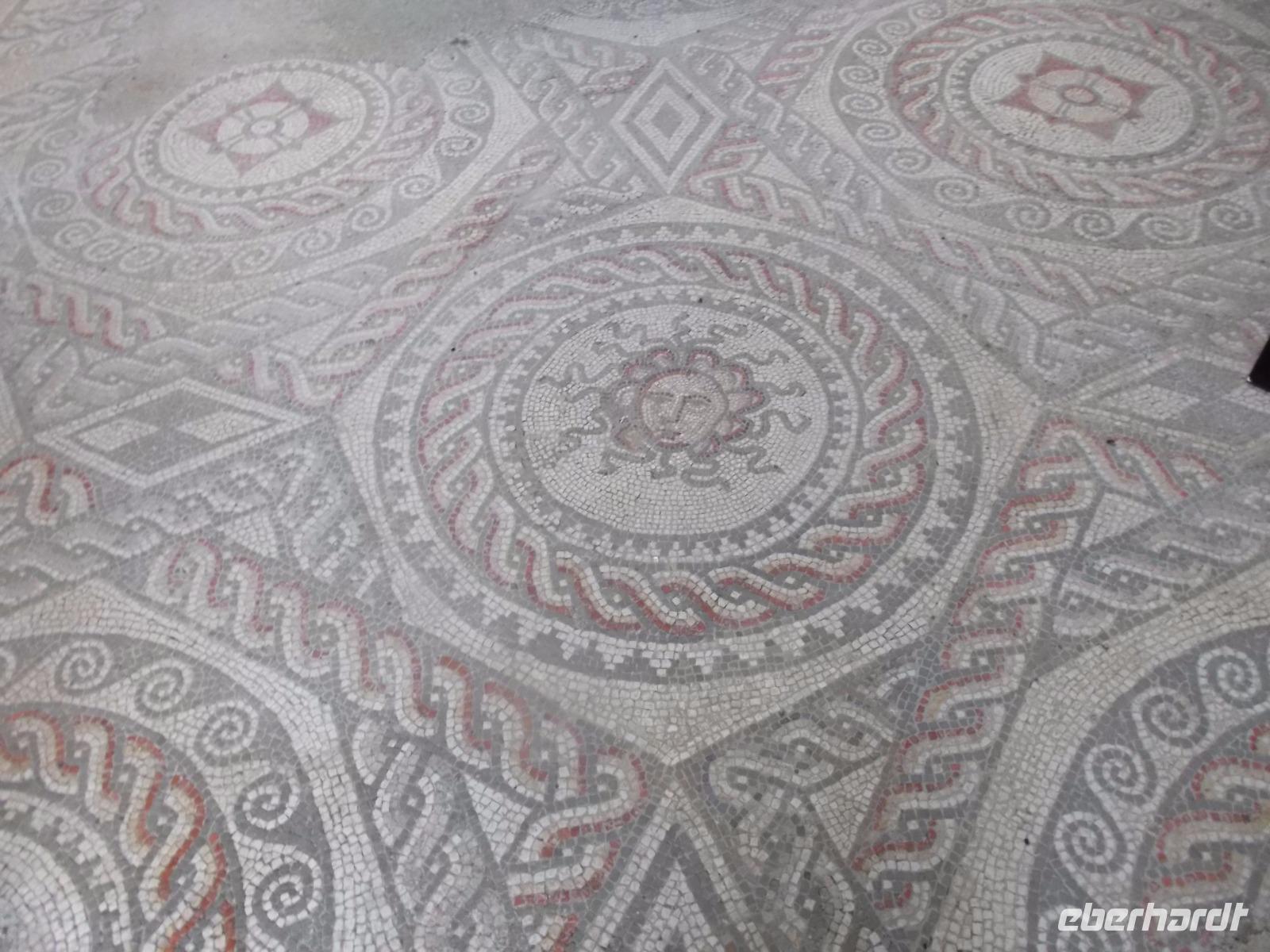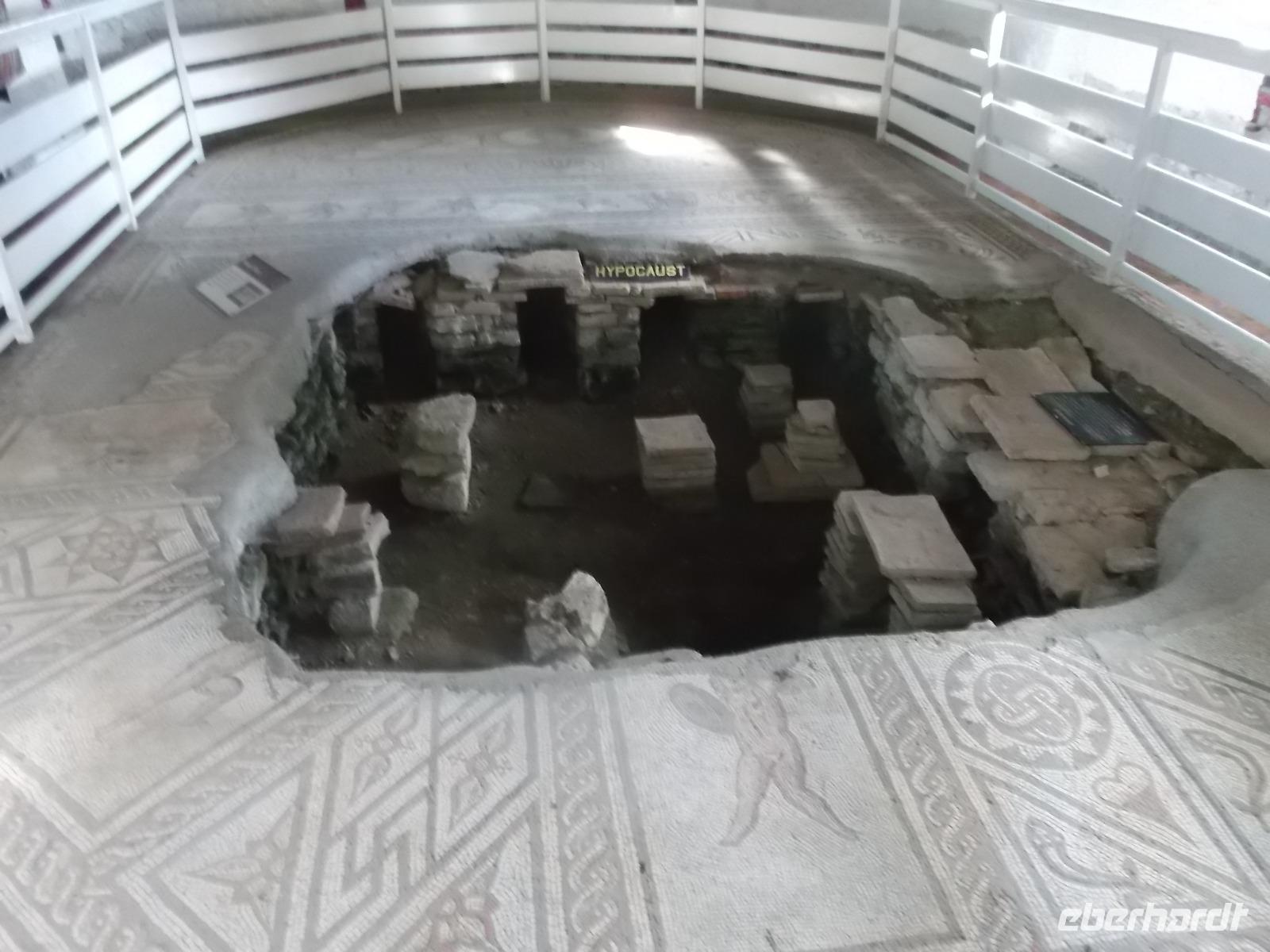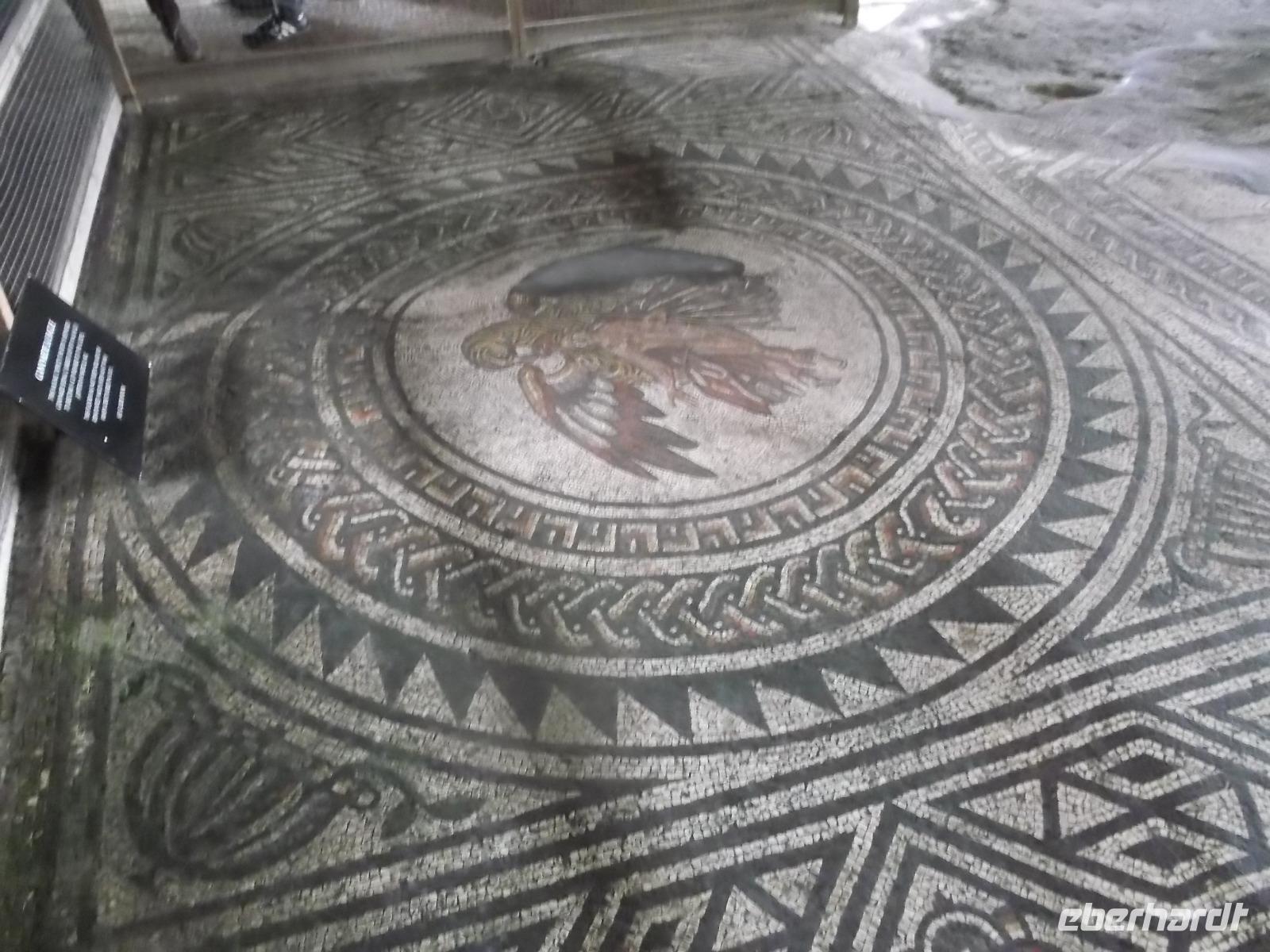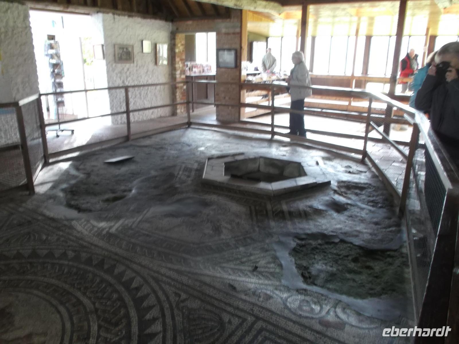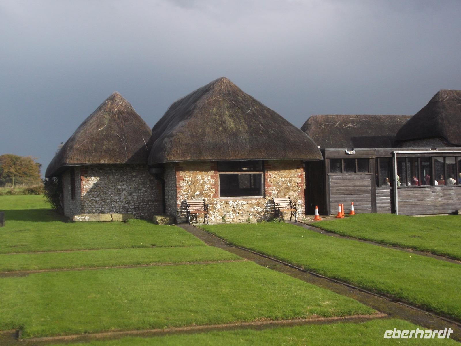 Heute früh begaben wir uns, vorbei an der Stadt Arundel mit dem Arundel Castle, das zu den besterhaltenen Schlössern des Mittelalters in England zählt, zu einer weniger bekanntwen Sehenswürdigkeit aus der Römerzeit. In der Nähe des winzigen Ortes Bignor wurden bei Ausgrabungen die Reste einer der größten Villen der römischen Provinz Britannia entdeckt. Besonders bekannt wurde die Römervilla durch ihre bemerkenswerten und recht gut erhaltenen Mosaikfußböden. Fast einzigartig in Großbritannien sind diese Mosaike - vor allem wegen Motivwahl, Anzahl und Qualität. Der Kopf der Medusa ist hier zu sehen, Ganymed und Zeus und eine Darstellung von Gladiatoren, sowie eine Venusdarstellung - alle ausgeführt von den besten Künstlern ihrer Zeit. Der Besuch hier zeigt wirklich ein Kleinod, das nicht jeder zu sehen bekommt.