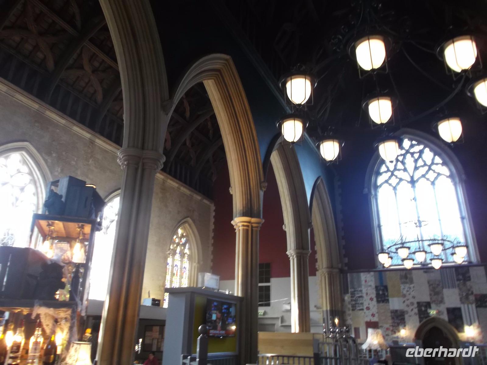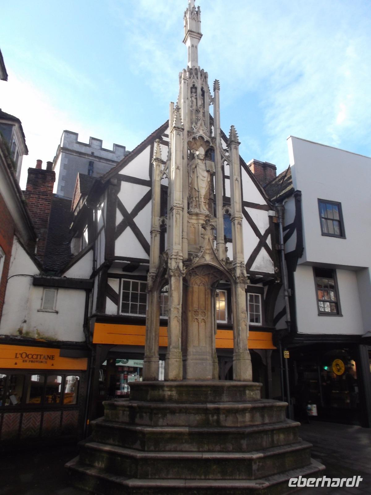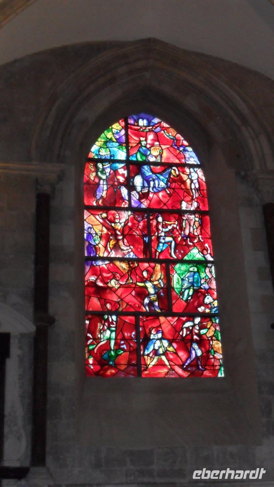 Von der Römervilla aus fuhren wir in die Kathedralen-Stadt Chichester. Noch vor dem kleinen Rundgang gingen wir zu einem kurzen Besuch in einen der originellsten Pubs - der typischen britischen Kneipen - von ganz Südengland, der in einer ehemaligen Kirche untergebracht ist. In ungewöhnlicher Atmosphäre nahmen wir gemeinsam einen Drink, bevor wir aufbrachen zum keinen Rundgang. Mitten in der Stadt steht das historische Marktkreuz, im 15. Jh. errichtet. Leider war das Chichester Cross, das als eines der schönsten seiner Art in ganz England gilt, wegen Bauarbeiten stark eingerüstet. Immer noch steht es am Kreuzungspunkt der Hauptstraßen der Stadt. Nicht weit war es zur Kathedrale von Chichester, die schon seit dem 11.Jahrhundert Bischofssitz war. Errichtet auf den Fundamenten einer römischen Basilika wirkt die Kathedrale mit ihrem gewaltigen Vierungsturm sehr wuchtig. Zudem hat sie einen für Großbritannien ungewöhnlichen einzelstehenden Glockenturm. Der Schutzpatron der Kathedrale und der Stadt ist einer ihrer Bischöfe, Richard von Chichester, der schon im 13. Jh. von der katholischen Kirche Heilig gesprochen wurde. Sein Standbild steht vor der Kirche steht und sein Grab in der Kathedrale war bis zu seiner Zerstörung in der Reformation ein Wallfahrtsort. In der Kathedrale finden sich mehrere moderne Kunstwerke, deren bekanntestes das in der nördlichen Chorapsis gelegene „Lobet den Herrn"-Fenster von Marc Chagall von 1976 mit überwiegenden Rottönen ist.