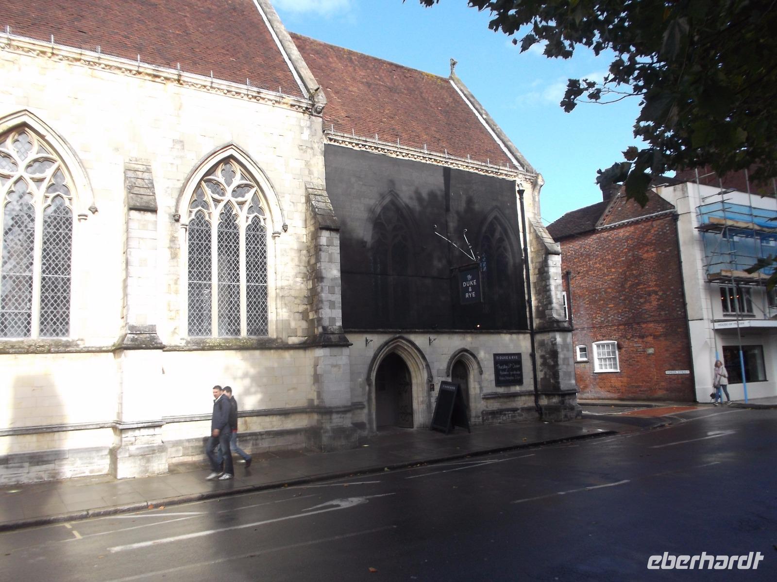 Einen ersten Stopp legten wir im Hafenort Rye ein. Allerdings war nicht viel Zeit - heute Nachmittag sollte ja die Schlachtnachstellung sein - aber ein wenig konnten wir uns doch an dem Ort umsehen, der an vielen Stellen mittelalterlichen Charakter bewahrt hat. Einst gehörte er zum in Südengland mächtigen Städtebund der „Cinque Ports (französisch = Fünf Häfen), der heute vorwiegend der wirtschaftlichen Zusammenarbeit der Hafenstädte an der Kanalküste Südostenglands dient.