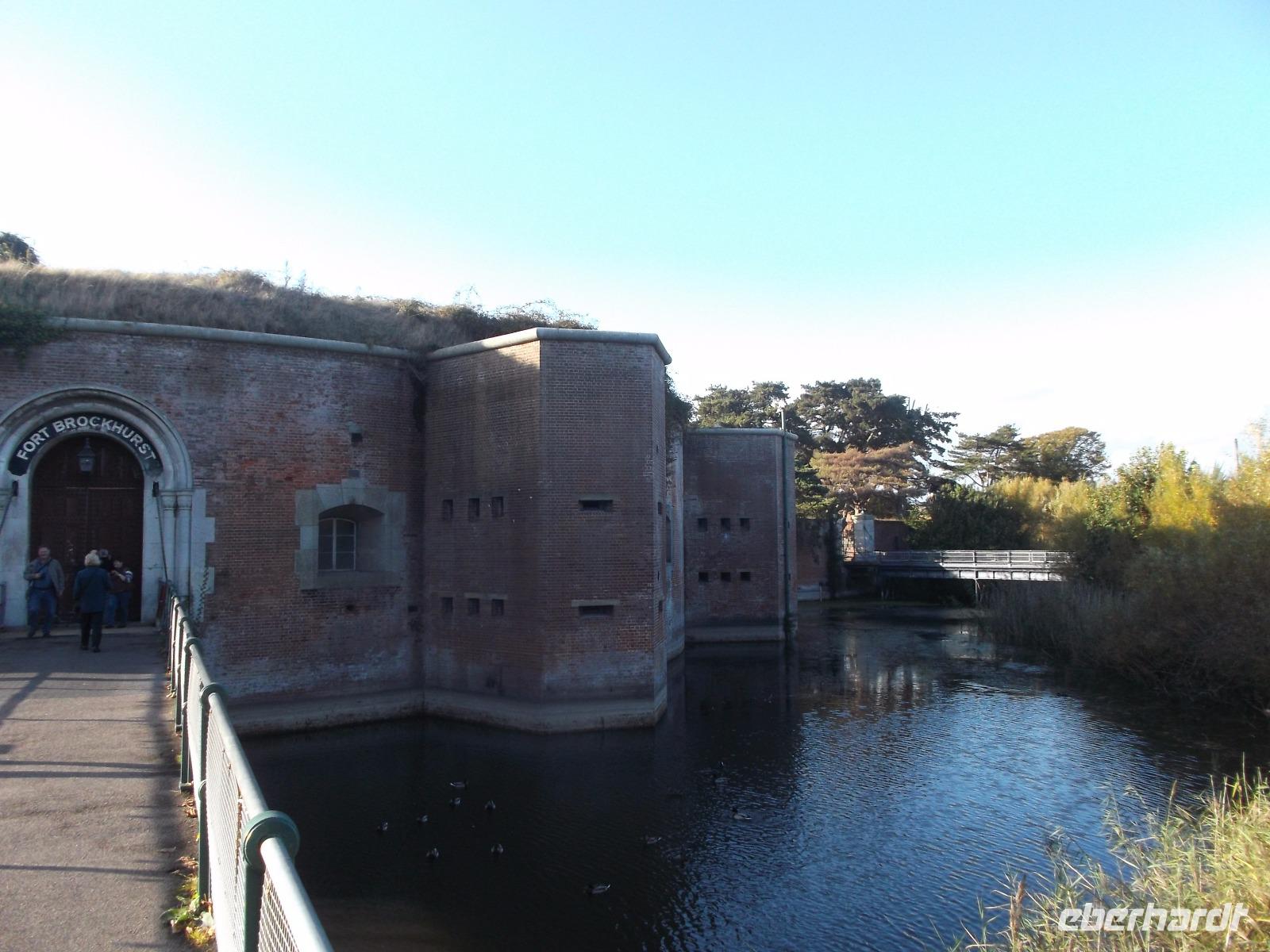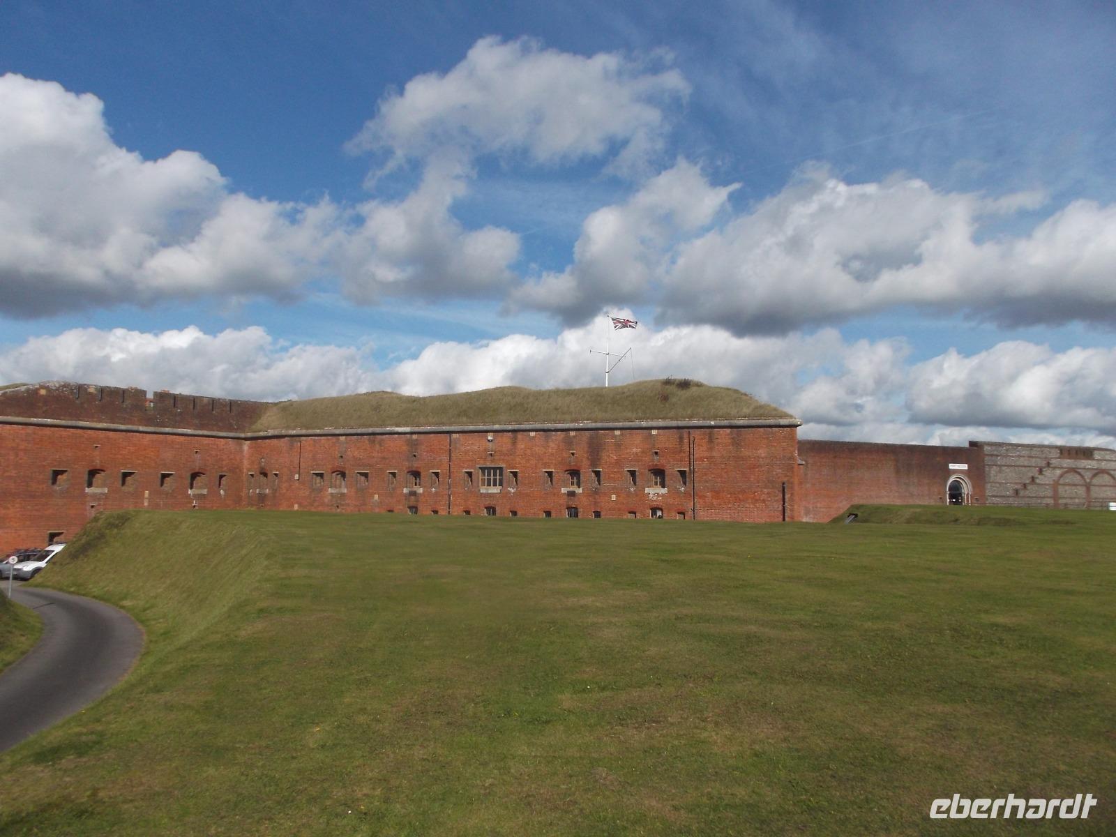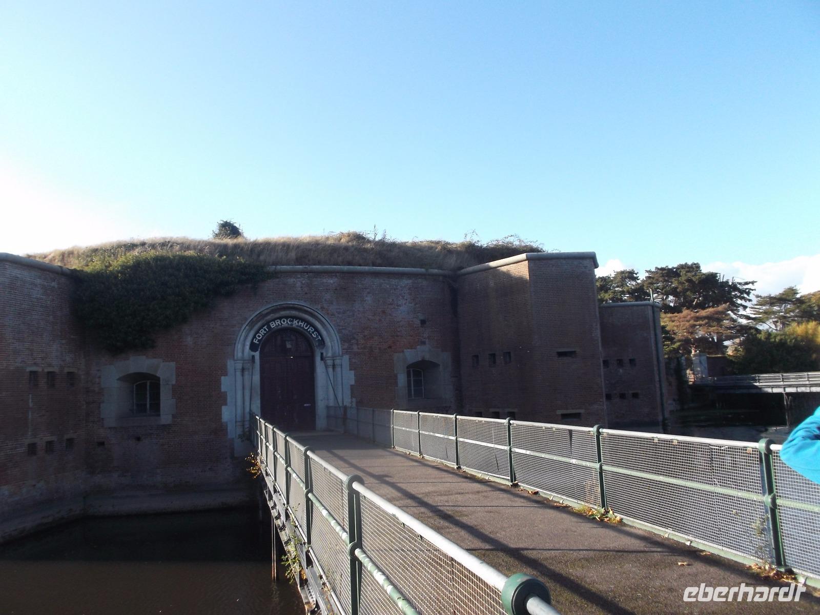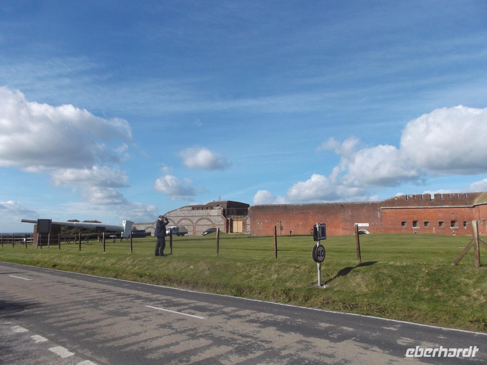 Nicht allzulange währte unser Besuch hier, dann waren wir auf dem Weg zurück nach Bognor Regis, allerdings nicht ohne noch einmal vom Wege abzuweichen, um einen Fotostopp am Fort Brockhurst einzulegen. Zusammen mit anderen sogenannten „Palmerston Forts" gehörte der wehrhafte Rundbau zum vorgelagerten Außen-Verteidigungsring der Bucht am Kriegshafen Portsmouth, den wir uns morgen ansehen würden.
