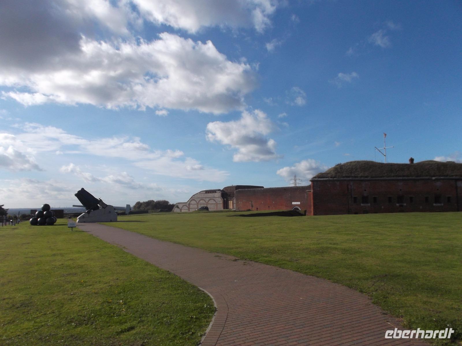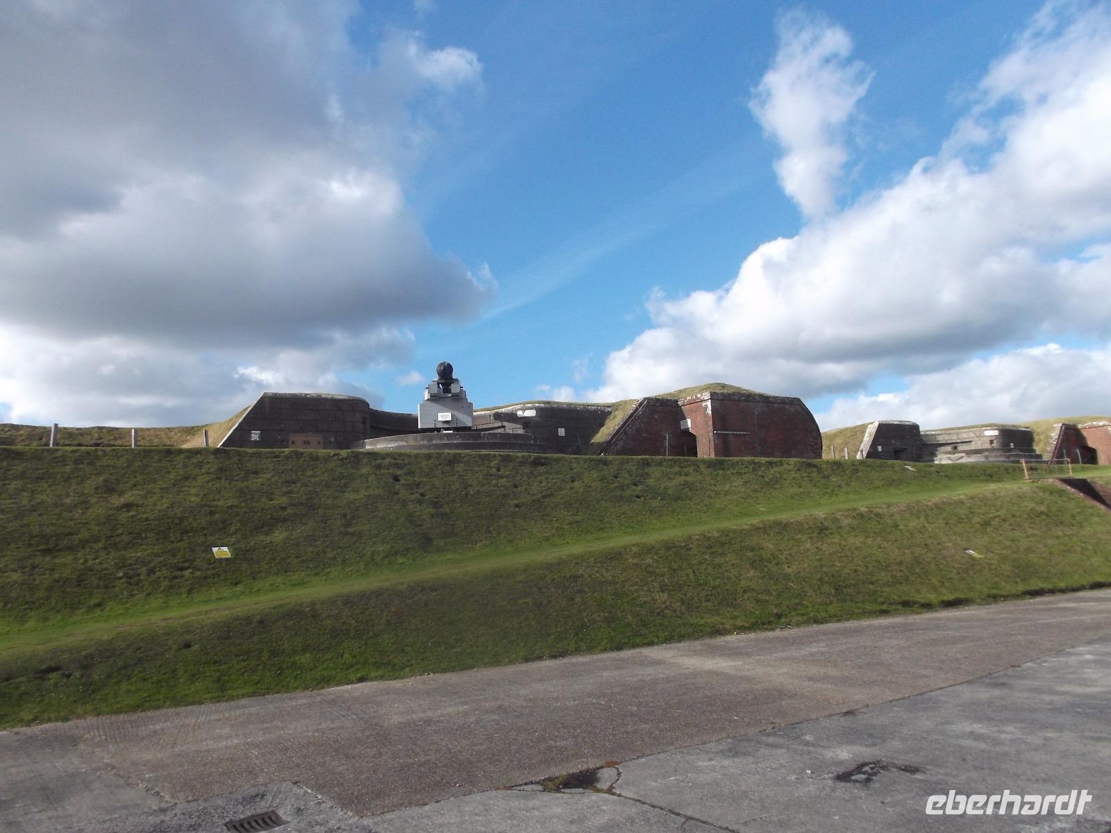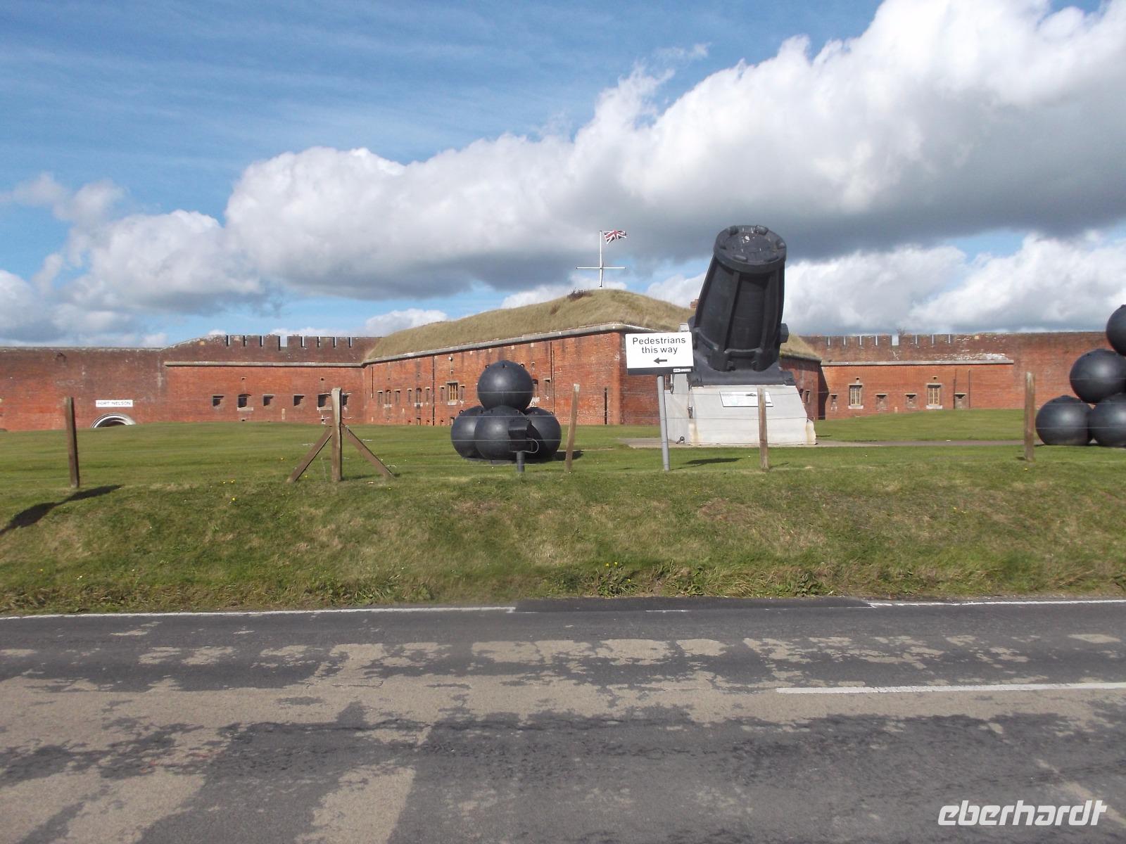 Nicht allzulange währte unser Besuch hier, dann waren wir auf dem Weg zurück nach Bognor Regis, allerdings nicht ohne noch einmal vom Wege abzuweichen, um einen Fotostopp am Fort Brockhurst einzulegen. Zusammen mit anderen sogenannten „Palmerston Forts" gehörte der wehrhafte Rundbau zum vorgelagerten Außen-Verteidigungsring der Bucht am Kriegshafen Portsmouth, den wir uns morgen ansehen würden.