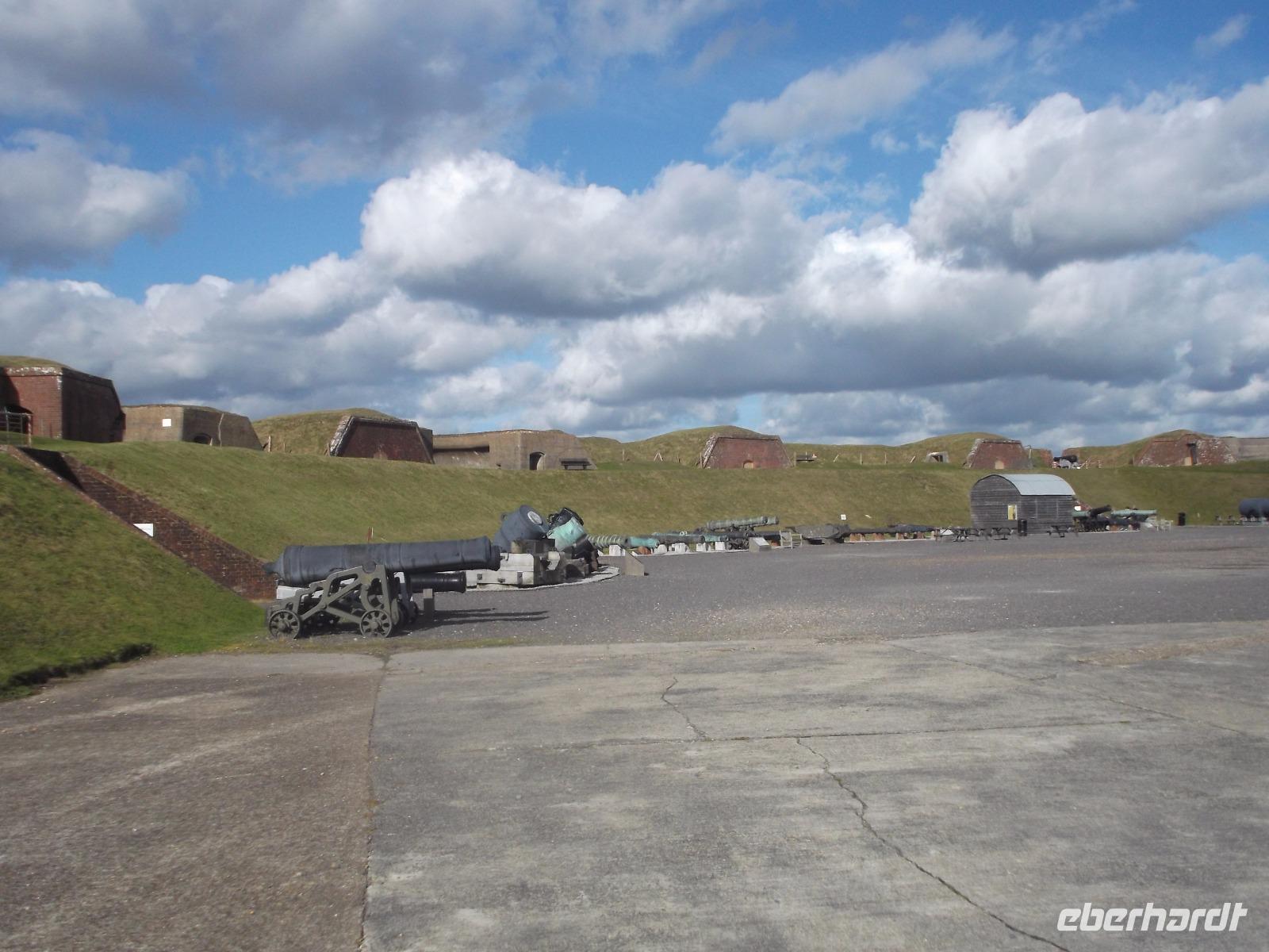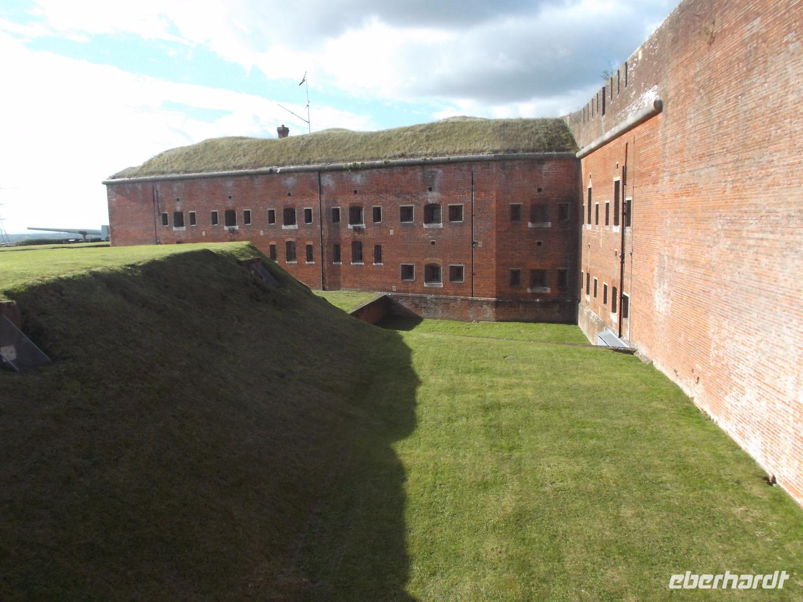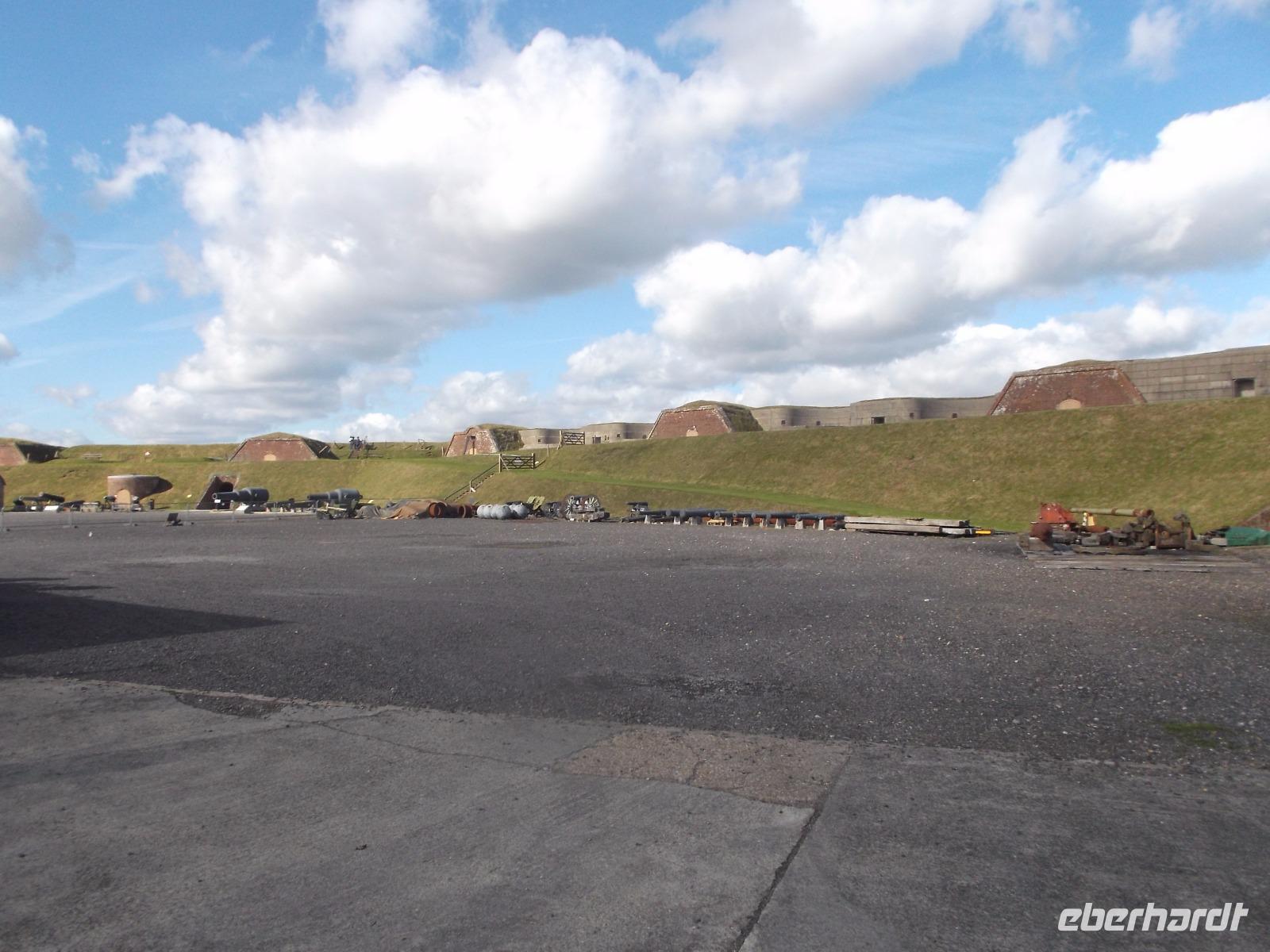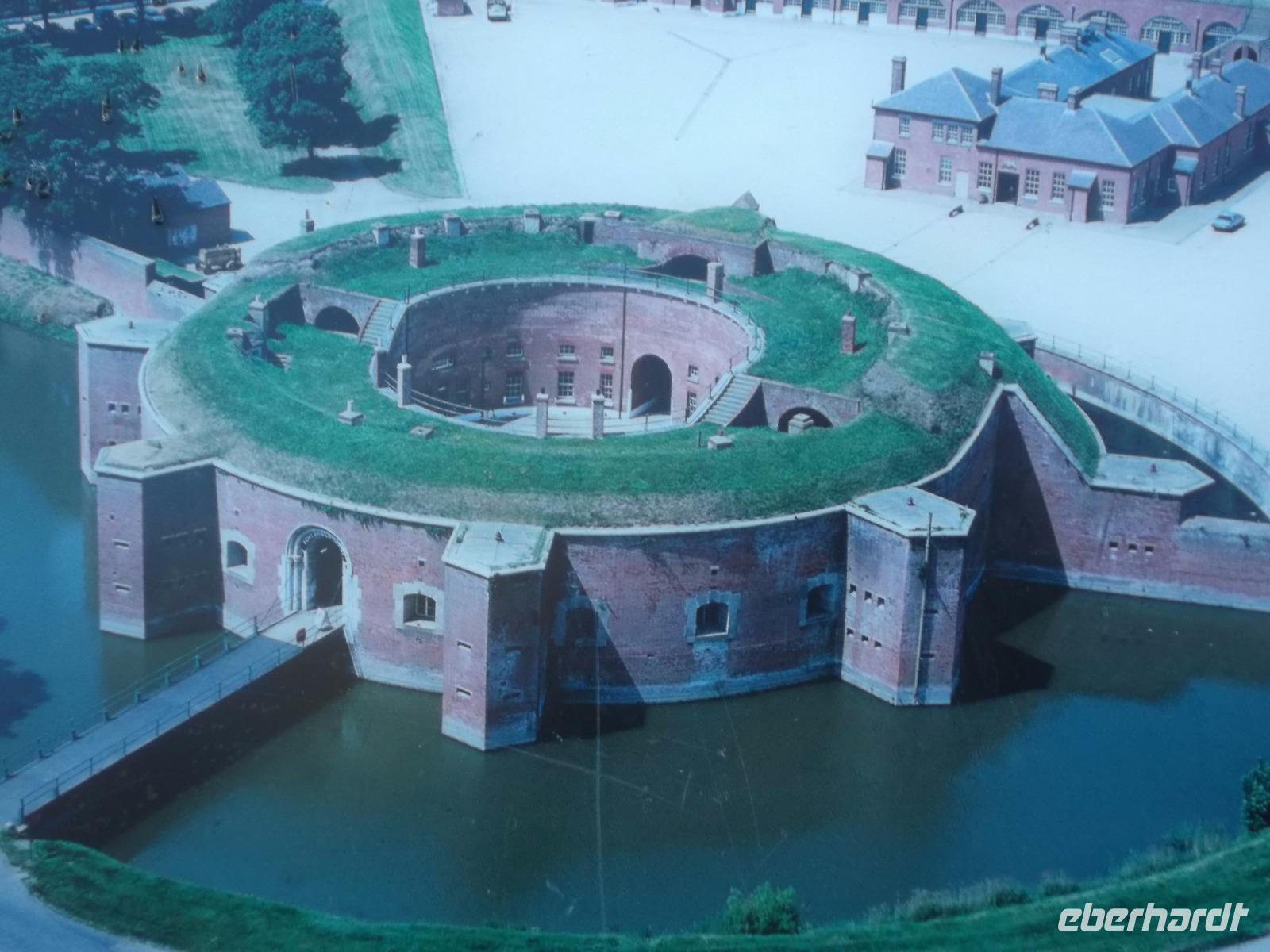 Nicht allzulange währte unser Besuch hier, dann waren wir auf dem Weg zurück nach Bognor Regis, allerdings nicht ohne noch einmal vom Wege abzuweichen, um einen Fotostopp am Fort Brockhurst einzulegen. Zusammen mit anderen sogenannten „Palmerston Forts" gehörte der wehrhafte Rundbau zum vorgelagerten Außen-Verteidigungsring der Bucht am Kriegshafen Portsmouth, den wir uns morgen ansehen würden.