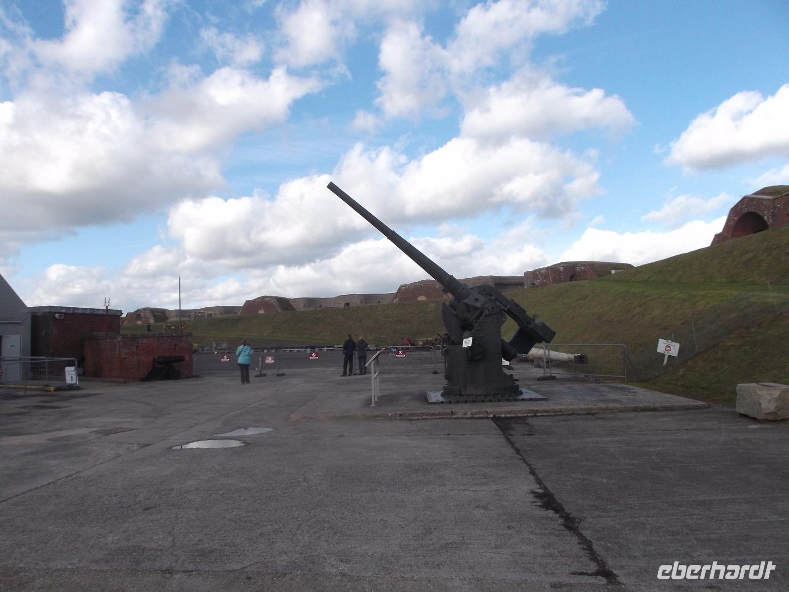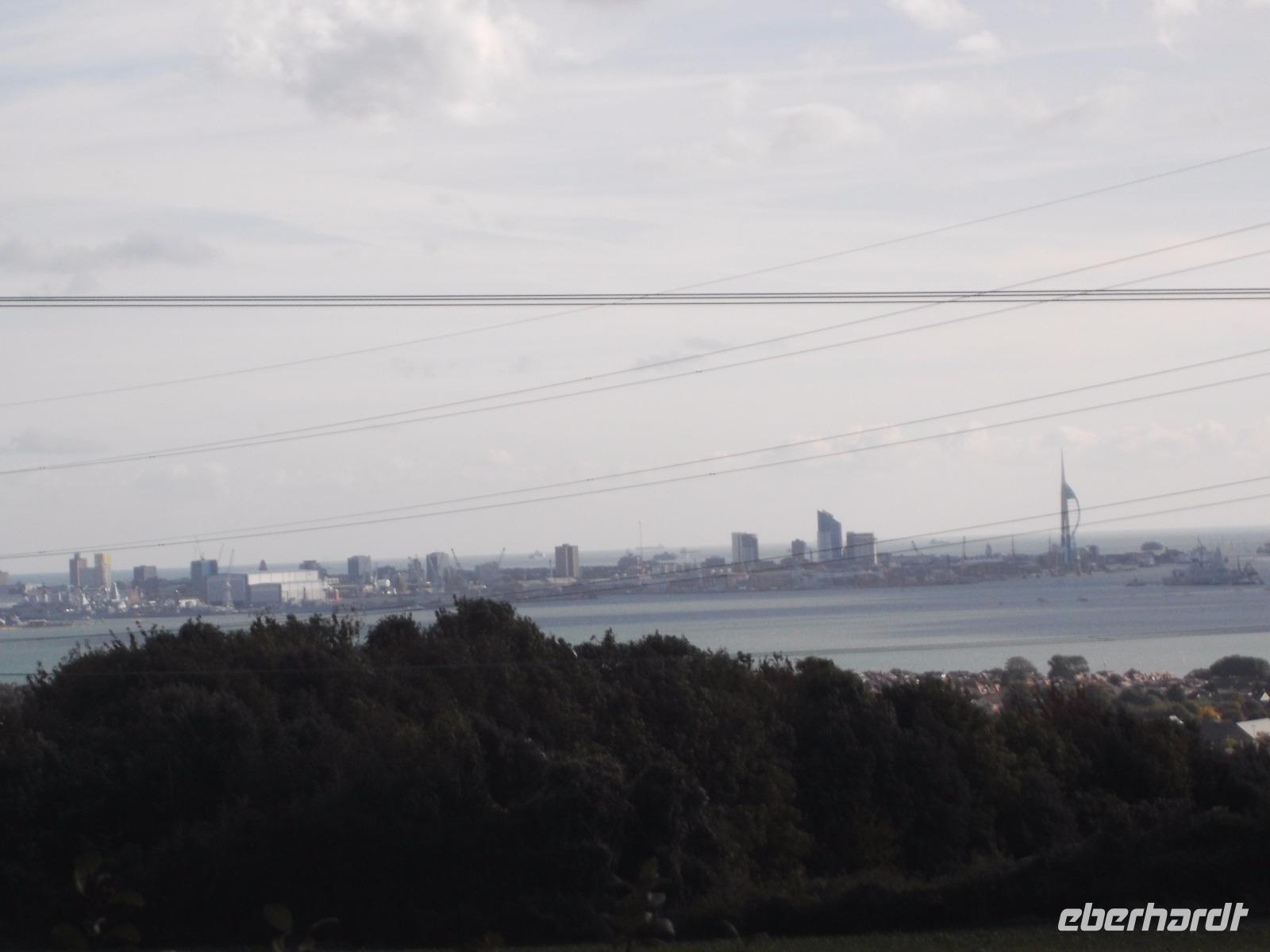 Nachdem wir Winchester verlassen hatten, konnten wir uns - noch bevor wir zum Tagesabschluss Portsmouth erreichen wollten - einem besonderen Kleinod widmen: ein Abstecher zeigte uns das gewaltige Fort Nelson, in dem sich heute Großbritanniens größte Artillerie-Sammlung befindet. Das riesige sternförmige Fort mit Außenmauern aus Backstein und grasbewachsenen Erdwällen wurde um 1860 erbaut und gehört zum gewaltigen Verteidigungsring des Kriegshafens Portsmouth. Nicht nur die hierher gehörende Festungsartillerie gibt es hier zu bestaunen, sondern eine großartige Sammlung der verschiedensten Geschütze seit der großen Zeit der Feldschlangen im 15. und 16. Jh. wurde hier zusammengetragen, wird hier teilweise restauriert und aufbereitet ausgestellt. Man kann historische Feldgeschütze, Kanonen und Haubitzen aus beiden Weltkriegen bis hin zu Waffen aus dem ersten Irak-Krieg ansehen. Prunkstücke der Sammlung sind sicherlich eine gewaltige Eisenbahnkanone sowie der größte Mörser, der je gebaut wurde. Nach ausführlichem Besuch dieses Museums - der „Royal Armoury" - ging es zu einer der bedeutendsten britischen Hafenstädte, nach Portsmouth. Hier spielt das Militär traditionell eine große Rolle, denn bis heute ist dieser Marinestützpunkt der wichtigste militärische Hafen Europas. Fast die Hälfte der Royal Navy, der Königlichen Marine, ist hier stationiert, darunter alle Flugzeugträger, die Großbritannien besitzt und das U-Boot Zentrum Gosport. Da sich auch das Hauptquartier der Royal Navy hier befindet, ist die Marine der größte Arbeitgeber der Stadt.