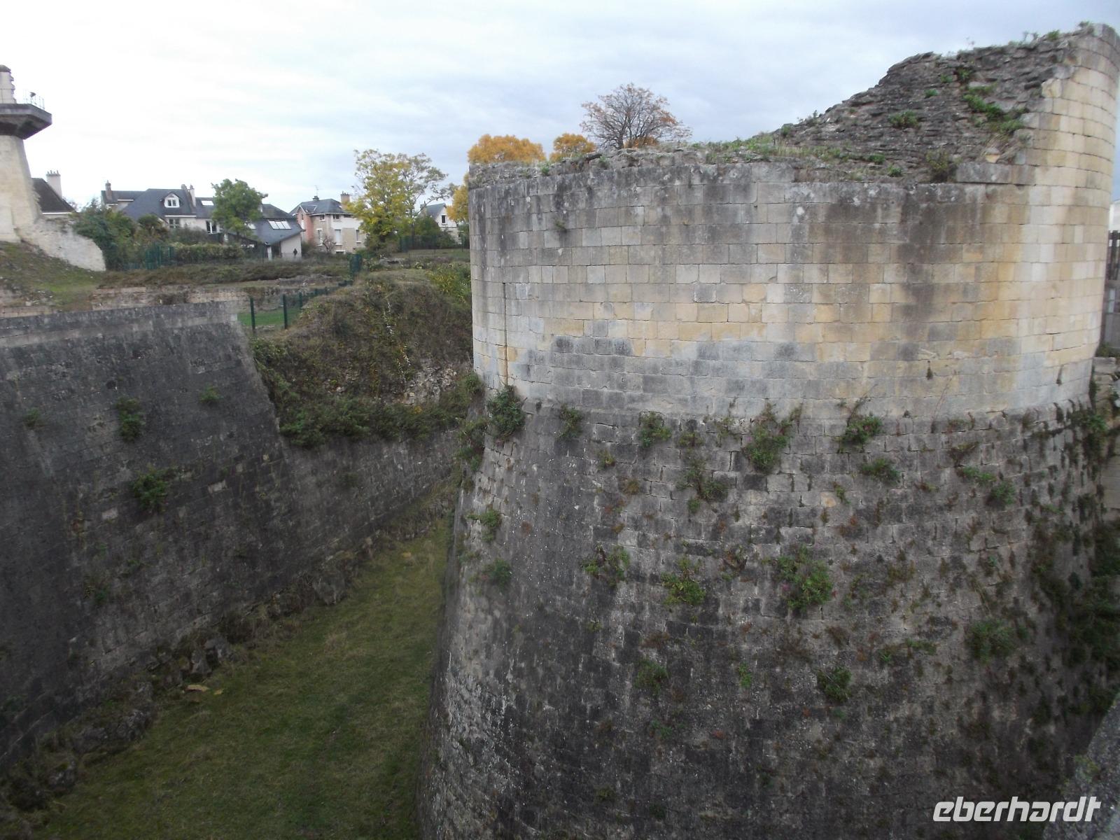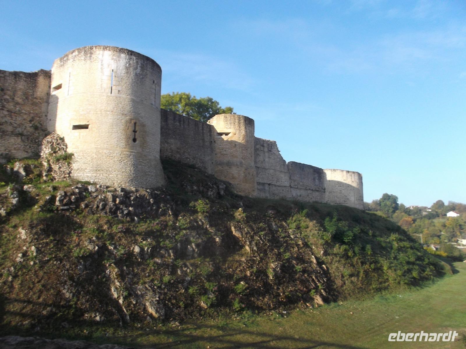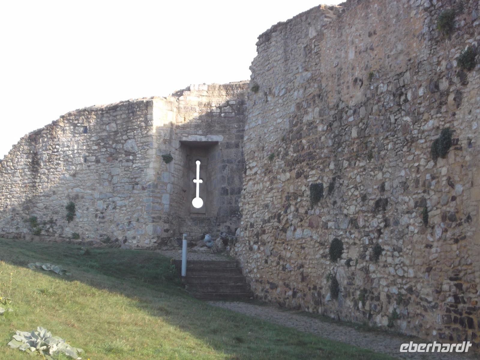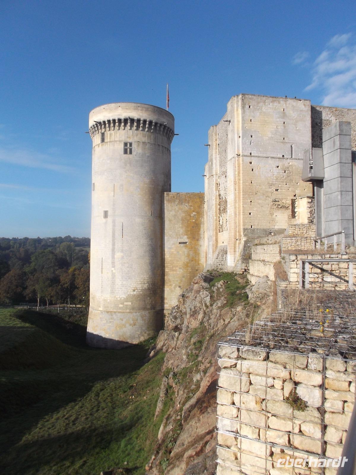 Unser erstes Ziel für heute war die Kleinstadt Falaise. Ihre Burg, die imposant das Städtchen überragt, war bis 1066 Sitz der Herzöge der Normandie und auch der Geburtsort Wilhelm des Eroberers. Von hier aus regierte er die Normandie und fasste wohl auch den Plan, sich seinen Thronanspruch auf England zu sichern. Die Burg Falaise, die wir am Vormittag erreichten und besichtigten, wurde schon im 10. Jh. als Höhenburg errichtet und in drei Phasen ausgebaut. So entstanden ein großer und später ein kleiner viereckiger Bergfried und in einer späteren Phase noch ein runder. Das moderne, in der mit vielen Verteidigungsanlagen und seinen drei Bergfrieden interessant restaurierten Burg eingerichtete Museum, zeigt eindrucksvoll die Residenz der Normannenherzöge und gibt Aufschluss über die Zeit und die Lebensweise jener Phase des Mittelalters in Nordfrankreich.