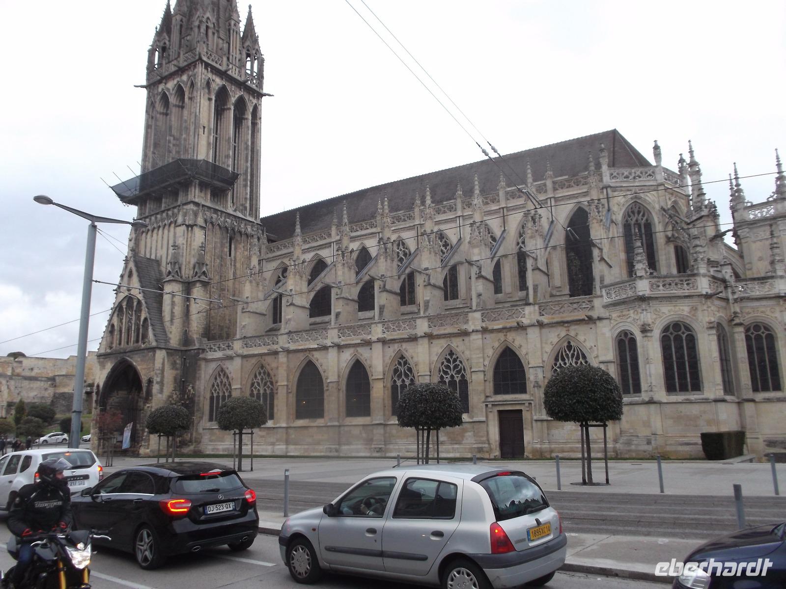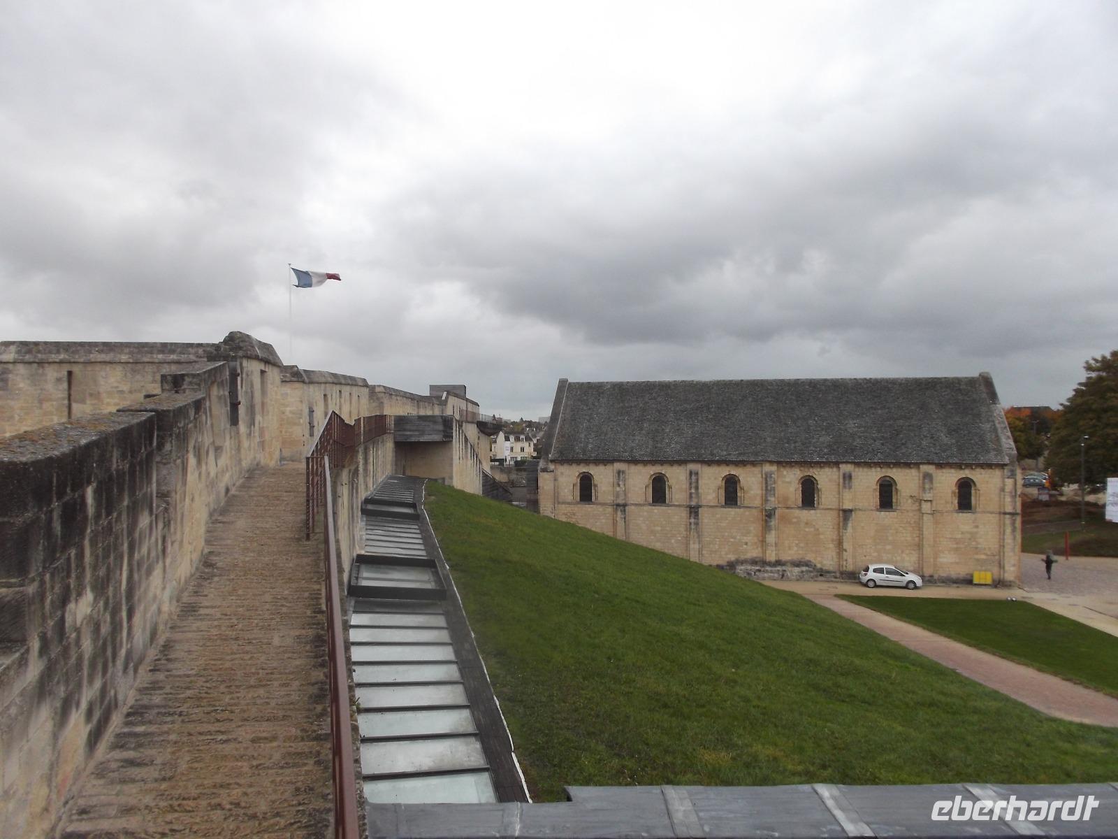 Früh am Morgen erreichte unser Fährschiff von Brittany Ferries den französischen Hafen Ouistreham an der Flussmündung der Orne, etwa 15 km nördlich der Departementshauptstadt Caen. Hier, in der zweitgrößten Stadt der Normandie, fuhren wir zunächst zum Schlosshügel, um in einem Café unser Frühstück einzunehmen. Stadtführerin Patricia holte uns ab und führte uns zunächst über den Schlosshügel mit seinen Bauwerken, die teilweise schon zu Zeiten Wilhelm des Eroberers angelegt worden waren. Von vielen Punkten hatte und hat man einen guten Überblick über die Stadt, die im 11. Jh. große strategische Bedeutung aufwies und oft Ziel und Schauplatz kriegerischer Auseinandersetzungen war. Von der Burg von Caen ab starteten wir zu einer kleinen Stadtrundfahrt in unserem Bus, die uns weitere sehenswerte Orte in der Stadt zeigte - beispielsweise die Kirchen Saint-Pierre und Saint-Jean und die Abteien die zu den bedeutendsten Sakralbauten in der Normandie gehören.